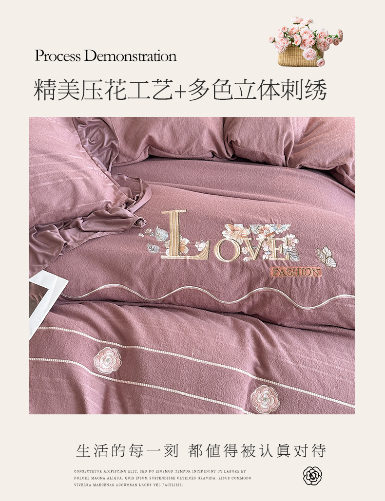(总)宜凡家纺 2025新款兔绒提花牛奶绒夹棉床盖四件套,爱心 粉紫,爱心 少女粉,爱心 驼色,蝶舞 大红,蝶舞 米色,蝶舞 浅紫,蝶舞 玉色,简爱 苍青,简爱 豆沙紫,简爱 玉色,樱桃 苍青,樱桃 豆沙紫,樱桃 奶油白