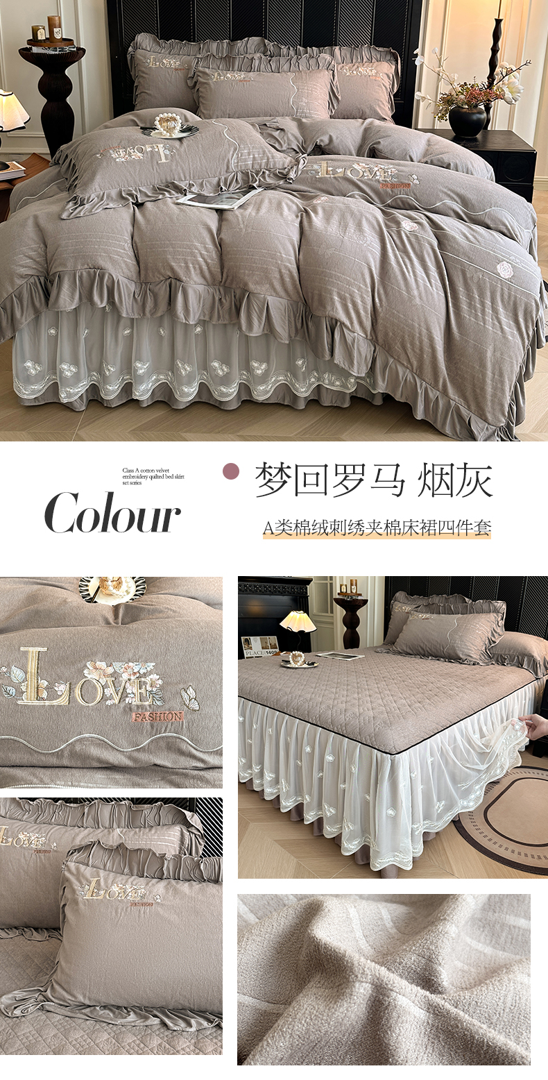 商品名称:(总)宜凡家纺 2025新款A类棉绒刺绣花夹棉床裙四件套--梦回罗马系列