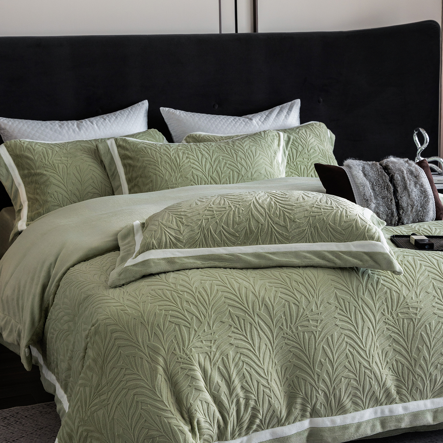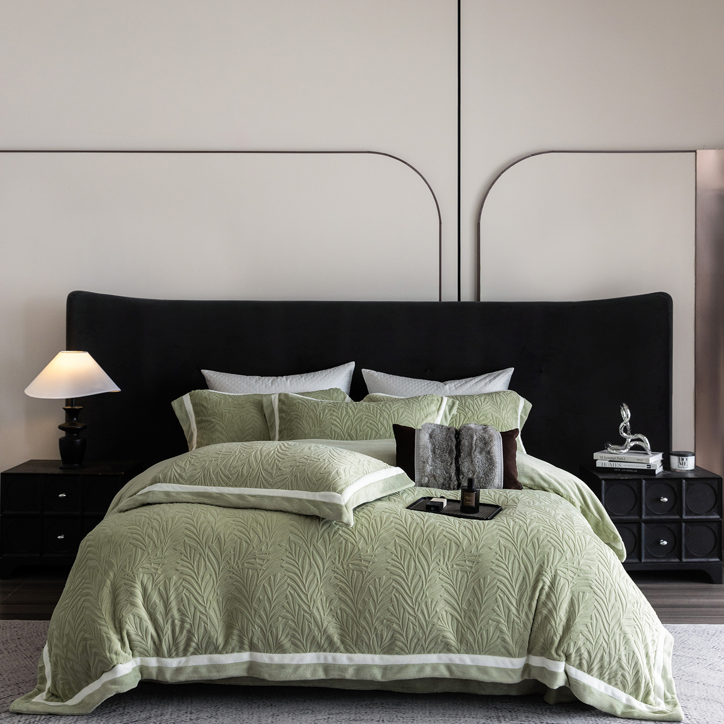 商品名称:瑞雪家居 2025新款亲肤舒适牛奶绒四件套-榈叶系列 榈叶-米月白
