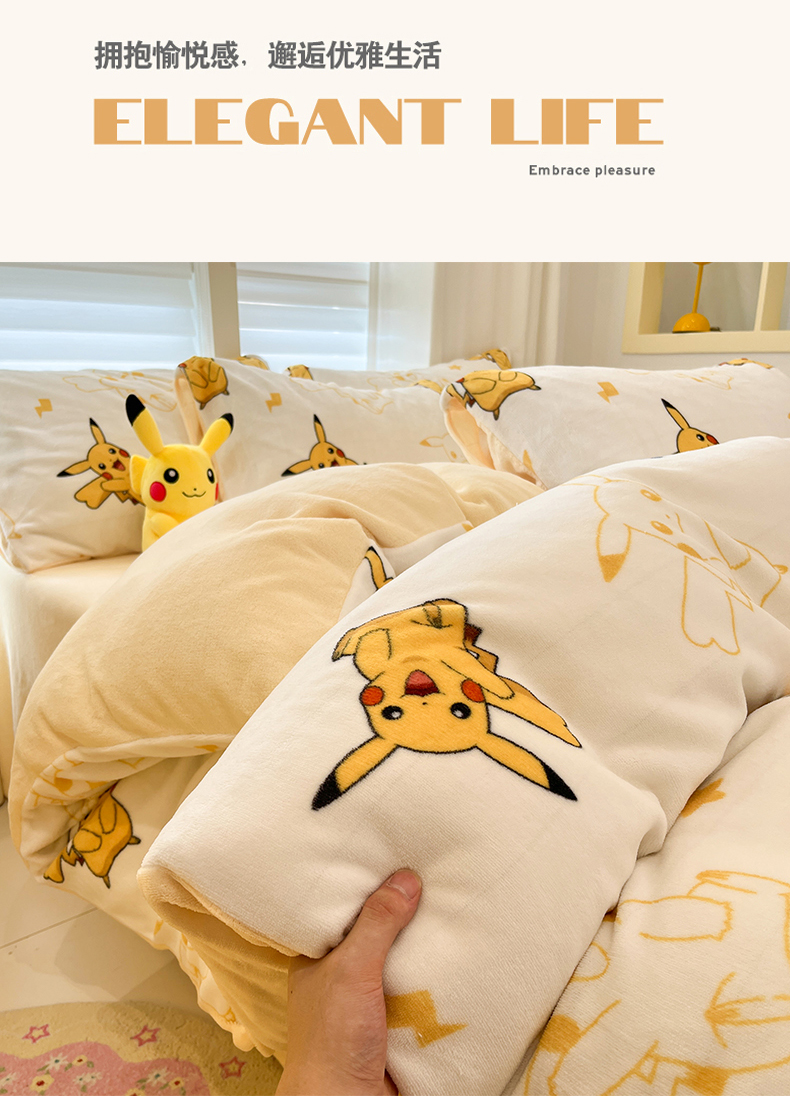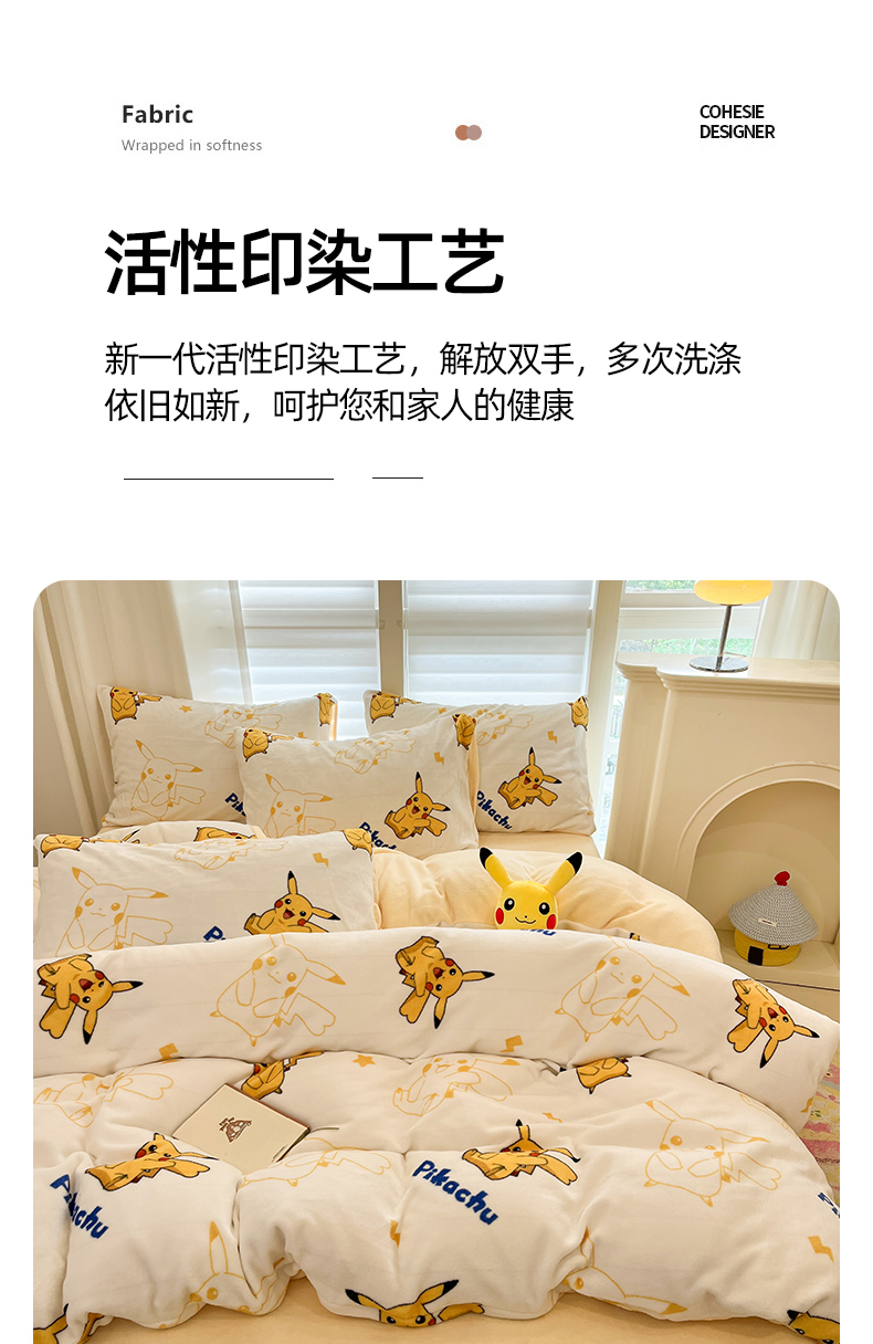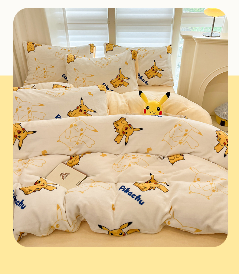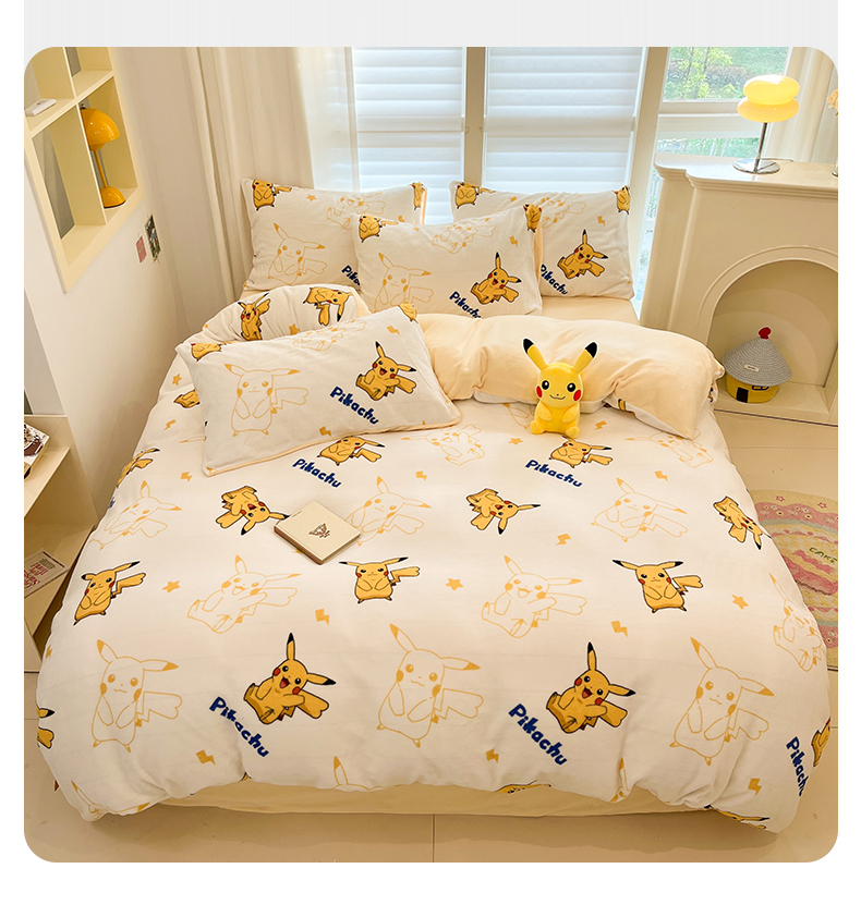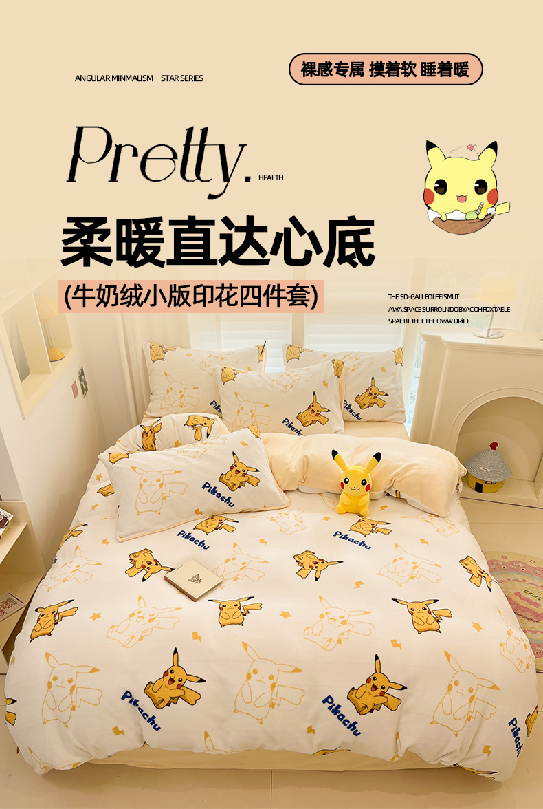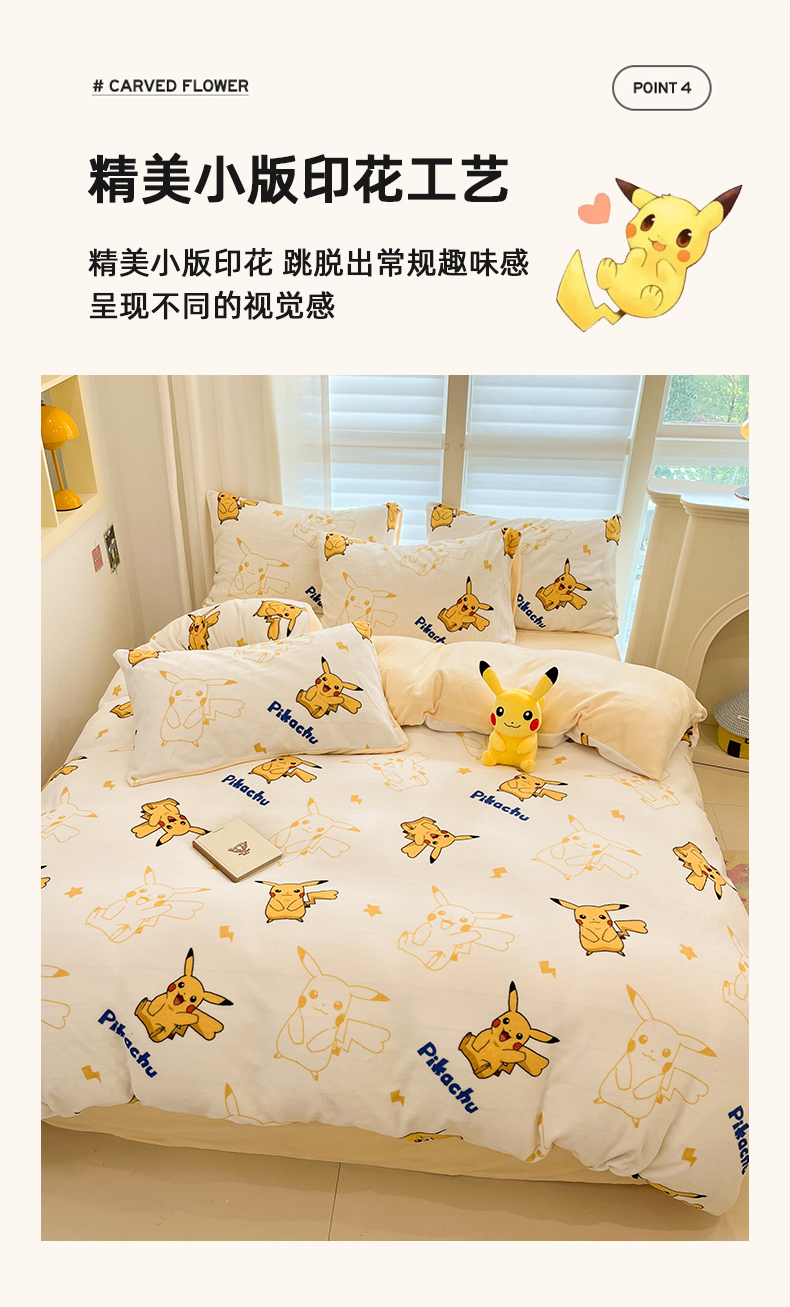 当前位置: 91家纺网 > 商品网购 > 床品套件 > 四件套 > 牛奶绒四件套 > 桃子家居 2025新款A类正版宝可梦授权皮卡丘大版卡通平网数码印花加厚高克重牛奶绒四件套 绒小版-多彩皮卡丘