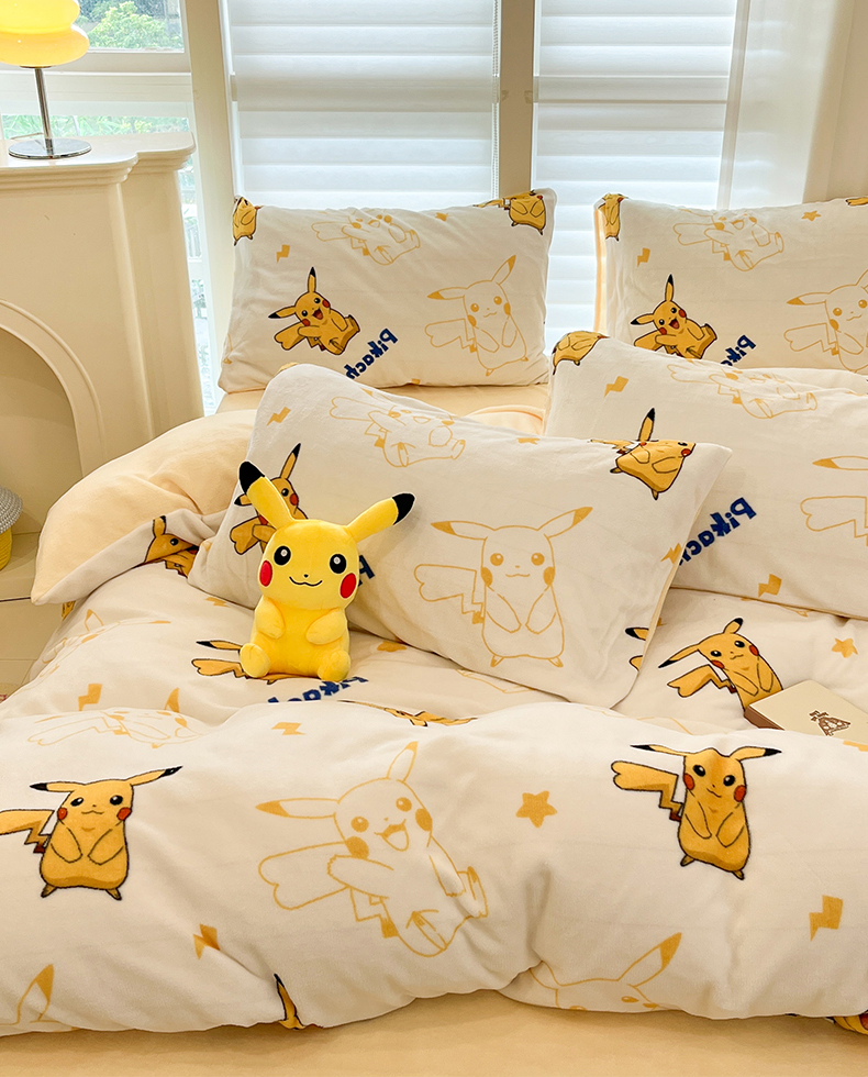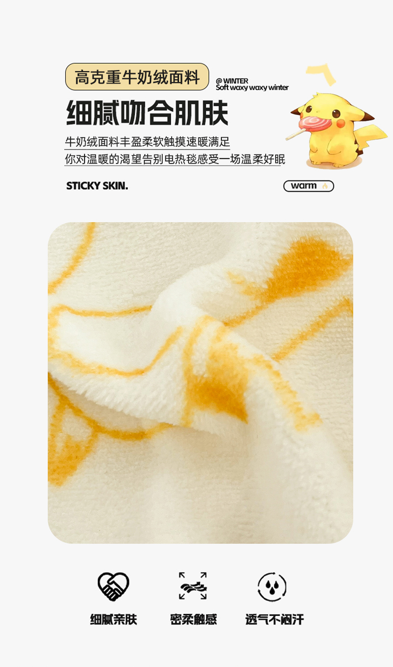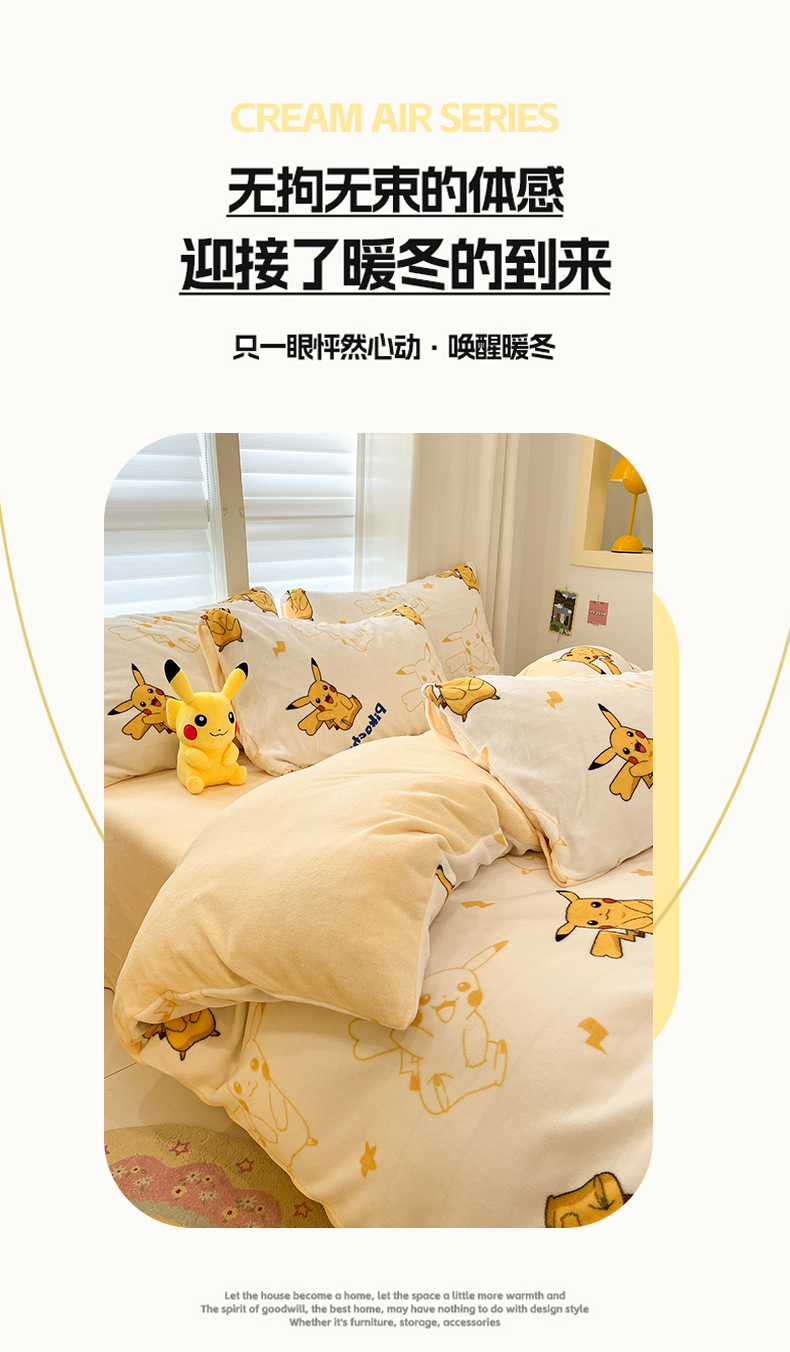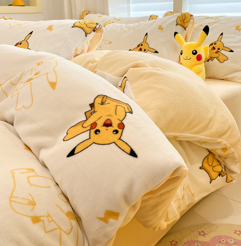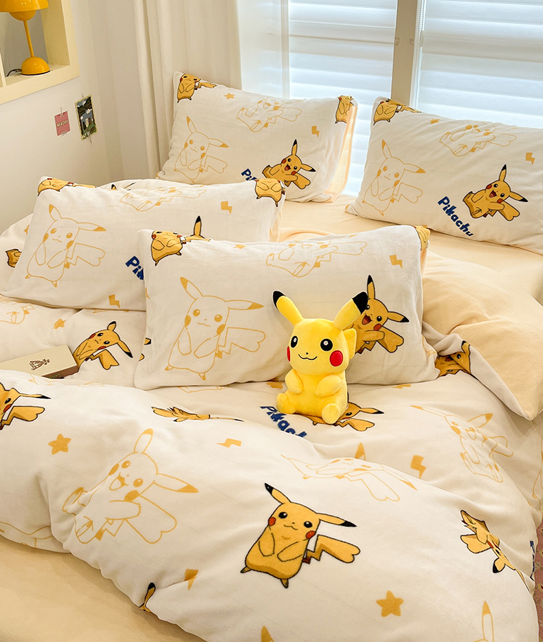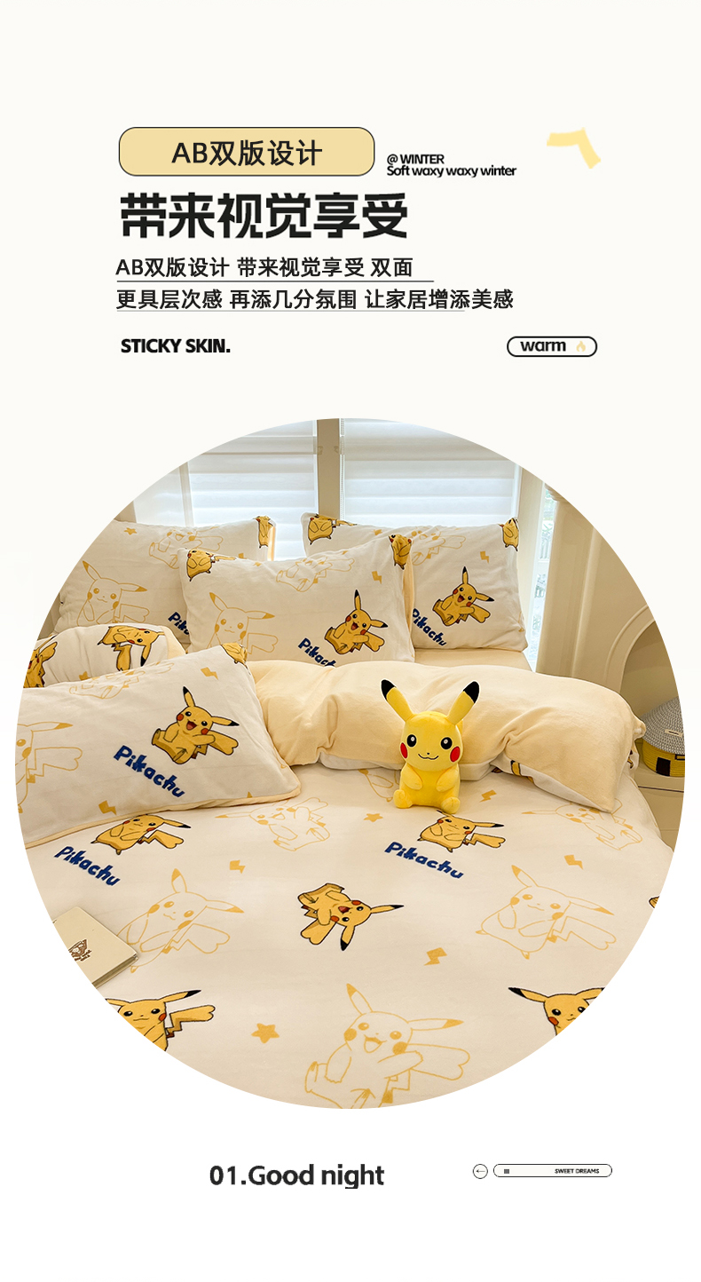 当前位置: 91家纺网 > 商品网购 > 床品套件 > 四件套 > 牛奶绒四件套 > 桃子家居 2025新款A类正版宝可梦授权皮卡丘大版卡通平网数码印花加厚高克重牛奶绒四件套 绒小版-多彩皮卡丘