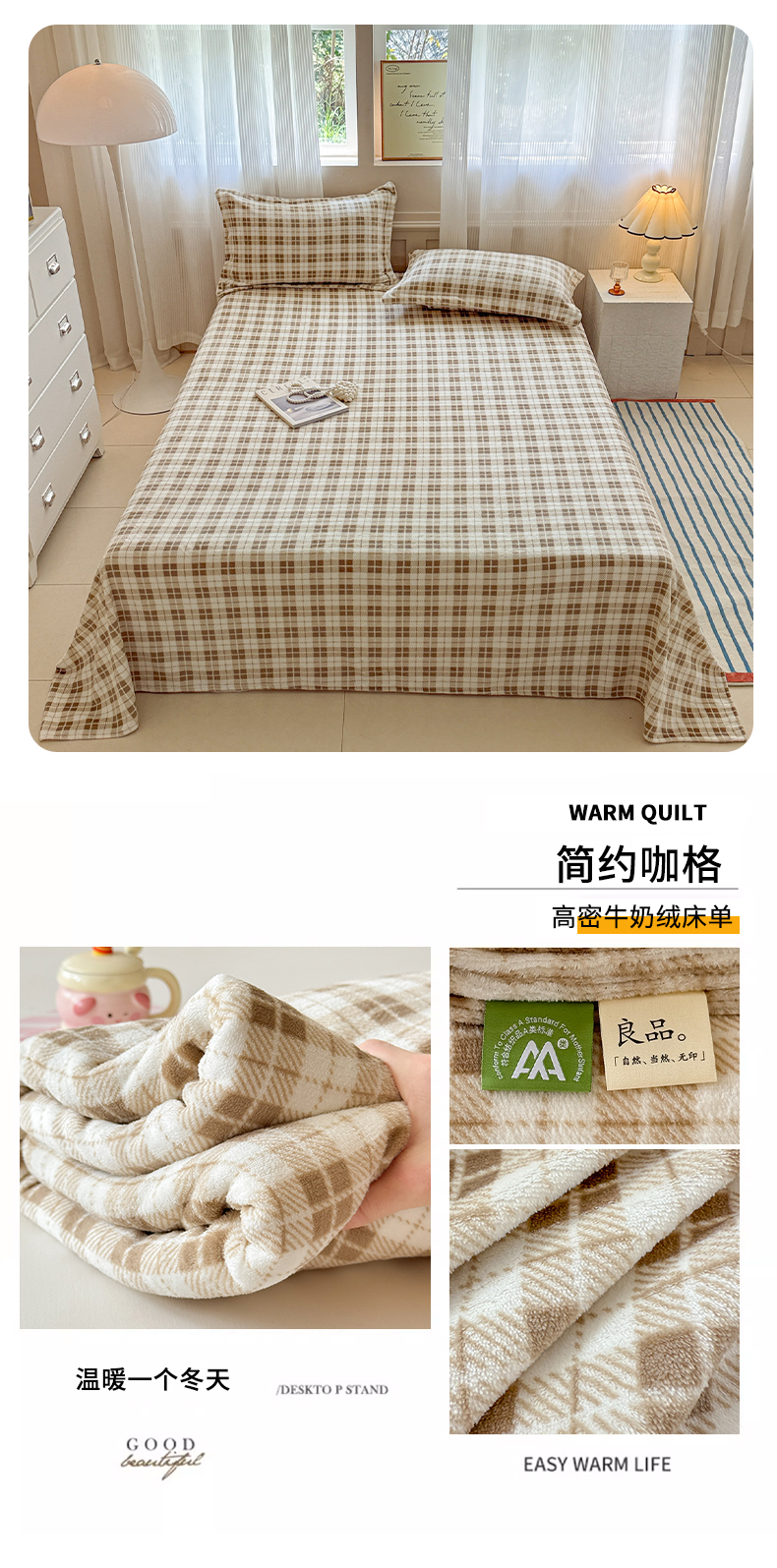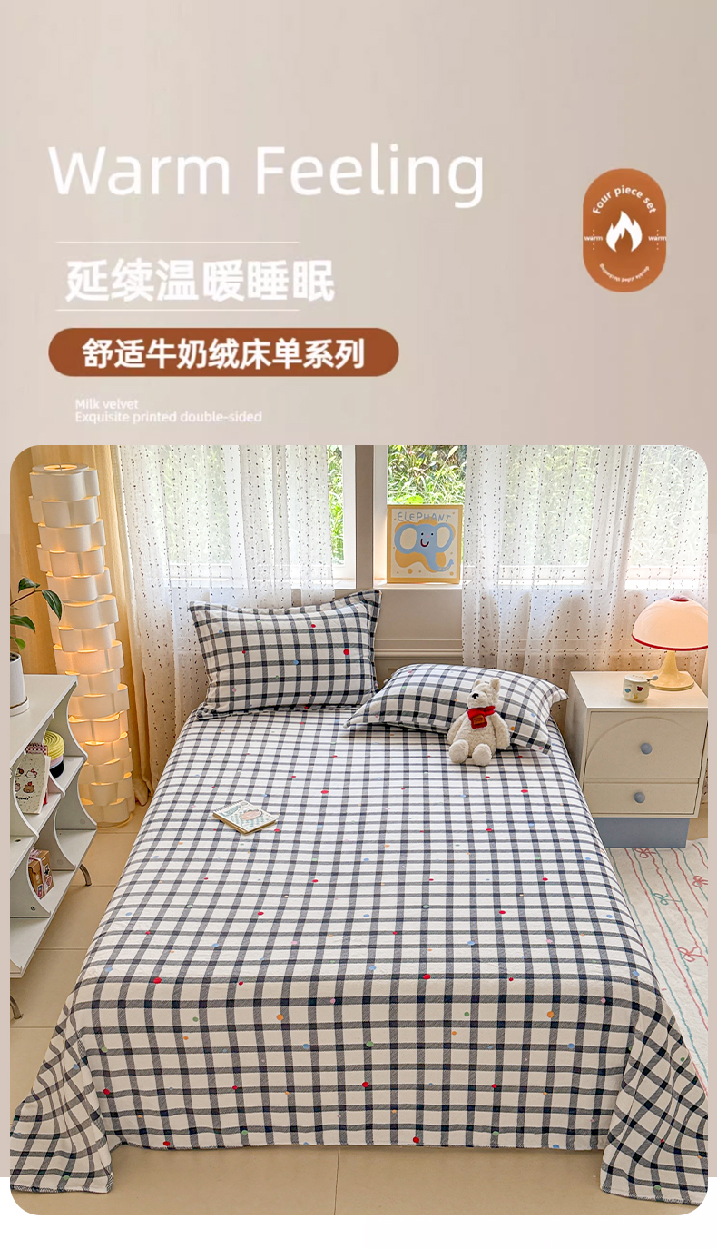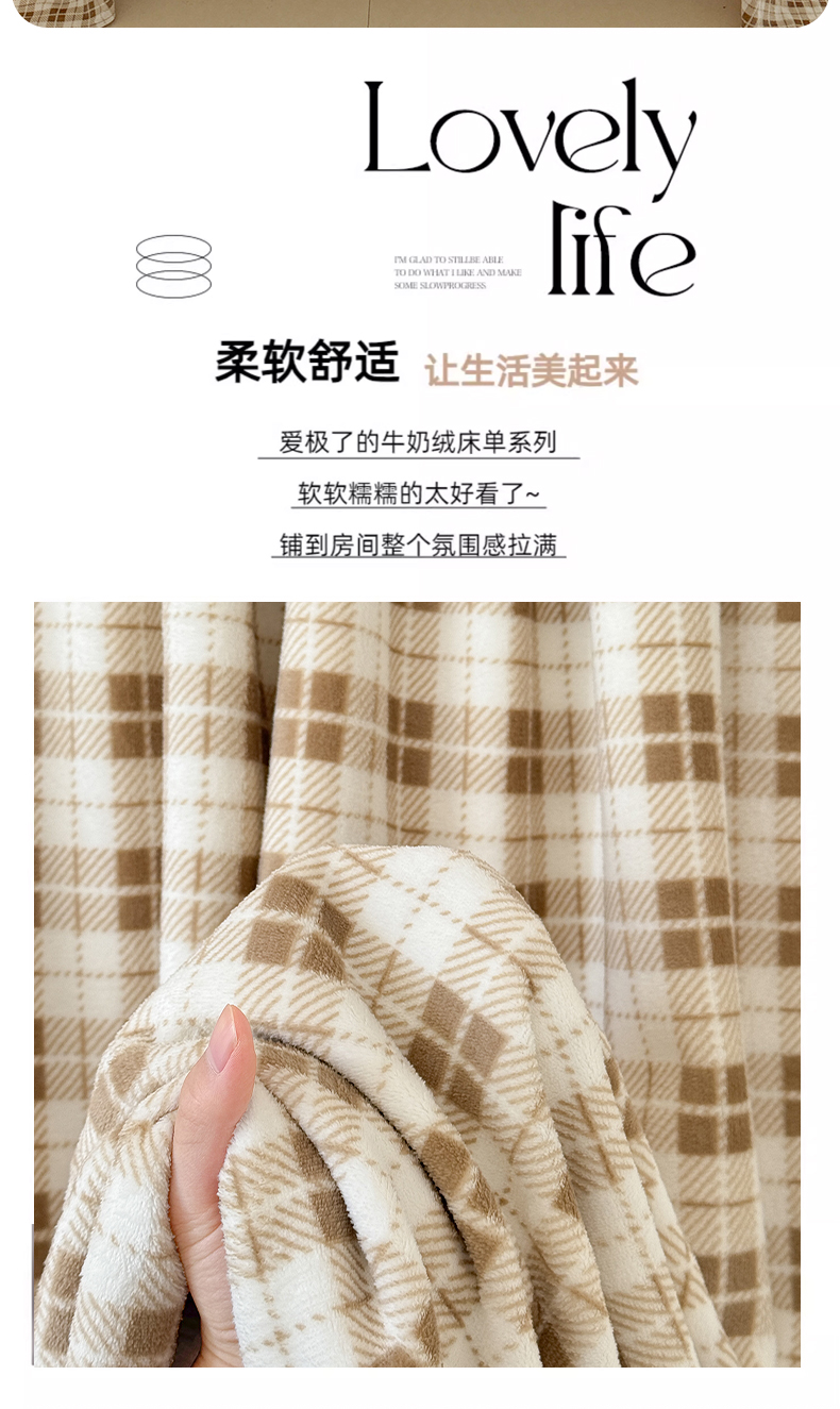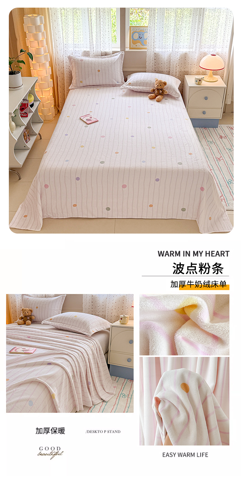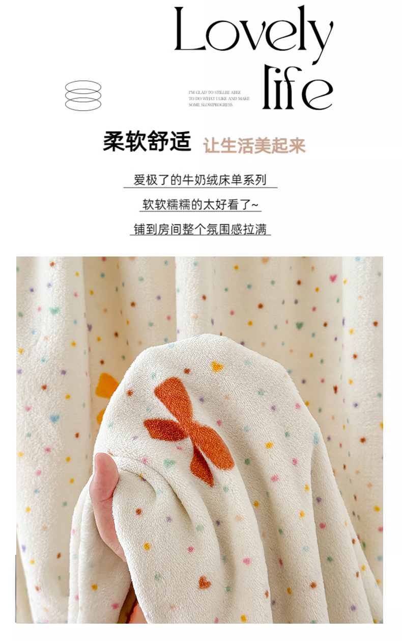 商品名称:(总)丽美人 2025新款高克重印花牛奶绒无印风床单款(A类母婴级面料)