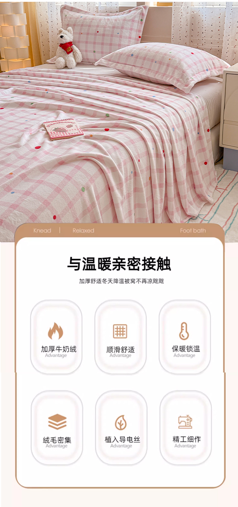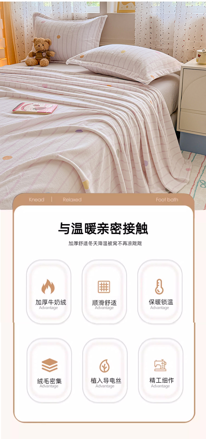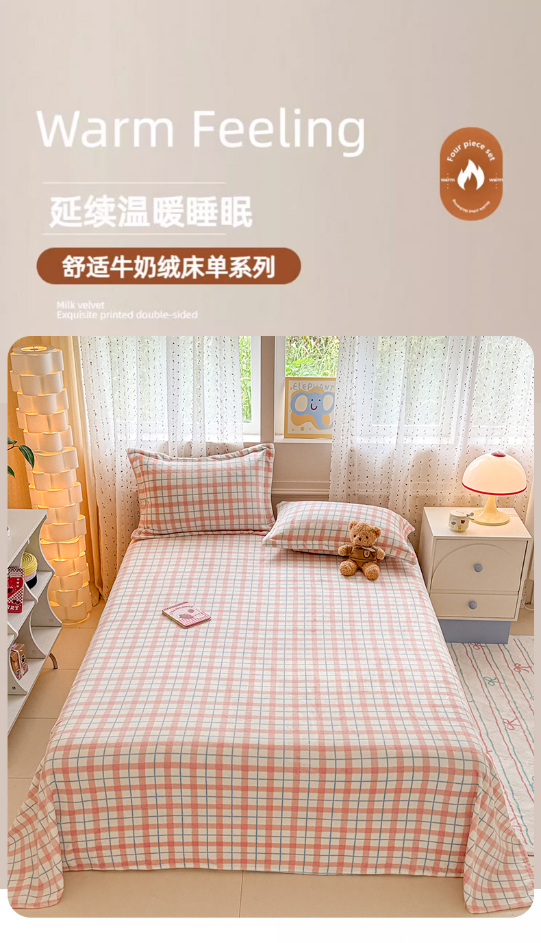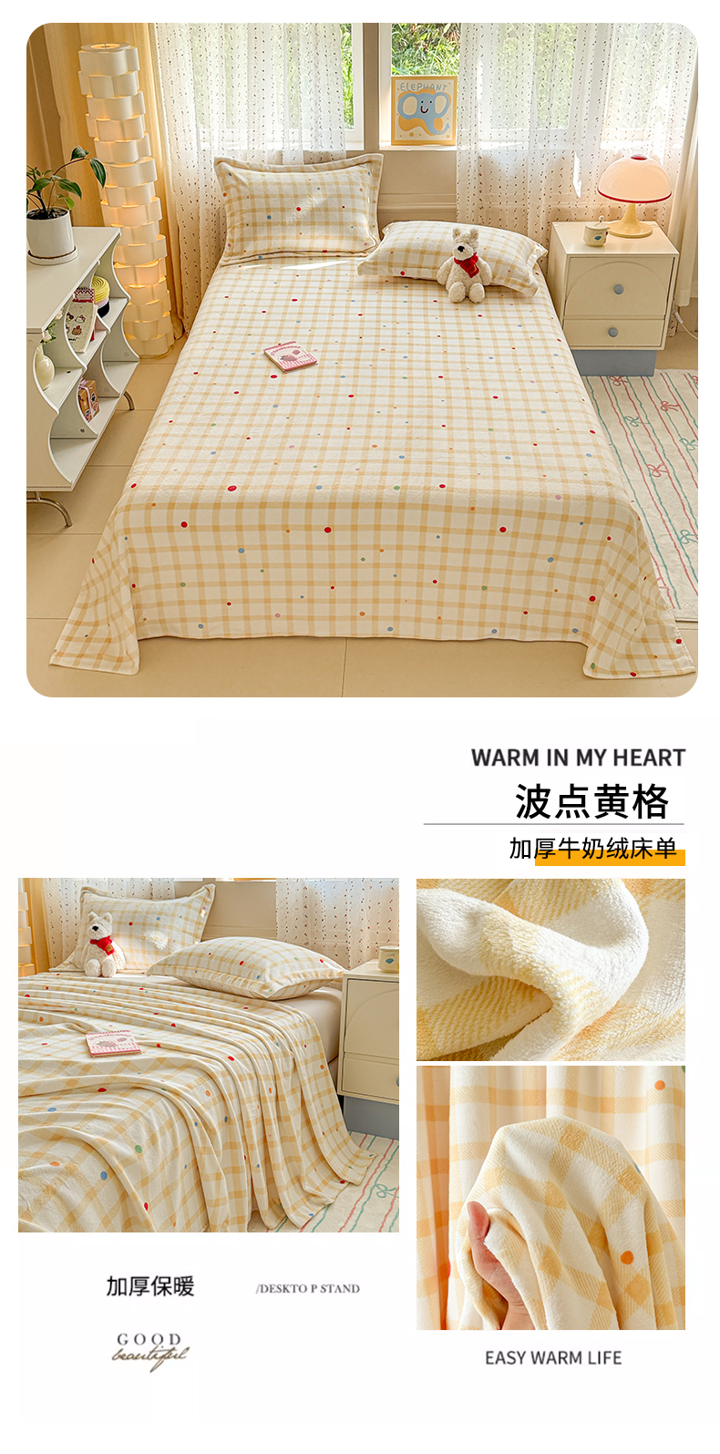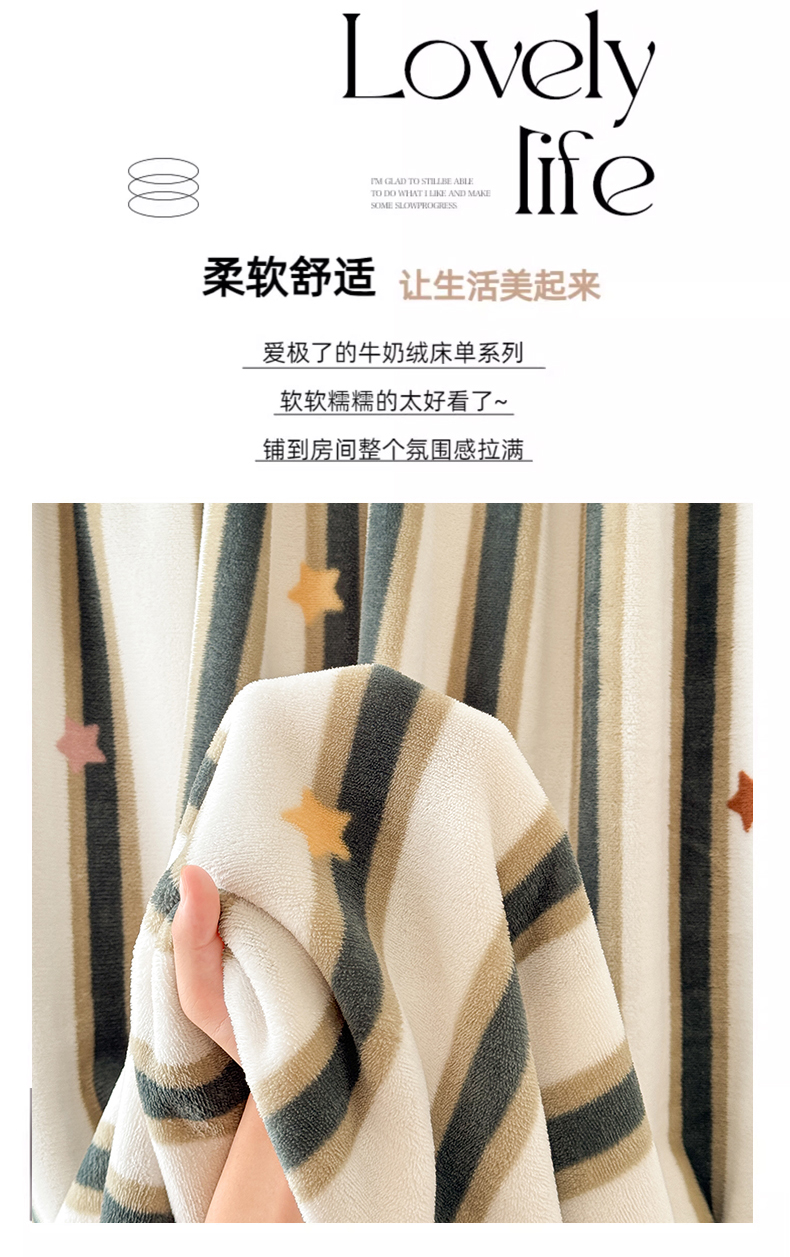 商品名称:(总)丽美人 2025新款高克重印花牛奶绒无印风床单款(A类母婴级面料)
