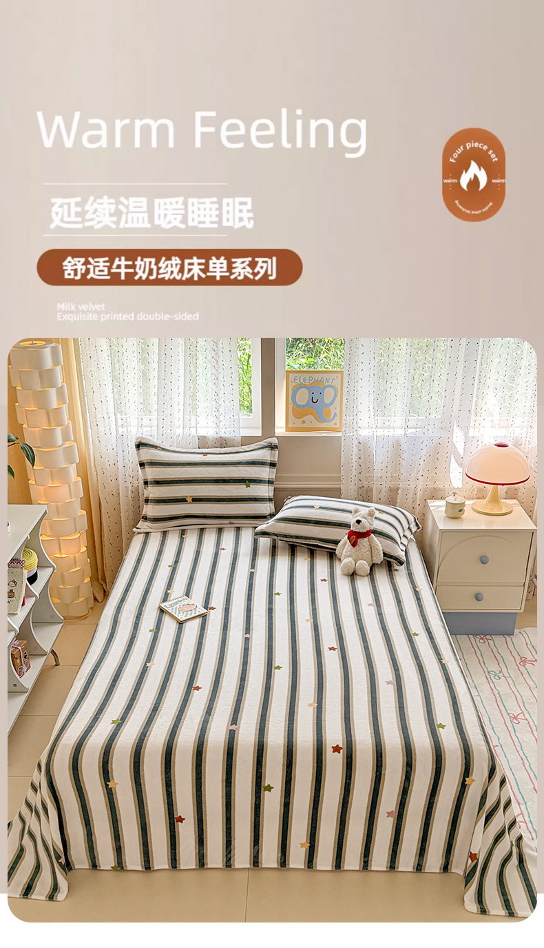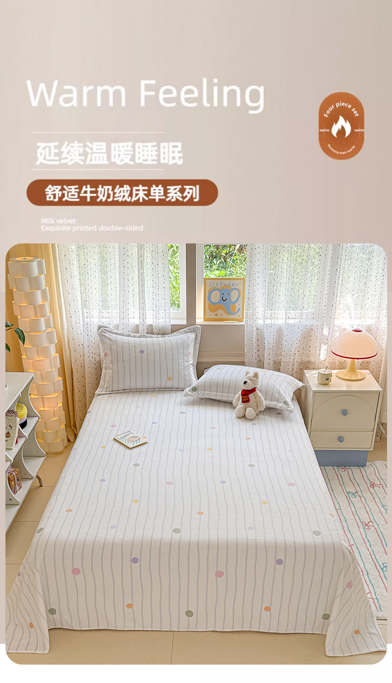 (总)丽美人 2025新款高克重印花牛奶绒无印风床单款(A类母婴级面料)