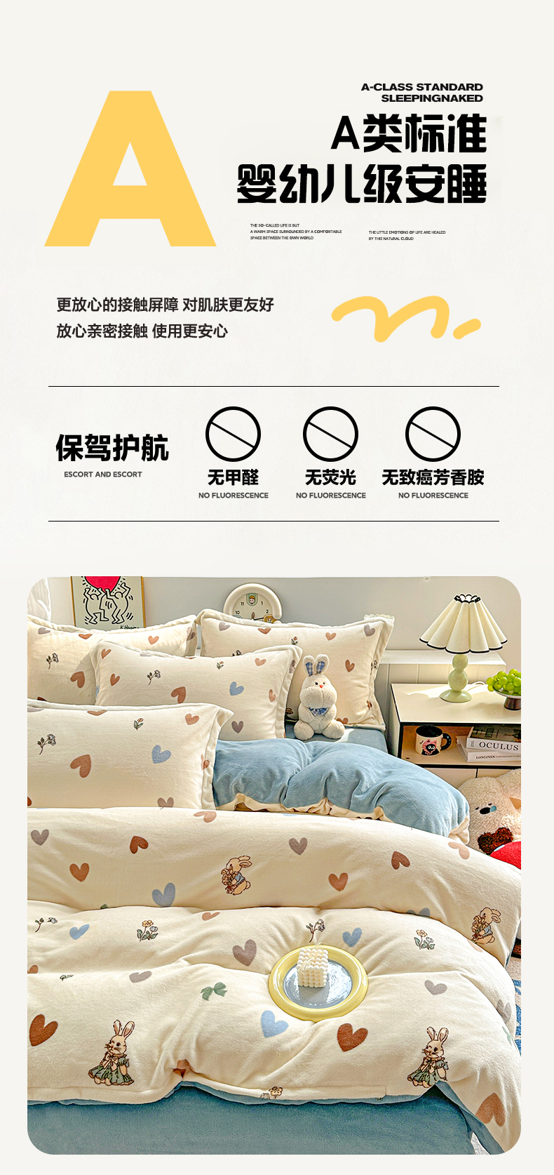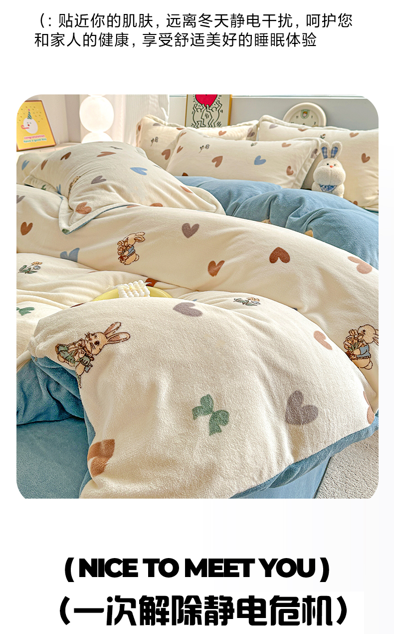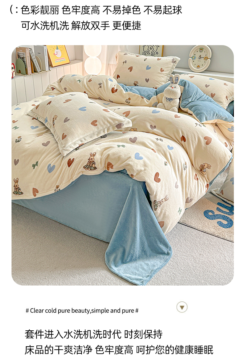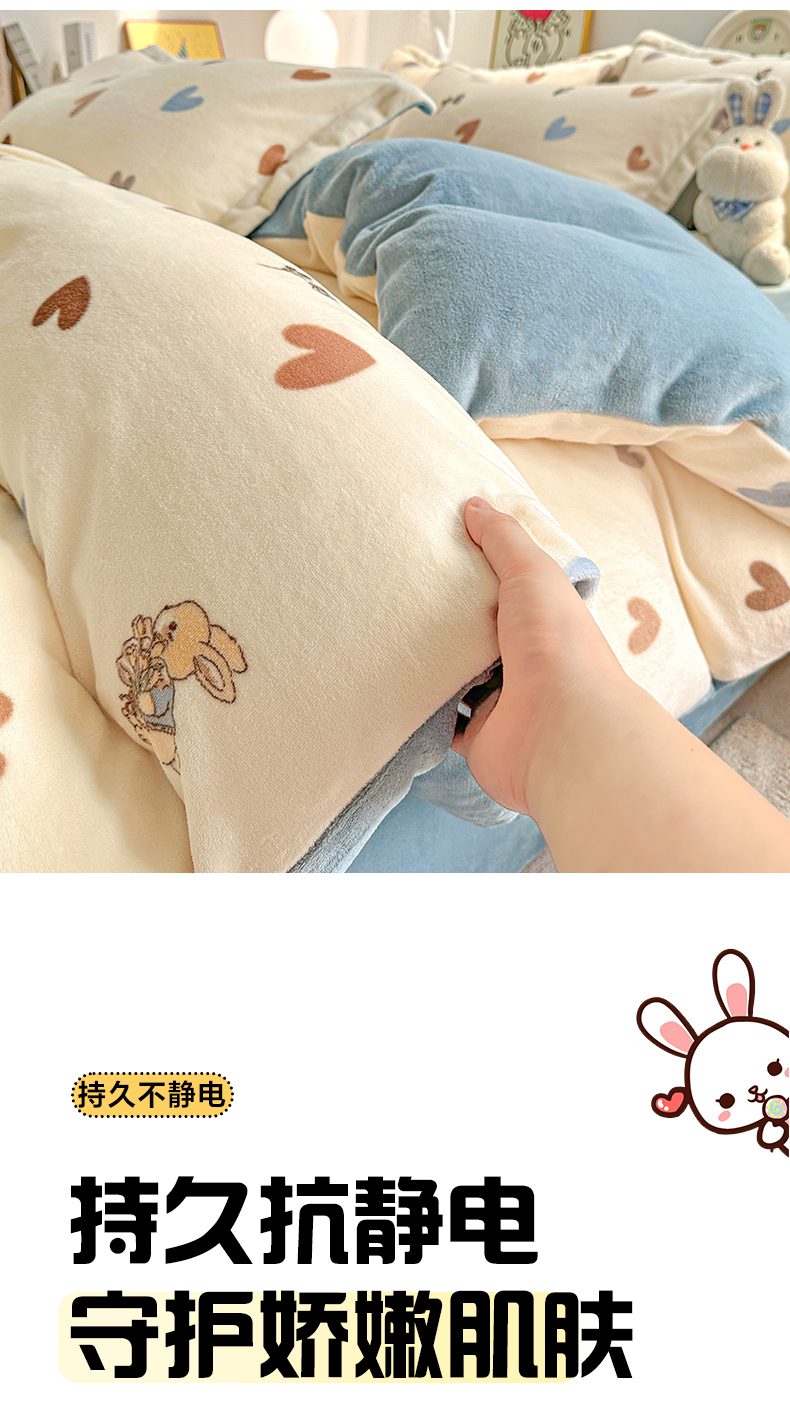 当前位置: 91家纺网 > 商品网购 > 床品套件 > 四件套 > 牛奶绒四件套 > 简一 2025新款小清新牛奶绒印花四件套-卡通系列 兔伴心河