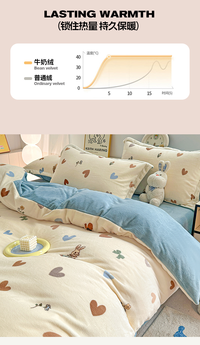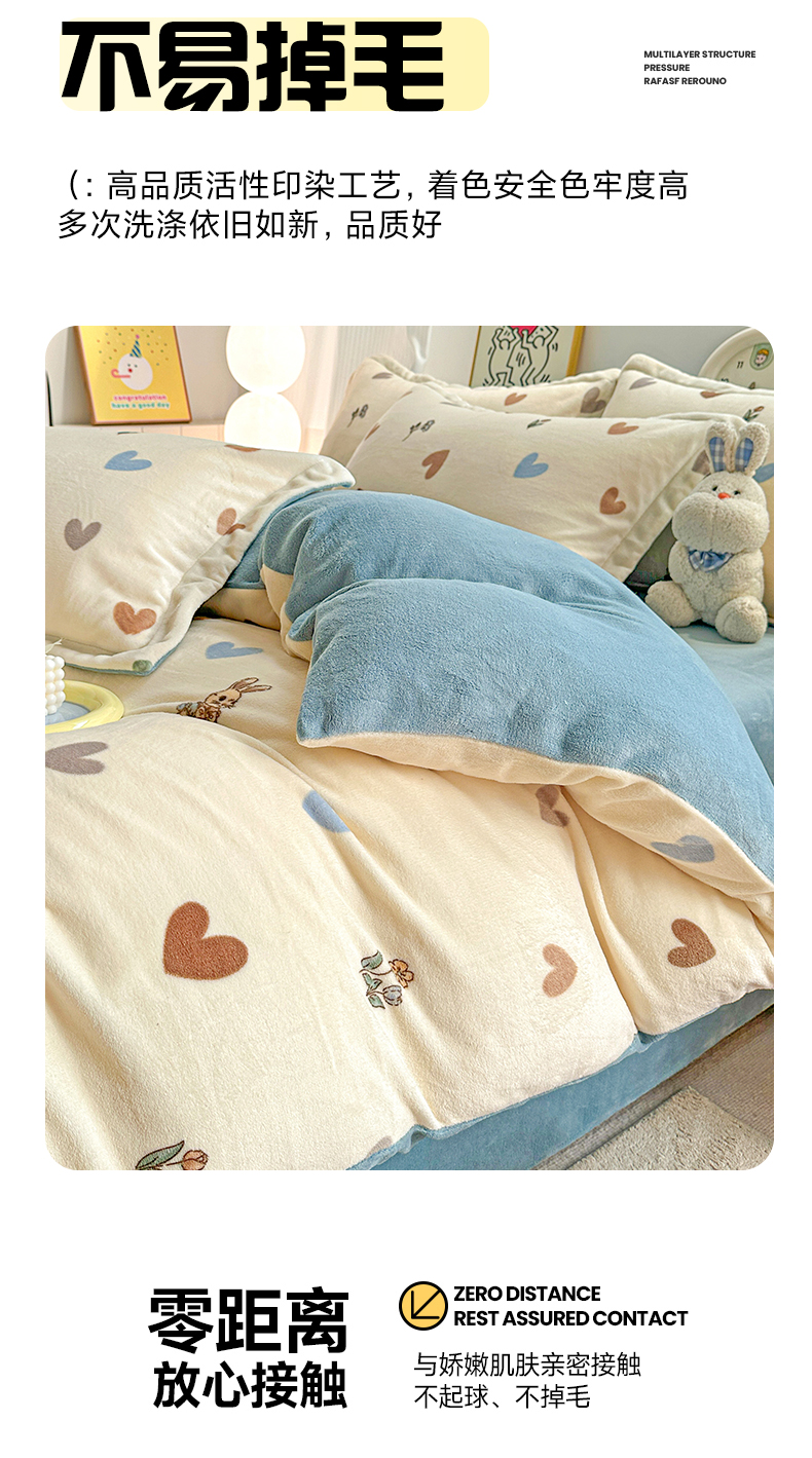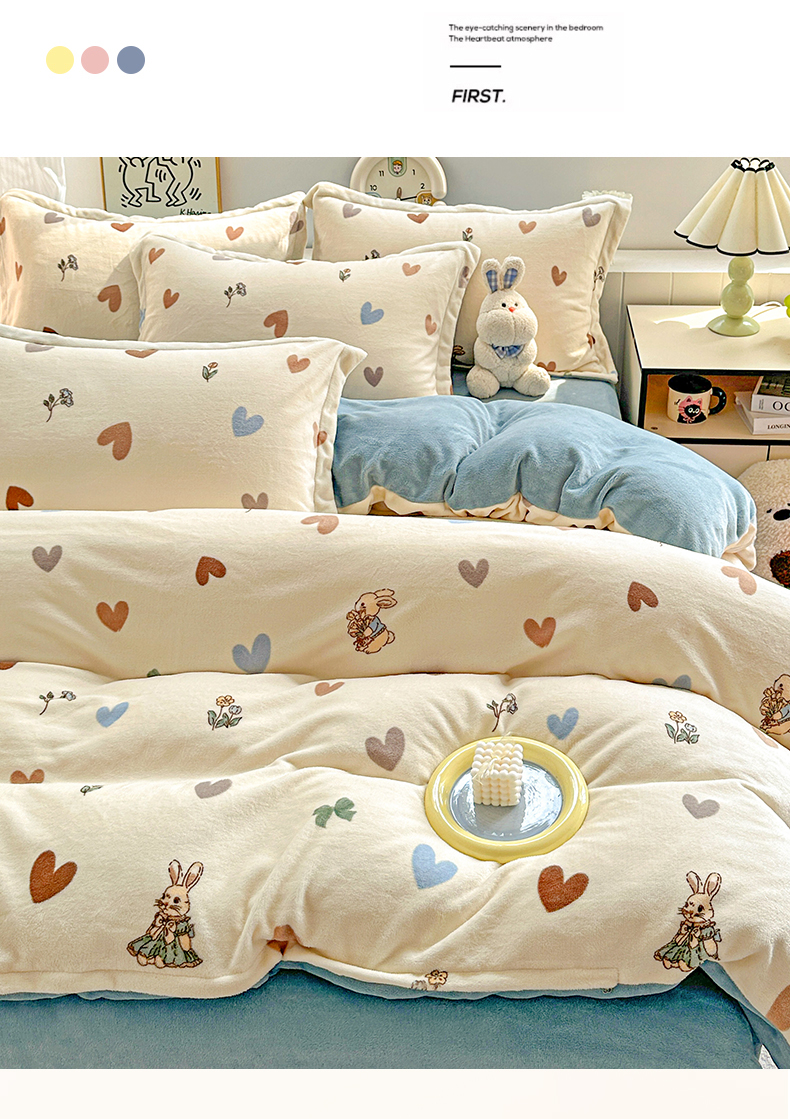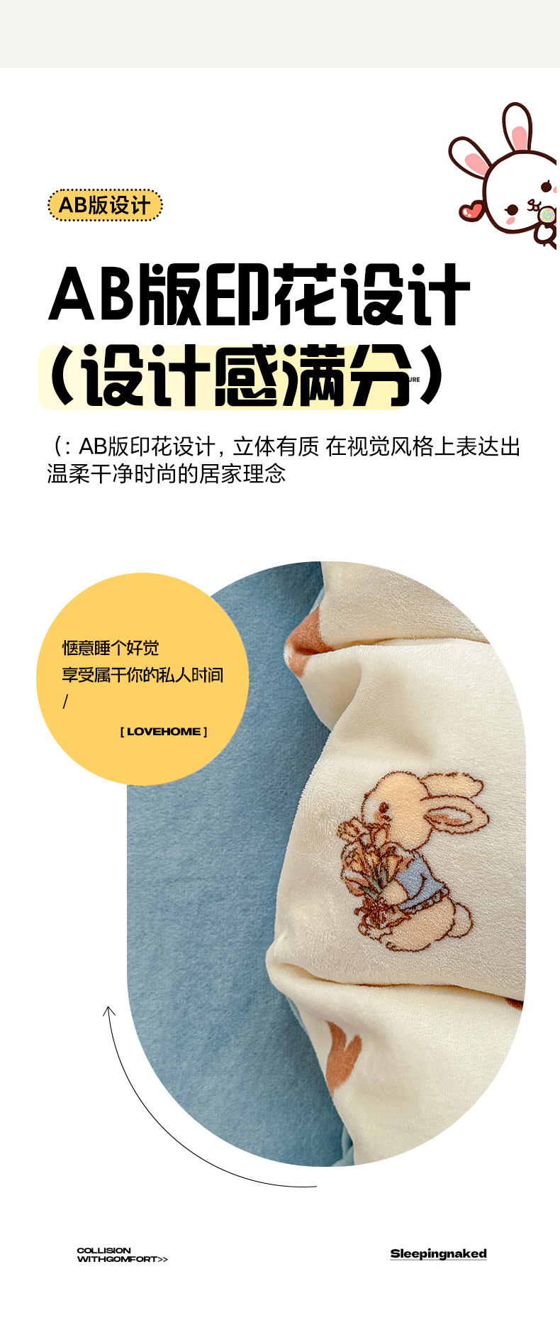 当前位置: 91家纺网 > 商品网购 > 床品套件 > 四件套 > 牛奶绒四件套 > 简一 2025新款小清新牛奶绒印花四件套-卡通系列 兔伴心河