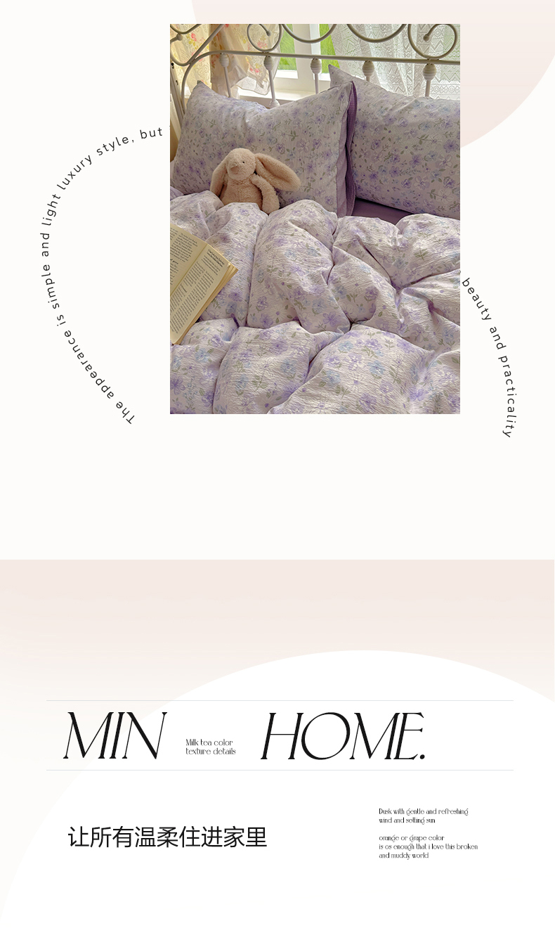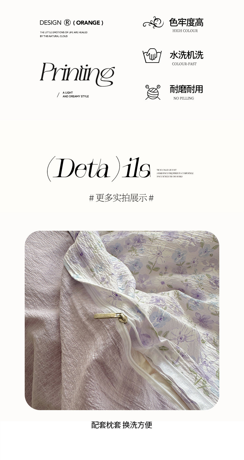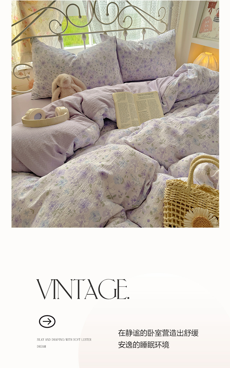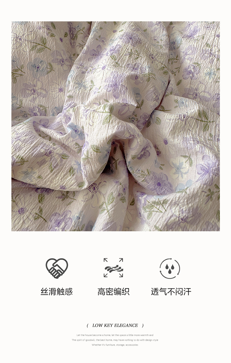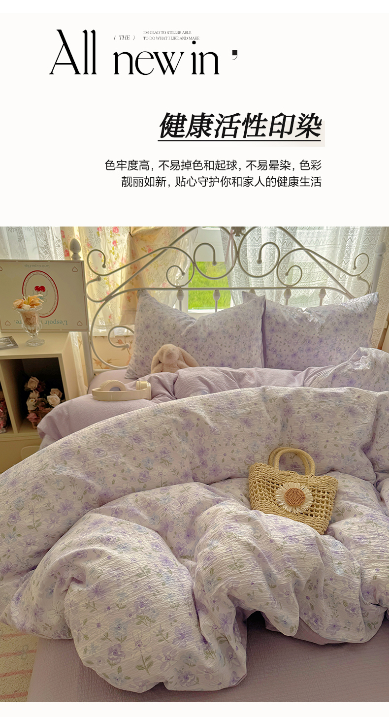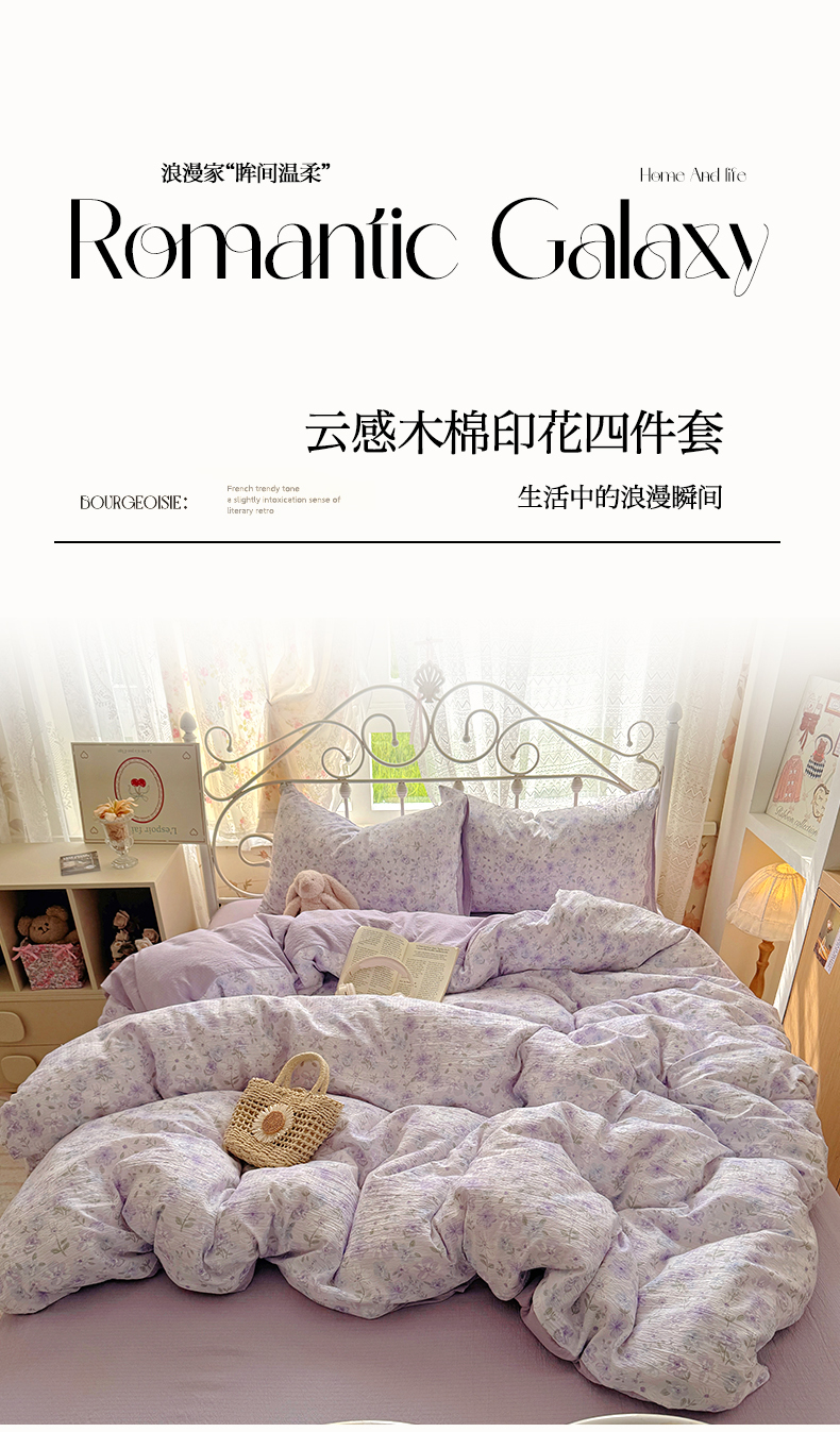 当前位置: 91家纺网 > 商品网购 > 床品套件 > 四件套 > 水洗棉四件套 > 阿曼达 2025爆款云感木m透气柔软印花可爱卡通软糯皱皱亲肤四件套 百花集-紫