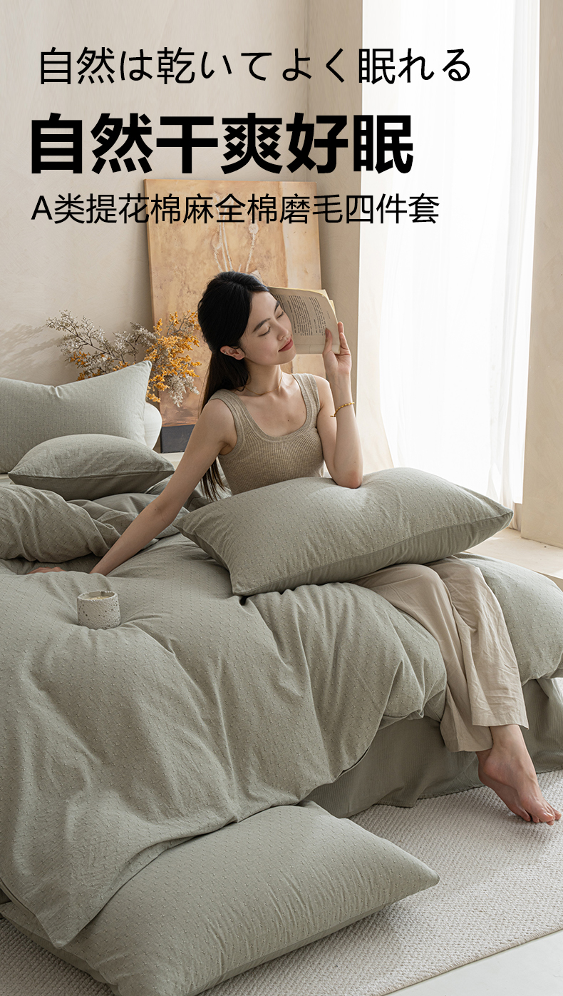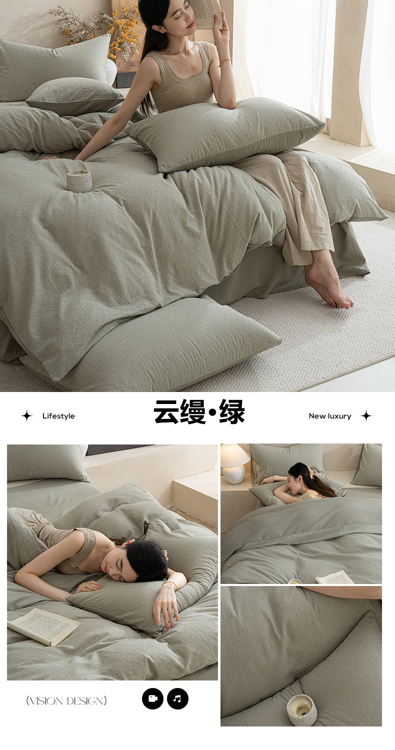 当前位置: 91家纺网 > 商品网购 > 床品套件 > 四件套 > 全棉普通四件套 > 小叮当家纺仓储工厂店 2025新款提供买家秀爆款花型不断货棉麻提花全棉纯棉磨毛四件套-云缦 云缦·绿