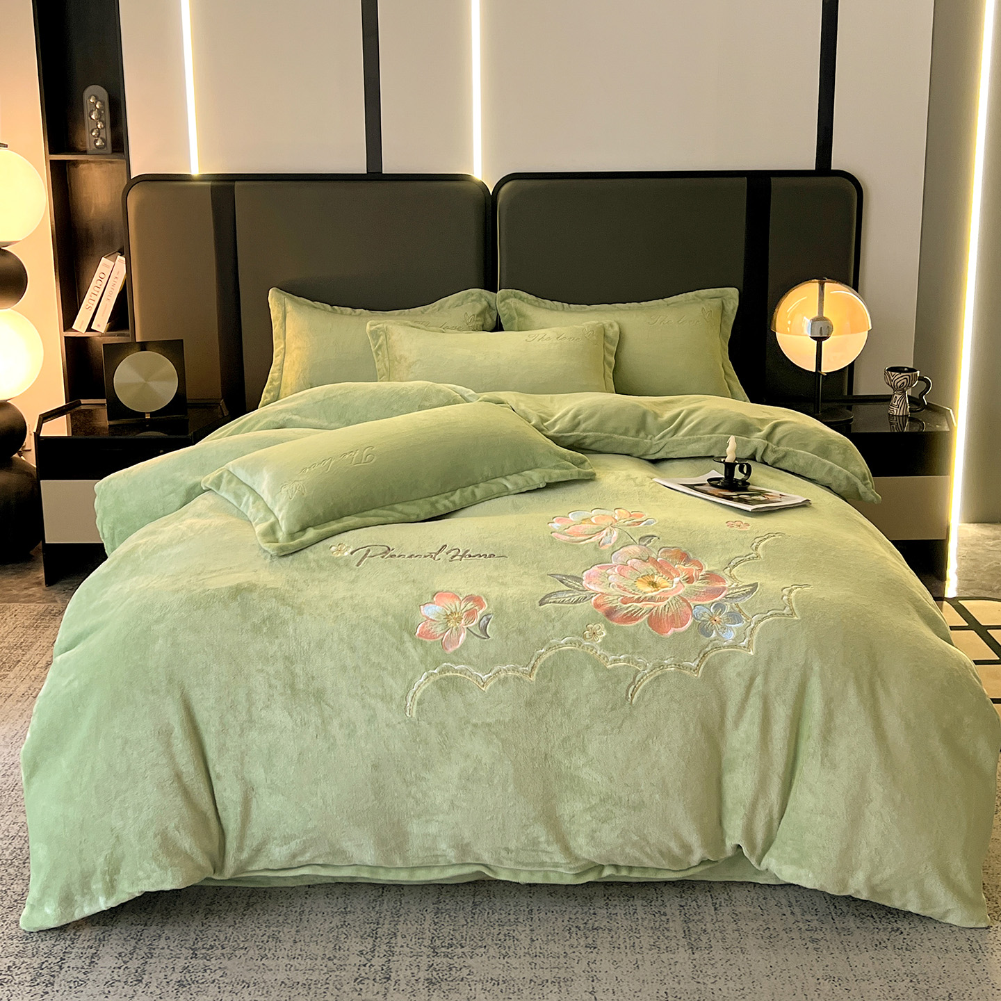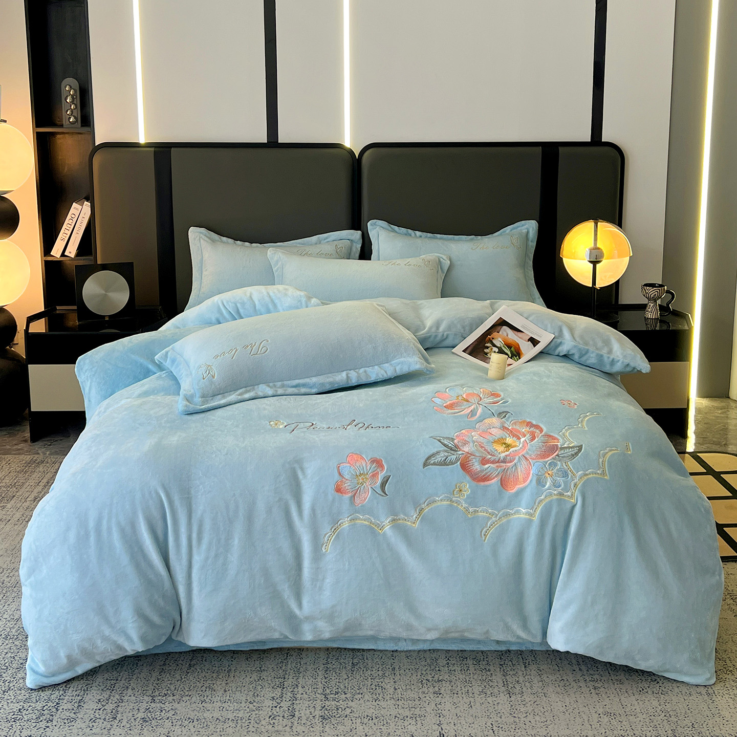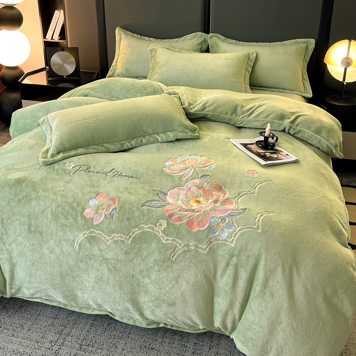 (总)居易简 2025新款亲肤刺绣款牛奶绒四件套-花晨月夕