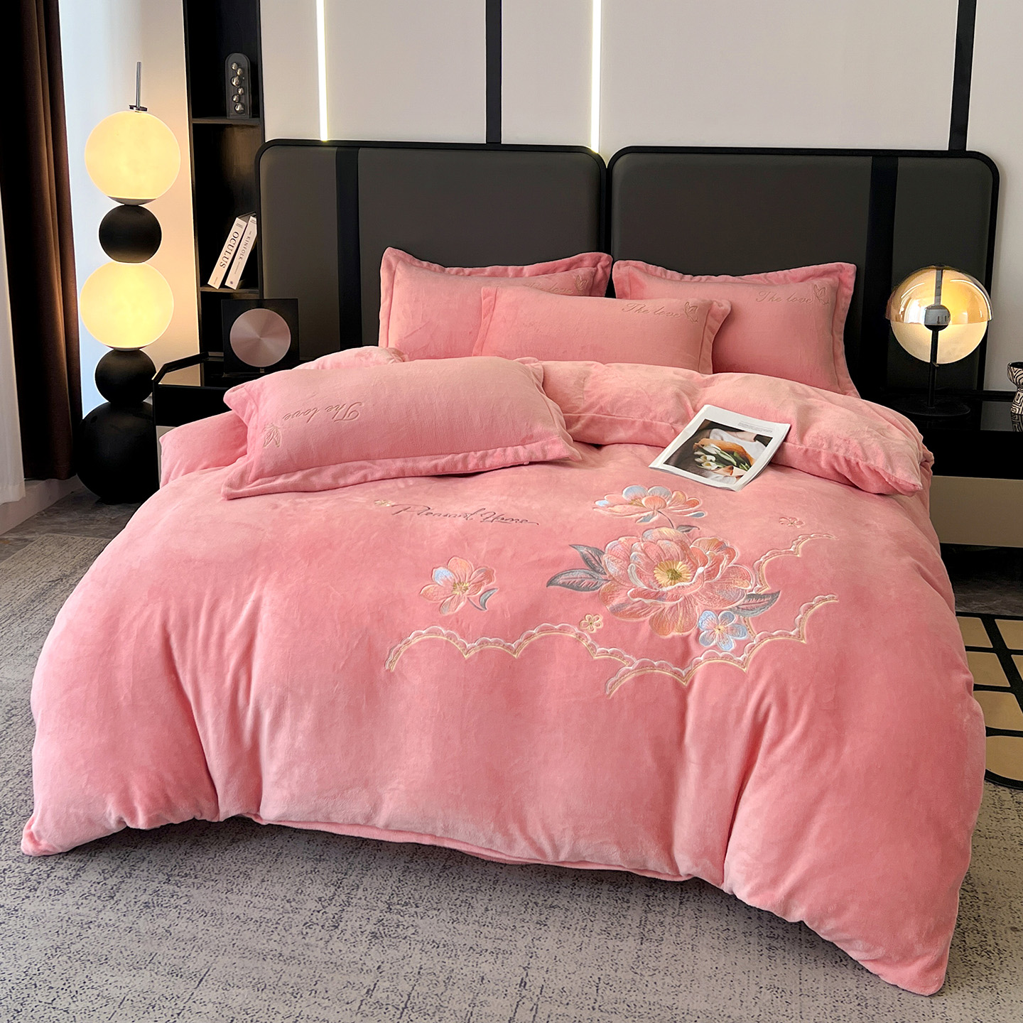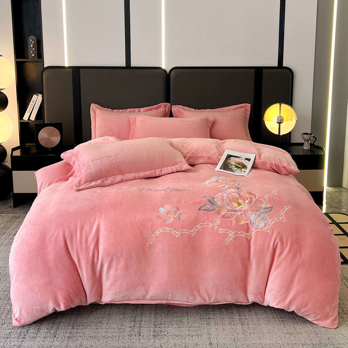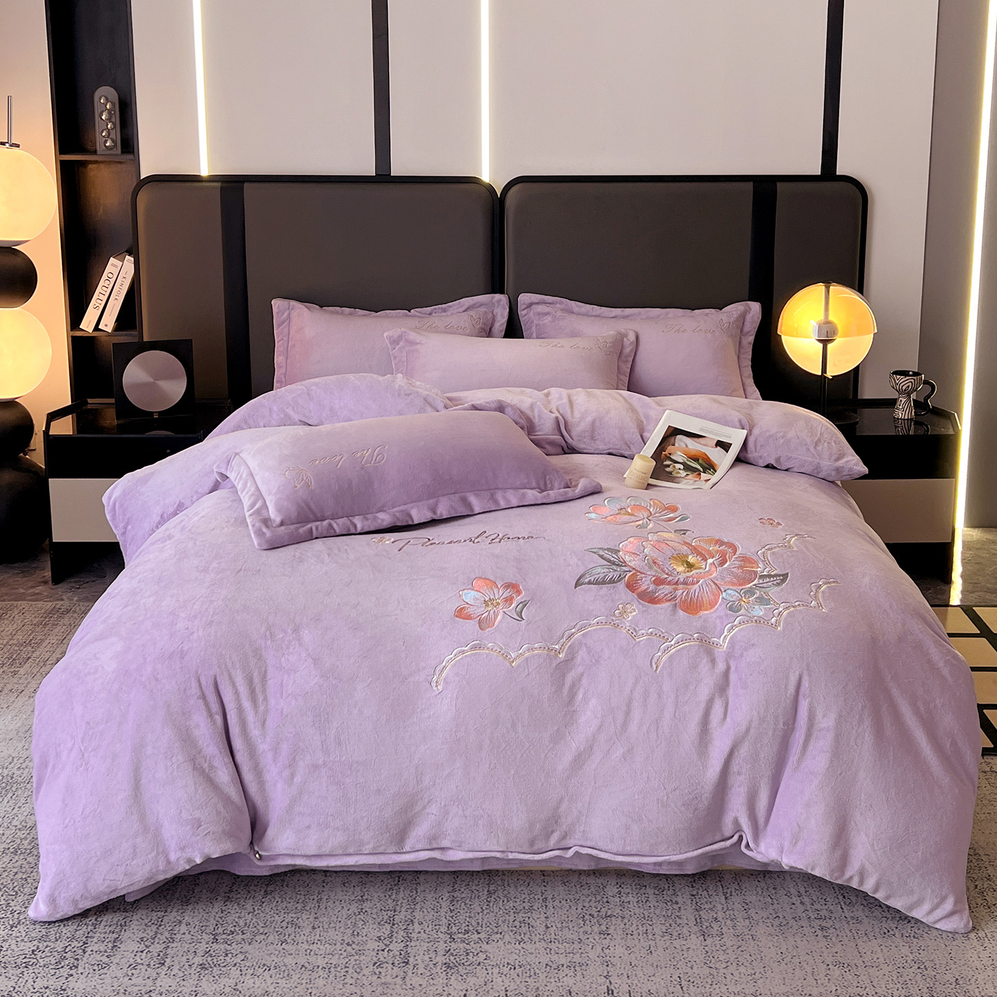 (总)居易简 2025新款亲肤刺绣款牛奶绒四件套-花晨月夕