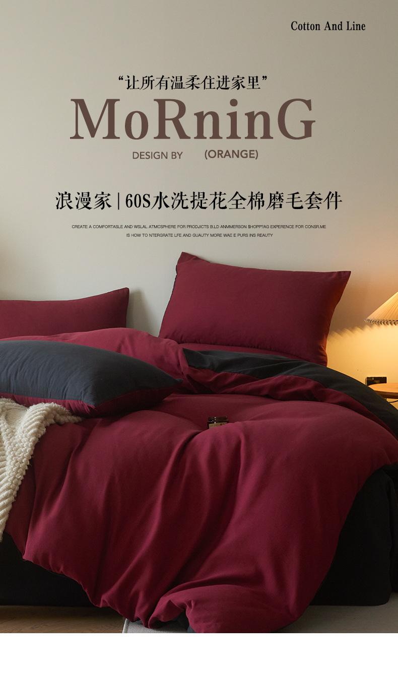 当前位置: 91家纺网 > 商品网购 > 床品套件 > 四件套 > 全棉普通四件套 > 小叮当家纺仓储工厂店 2025新款提供买家秀爆款花型不断货60s水洗提花全棉纯棉磨毛四件套 樱桃红+玛瑙灰