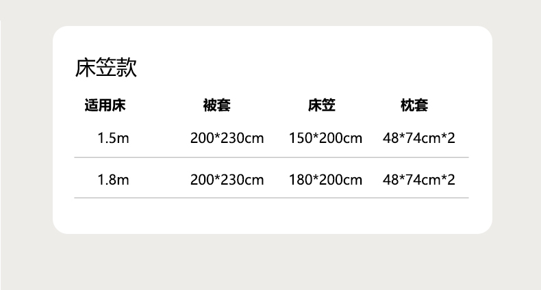 【床笠款】1.5四件套-被套200x230 | ¥180.00 |