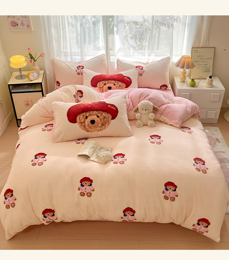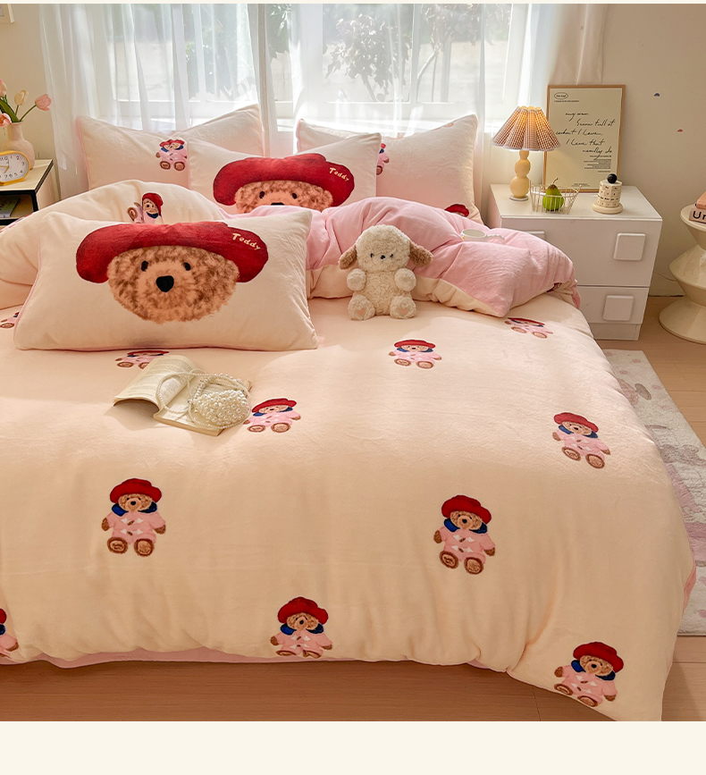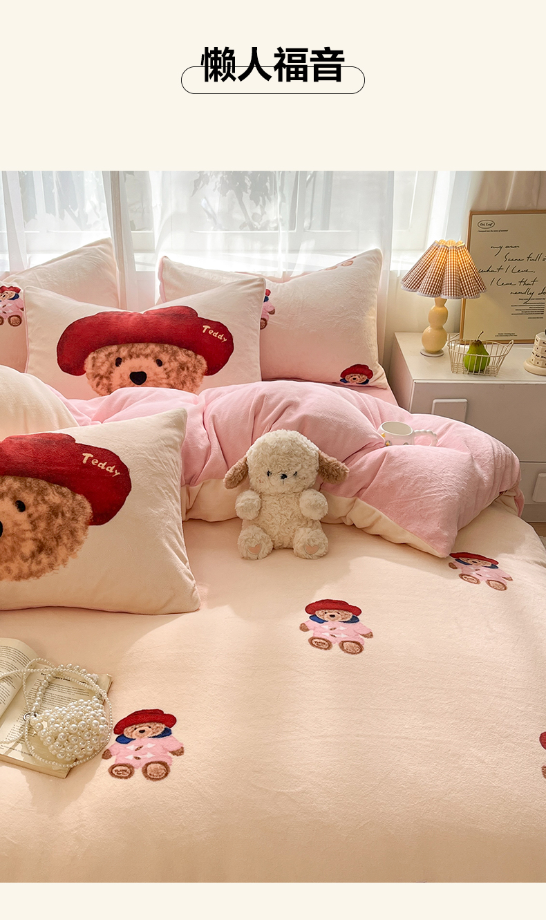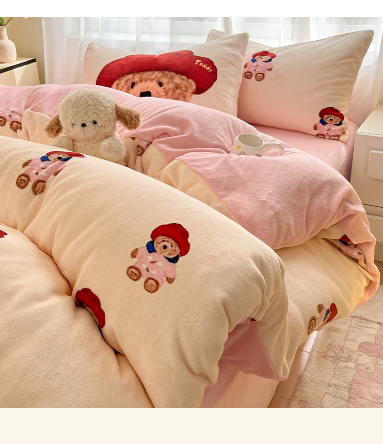 如一 2025新款高克重卡通印花牛奶绒四件套第三批 贵族熊