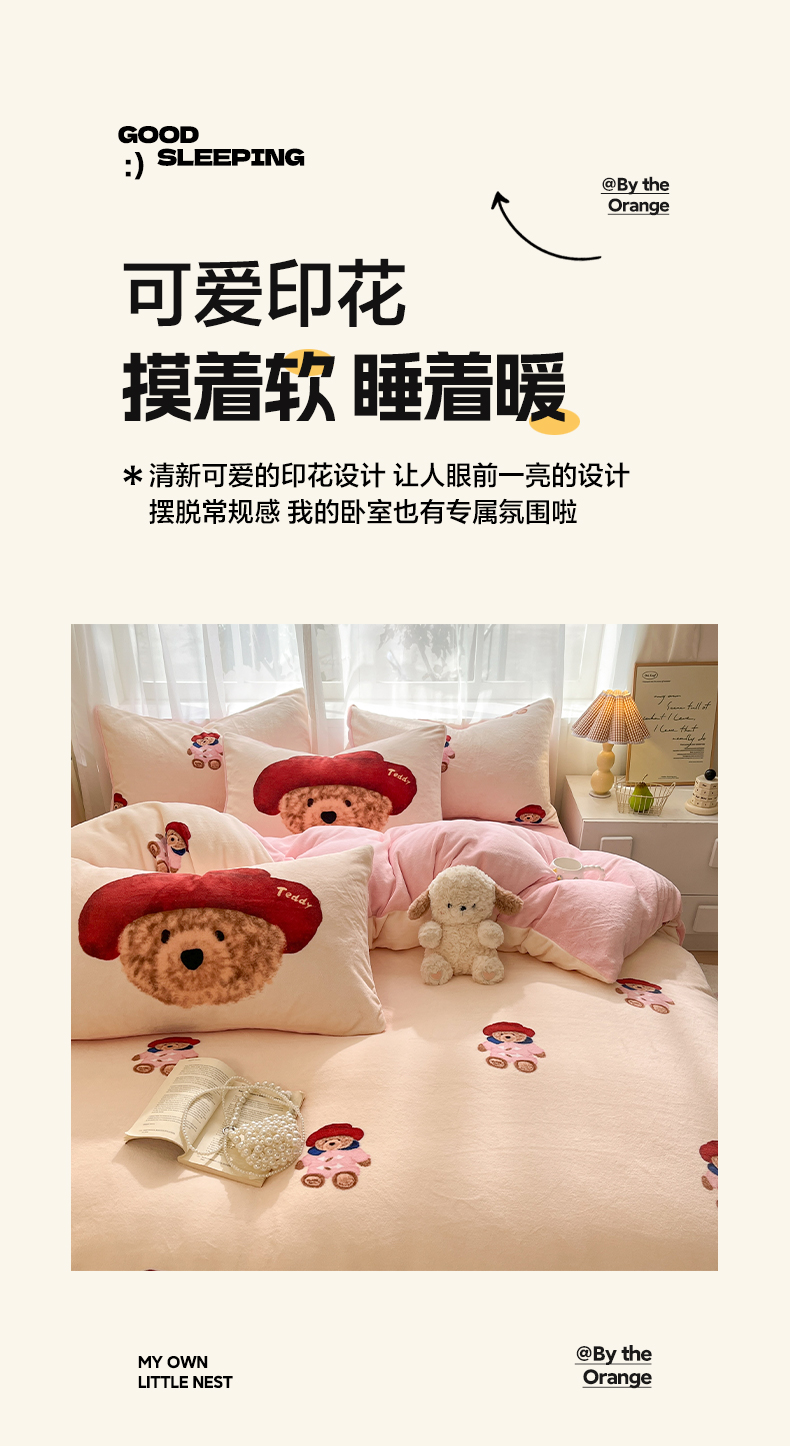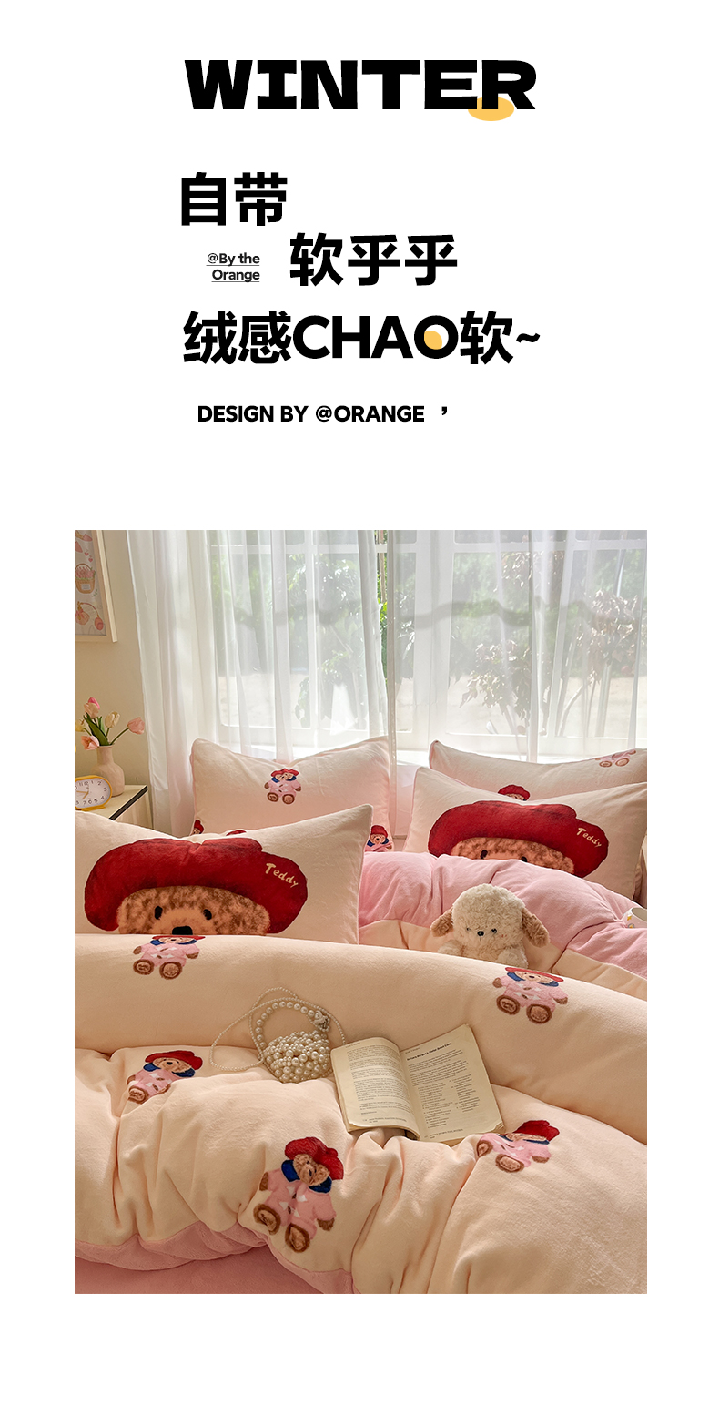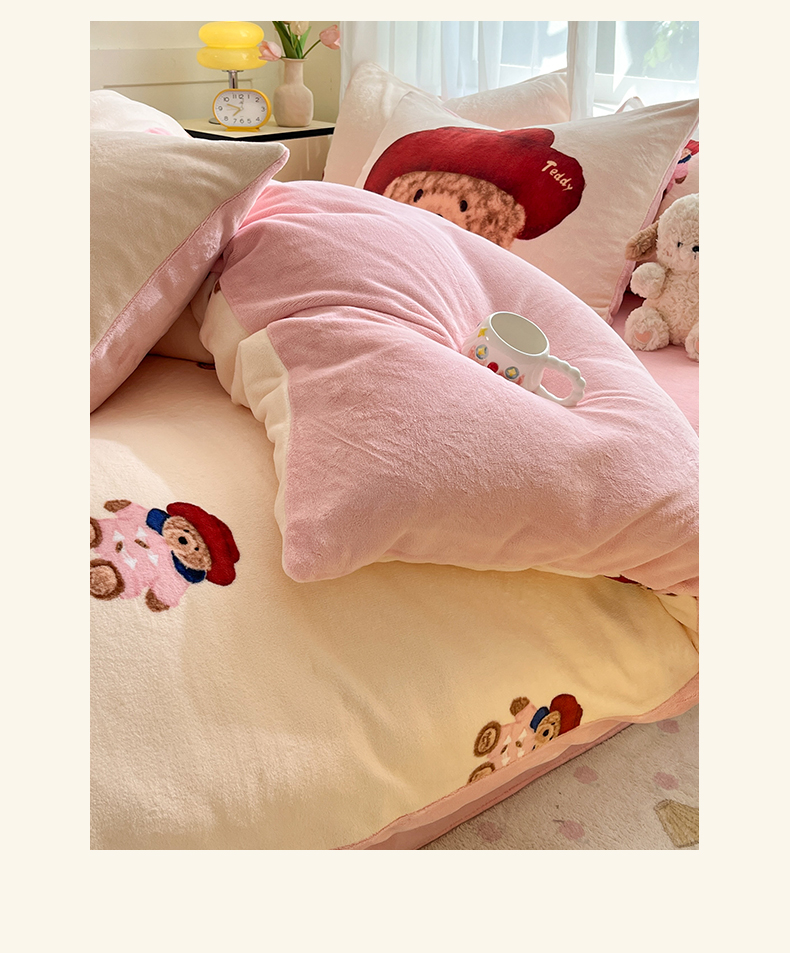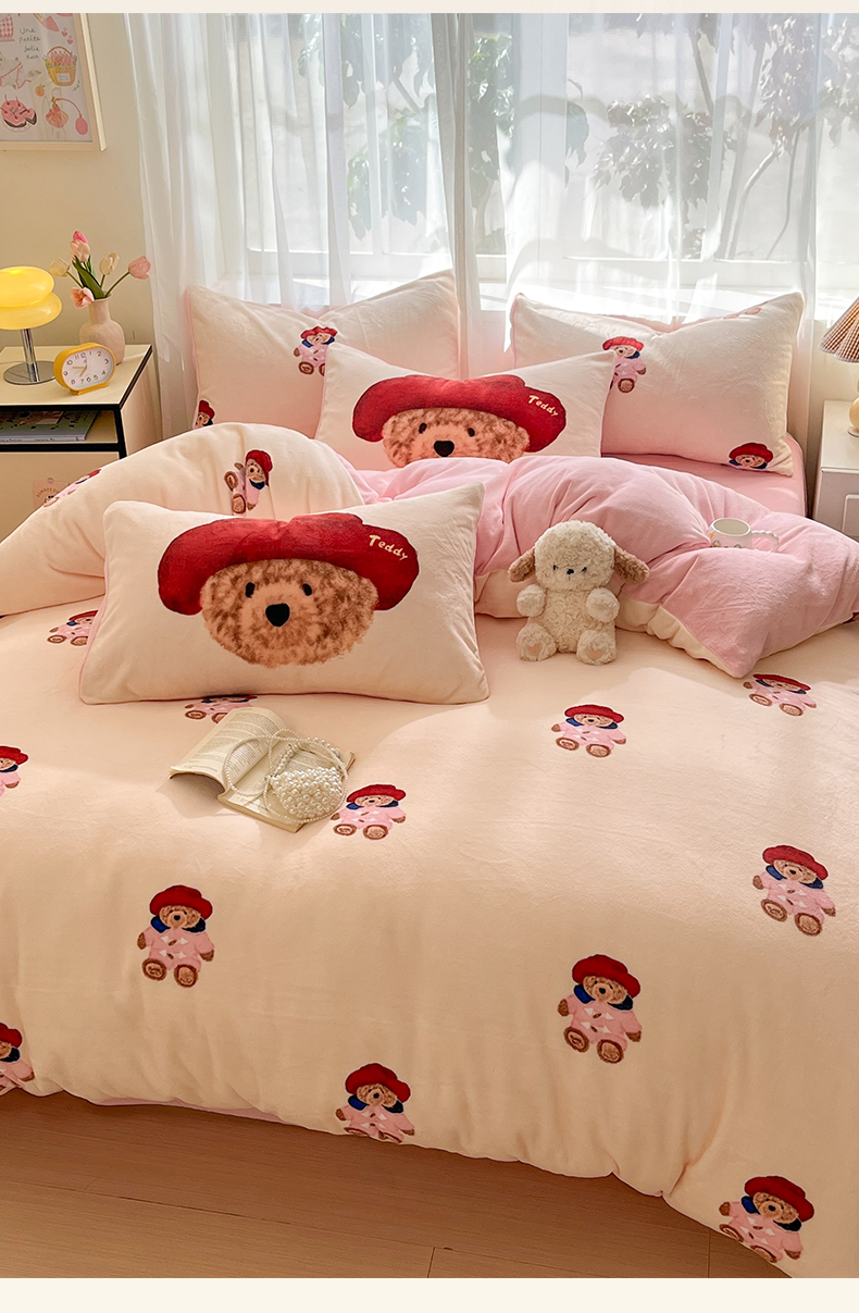 如一 2025新款高克重卡通印花牛奶绒四件套第三批 贵族熊