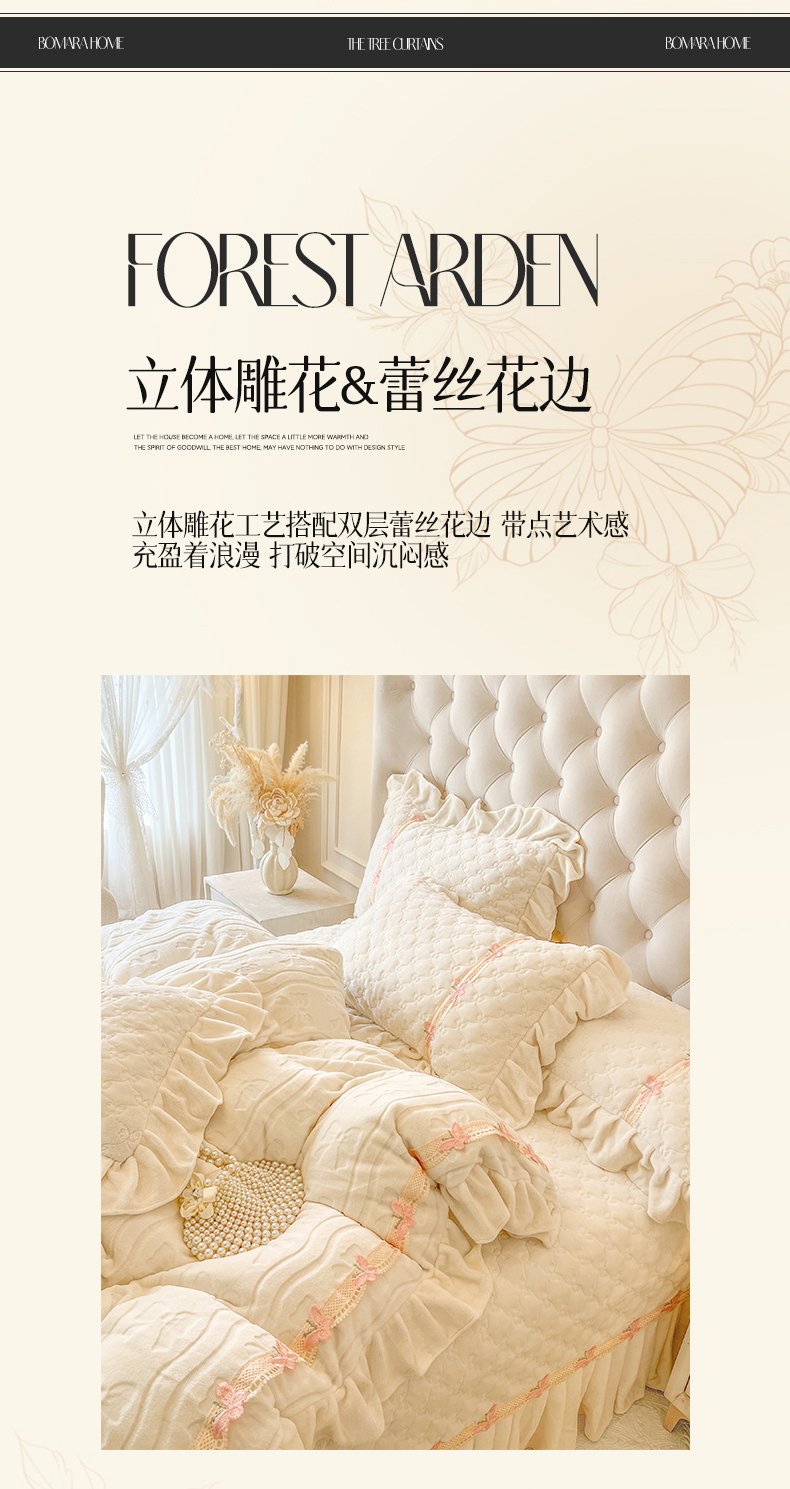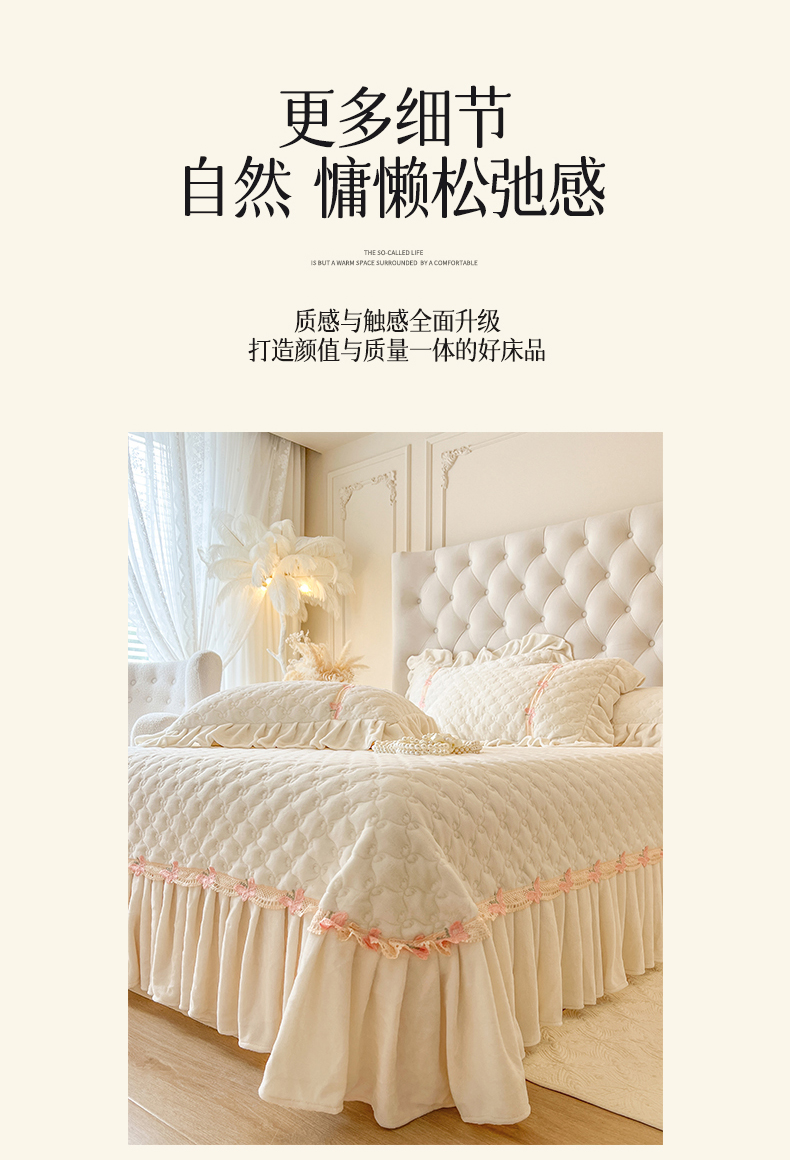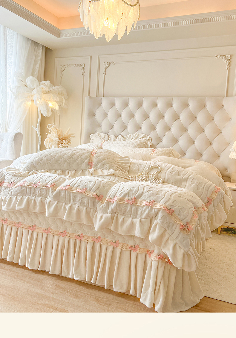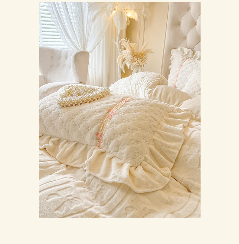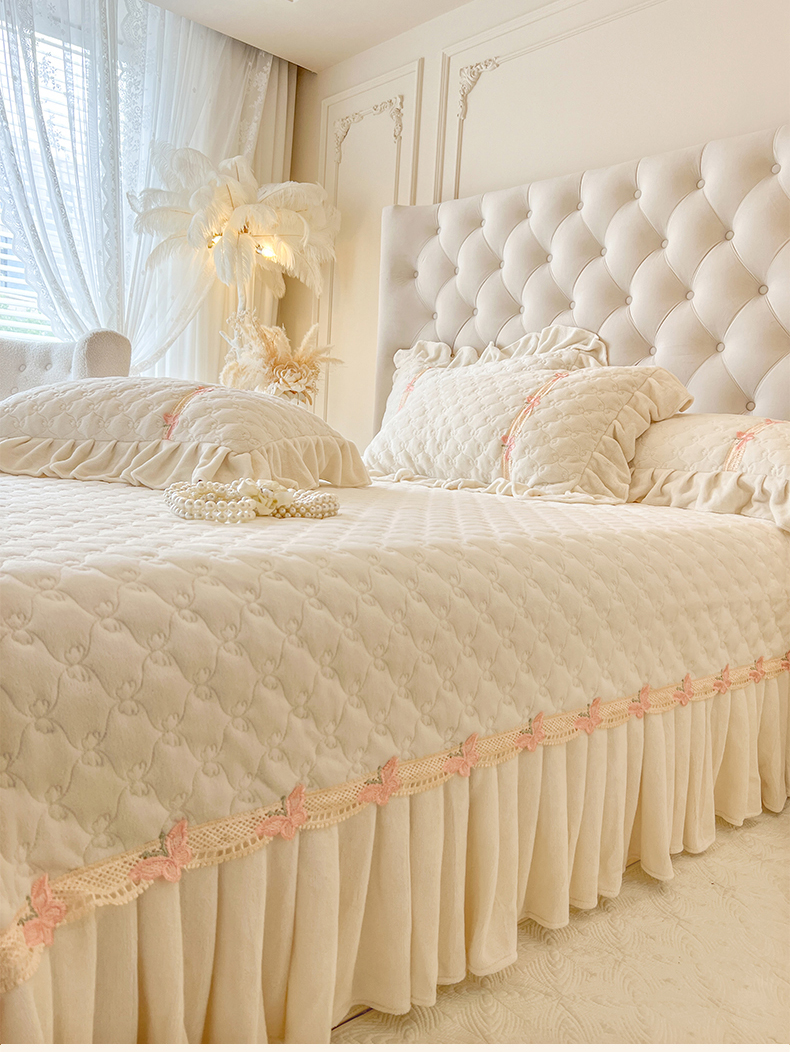 (总)瑞宝 2025新款雕花牛奶绒花边夹棉床盖四件套-莫妮卡,奶昔白,抹茶绿,奶茶咖,少女粉,雾蓝