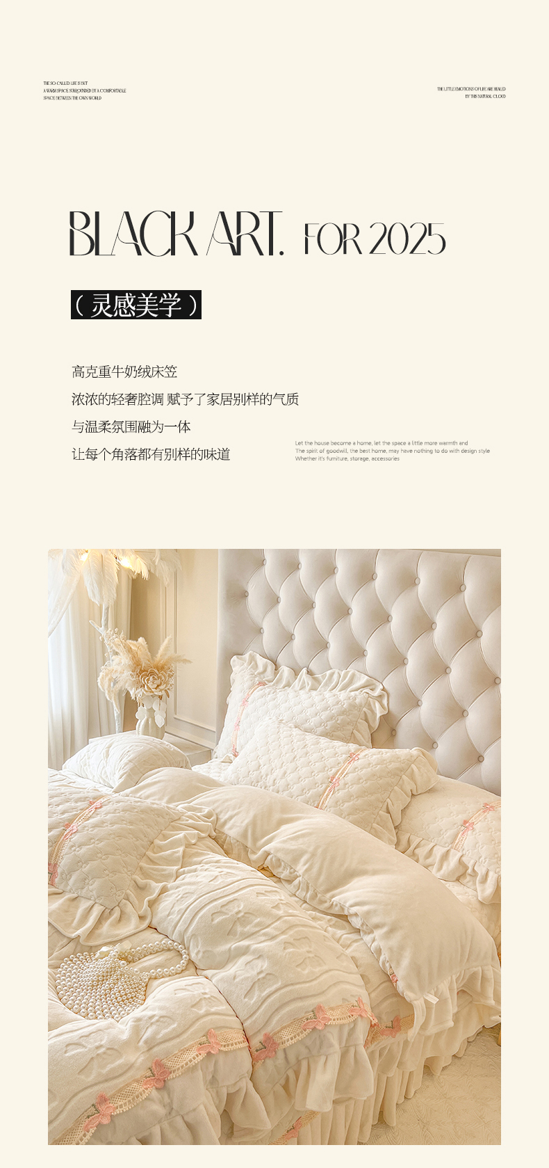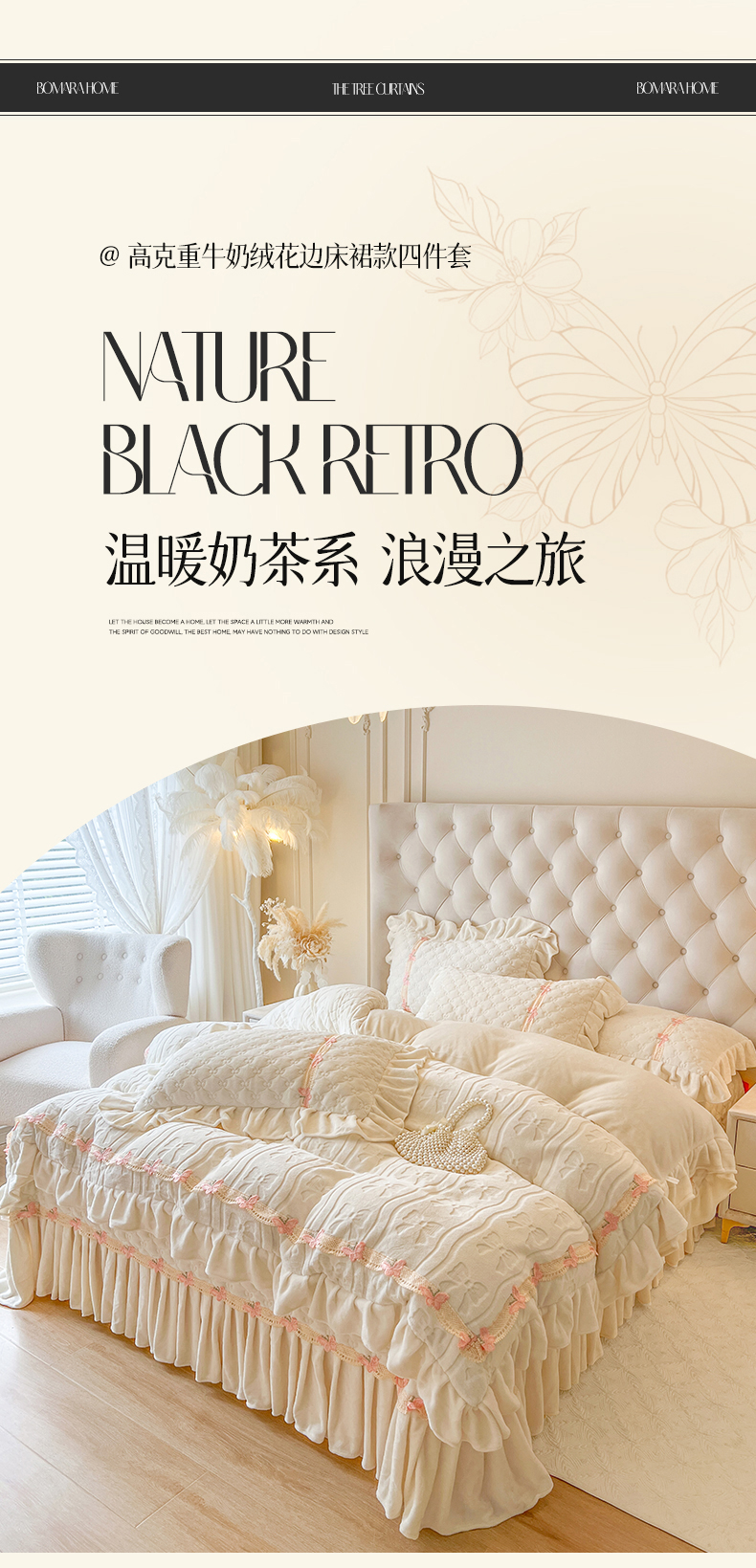 瑞宝 2025新款牛奶绒花边床盖四件套-蝶舞花语(控价 298起 ) 蝶舞花语-奶油米