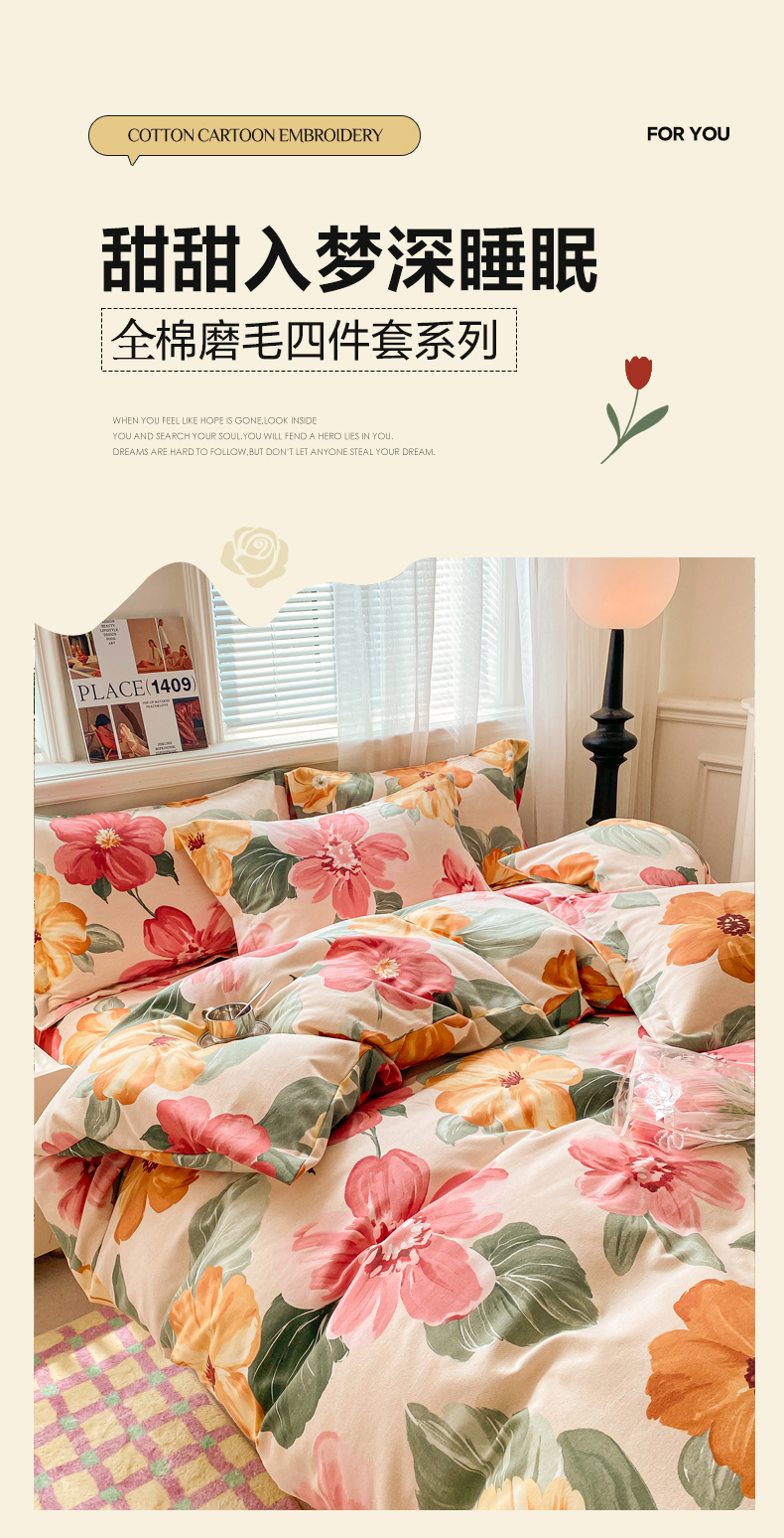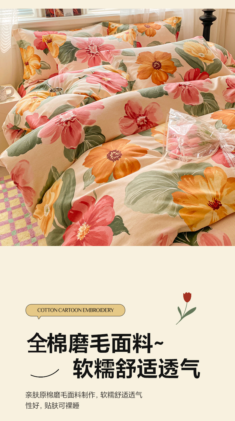 当前位置: 91家纺网 > 商品网购 > 床品套件 > 四件套 > 全棉普通四件套 > 小叮当家纺仓储工厂店 2025新款(买家秀 不断货)A类全棉纯棉磨毛四件套 浪漫花语