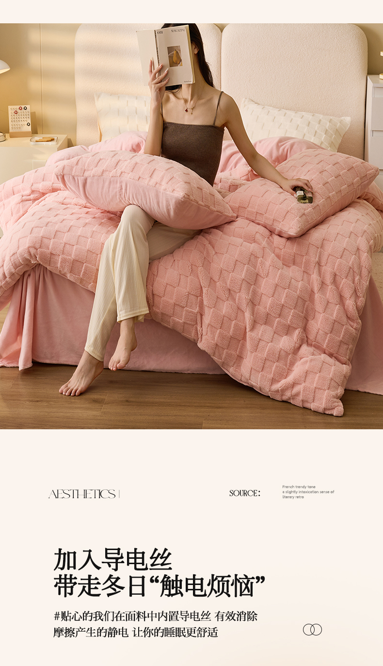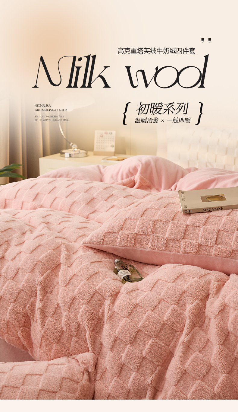 当前位置: 91家纺网 > 商品网购 > 床品套件 > 四件套 > 牛奶绒四件套 > 晨曦家纺 2025新款加厚230克塔芙绒牛奶绒四件套-初暖系列 初暖-童话粉
