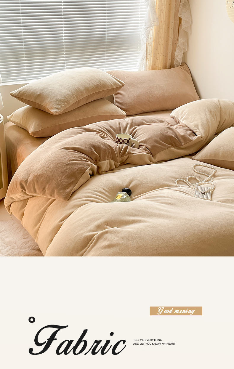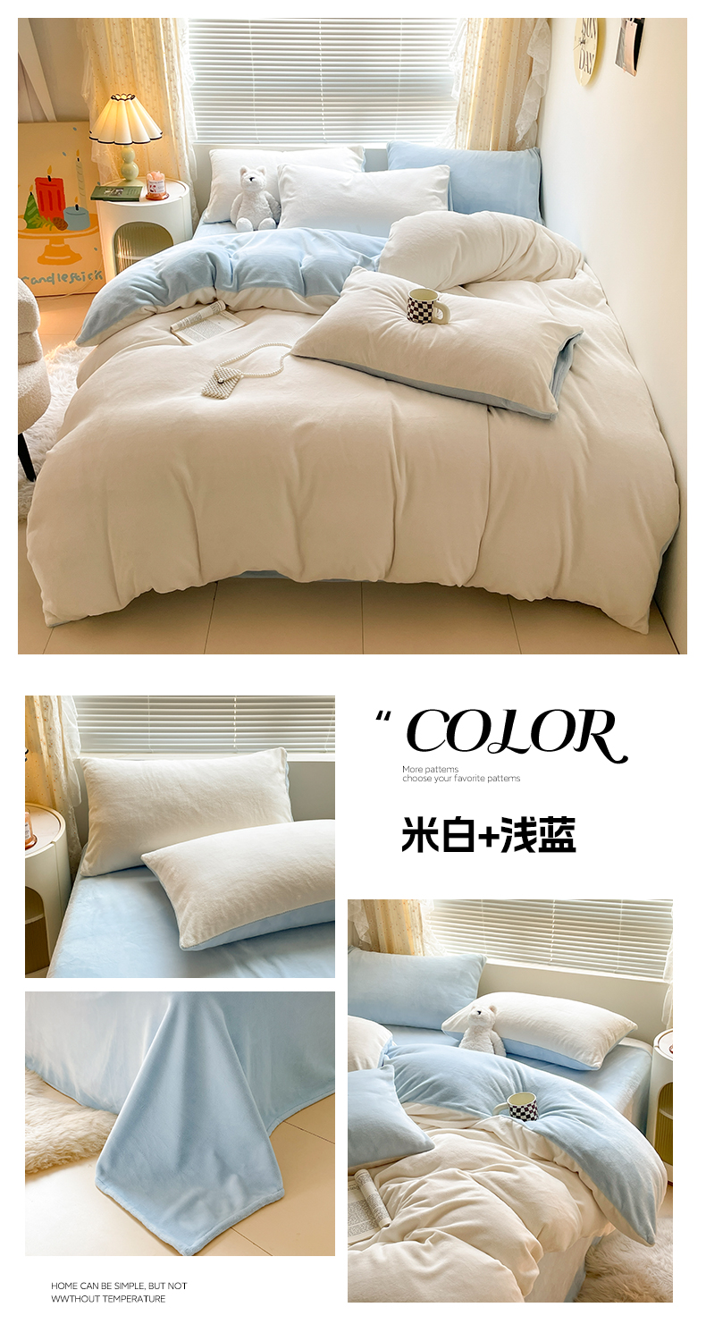 商品名称:小叮当家纺仓储工厂店 2025新款纯色双拼牛奶绒四件套190克 卡尔-米白+米灰