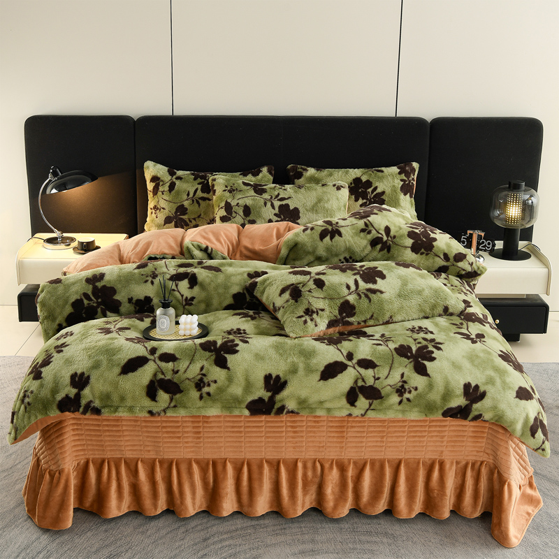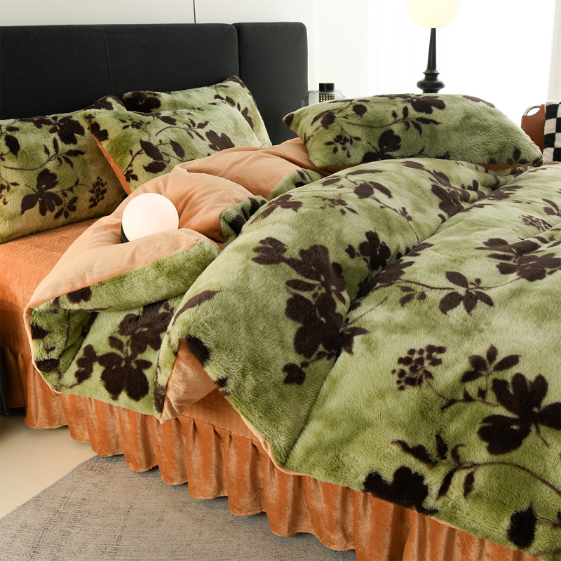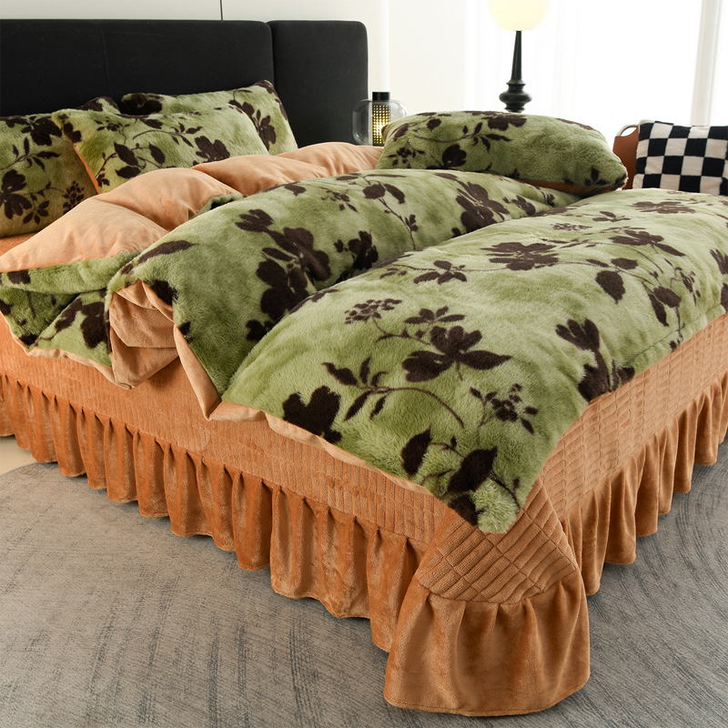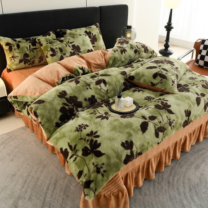 商品名称:德比尔斯 2025新款兔毛绒兔兔绒牛奶绒四件套床盖款 椿野