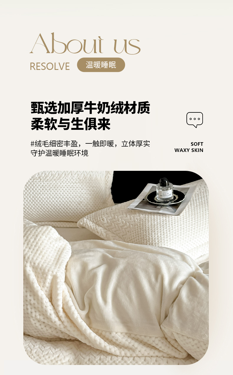 当前位置: 91家纺网 > 商品网购 > 床品套件 > 四件套 > 牛奶绒四件套 > 源舍家纺 2025新款色织拼色编织提花轻奢牛奶绒四件套(场景一) 织锦-白露