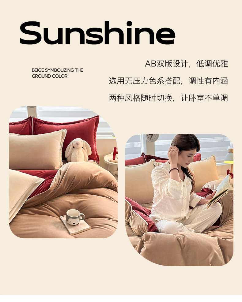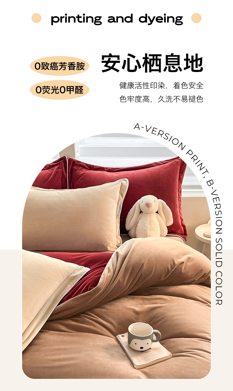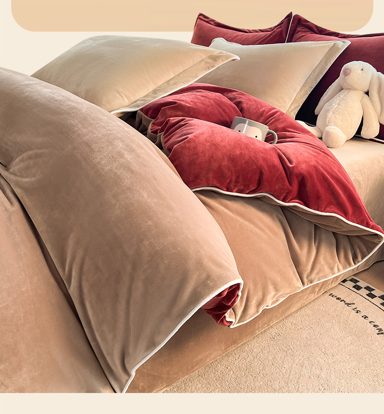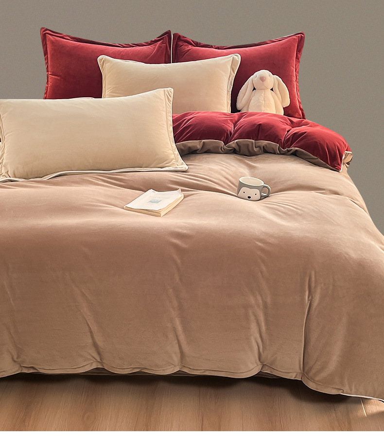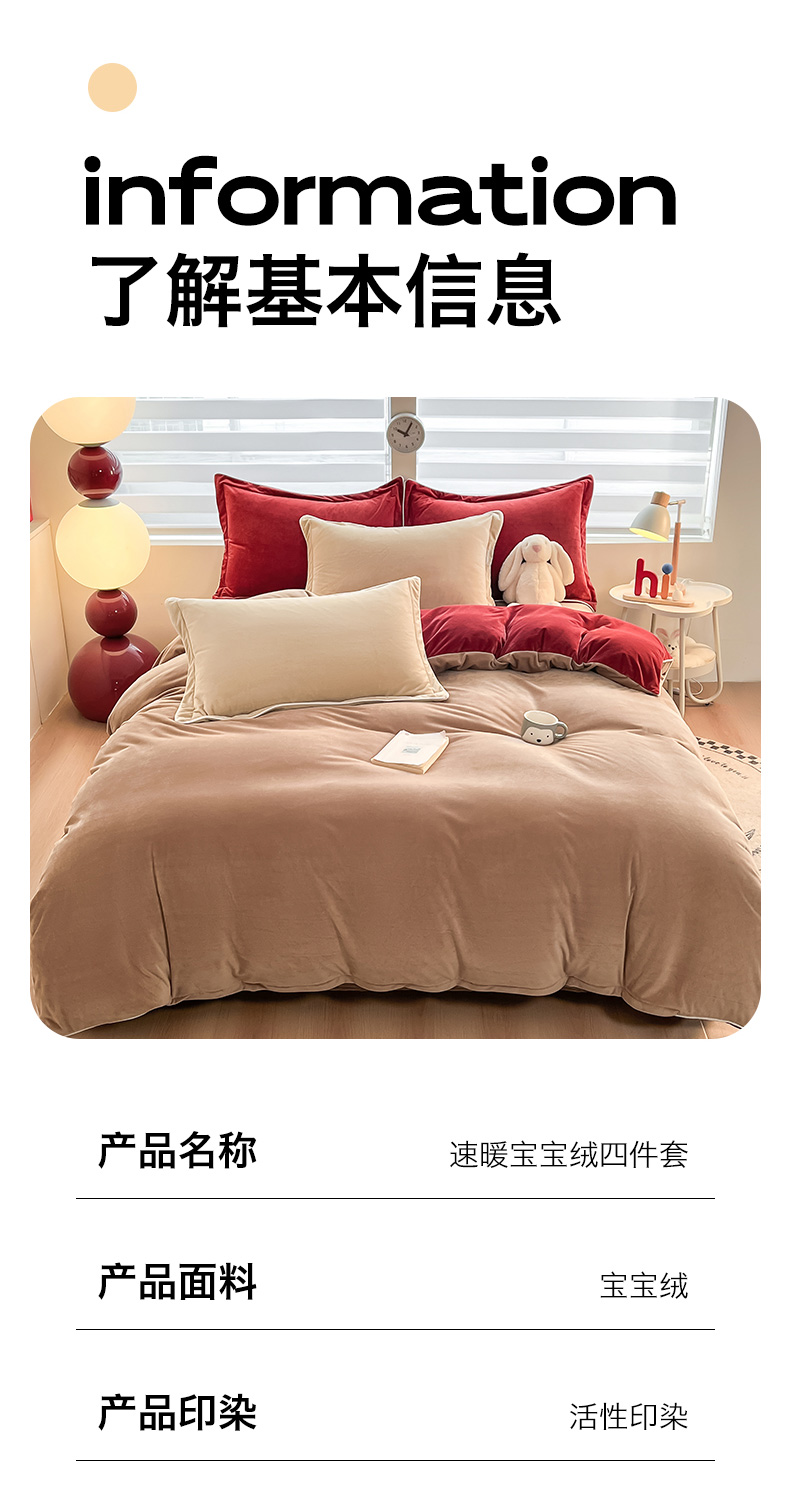当前位置: 91家纺网 > 商品网购 > 床品套件 > 四件套 > 牛奶绒四件套 > 九沐良品 2025新款加厚婴儿绒牛奶绒四件套工艺款宝宝绒四件套 浅驼+晨曦红