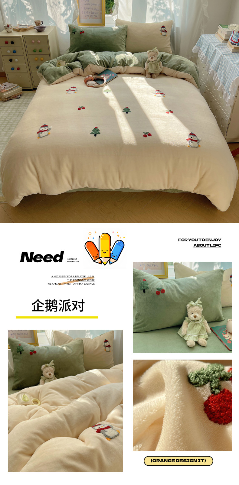 当前位置: 91家纺网 > 商品网购 > 床品套件 > 四件套 > 牛奶绒四件套 > 雨帆家纺 2025新款亲肤舒适可爱卡通牛奶绒毛巾绣四件套 企鹅派对