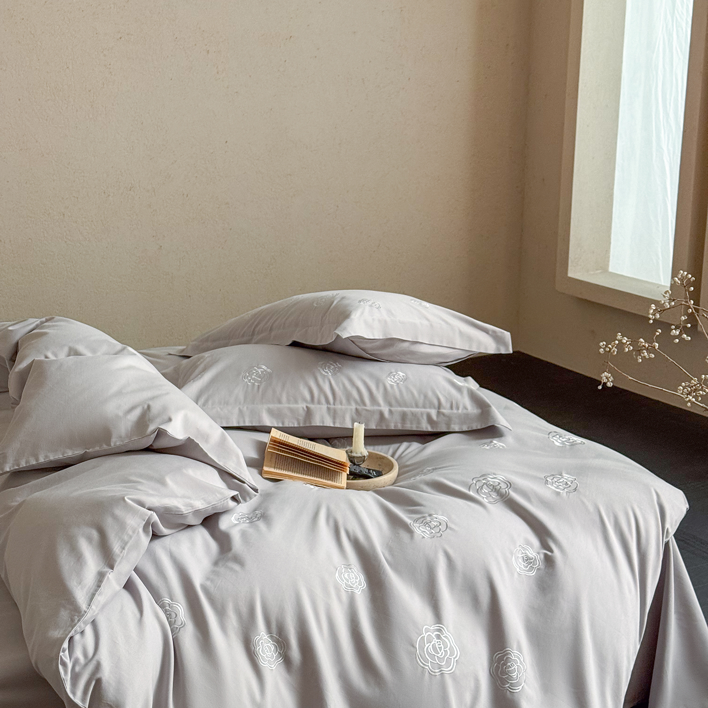 (总)佳汐蓝家纺 2026新款新疆长绒棉全棉纯棉轻奢五线刺绣四件套,初雪白,稻谷米,冷釉灰,汐雾蓝,薰衣紫,釉粉,朱砂红