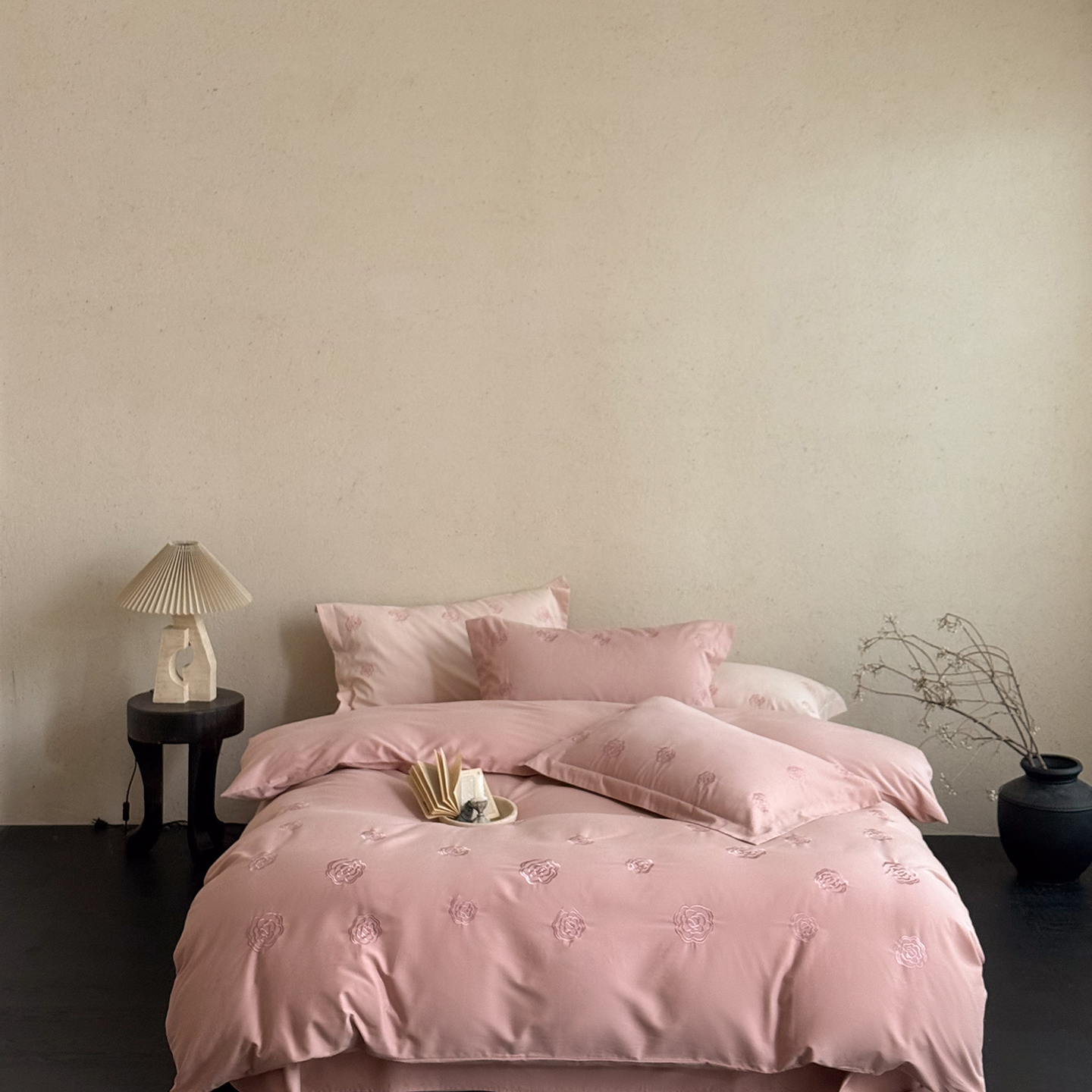 (总)佳汐蓝家纺 2025春夏新款天丝棉蝶舞繁花绣花天丝四件套,蝶舞繁花·粉,蝶舞繁花·蓝