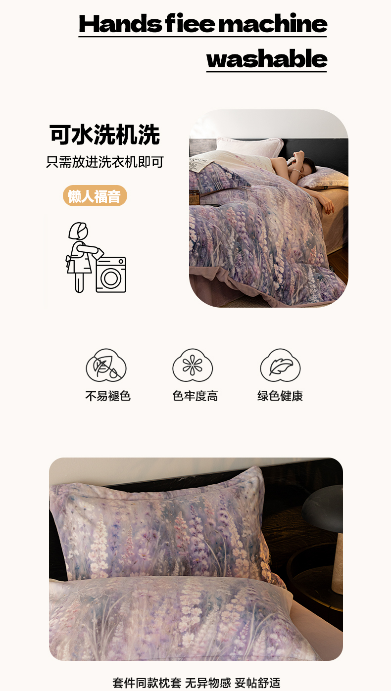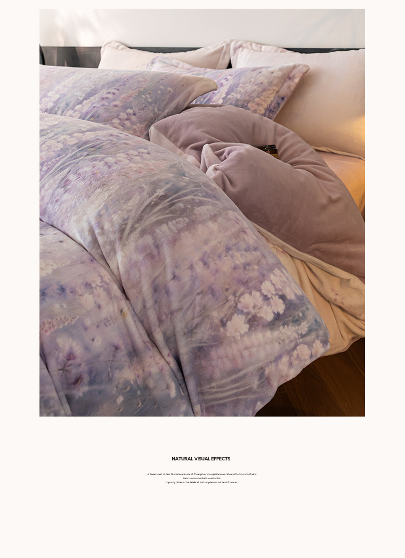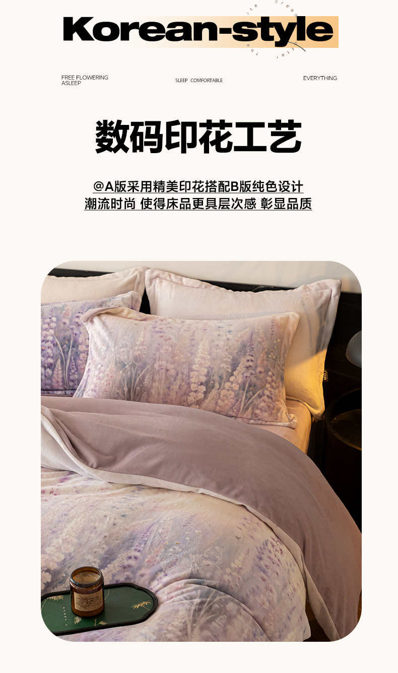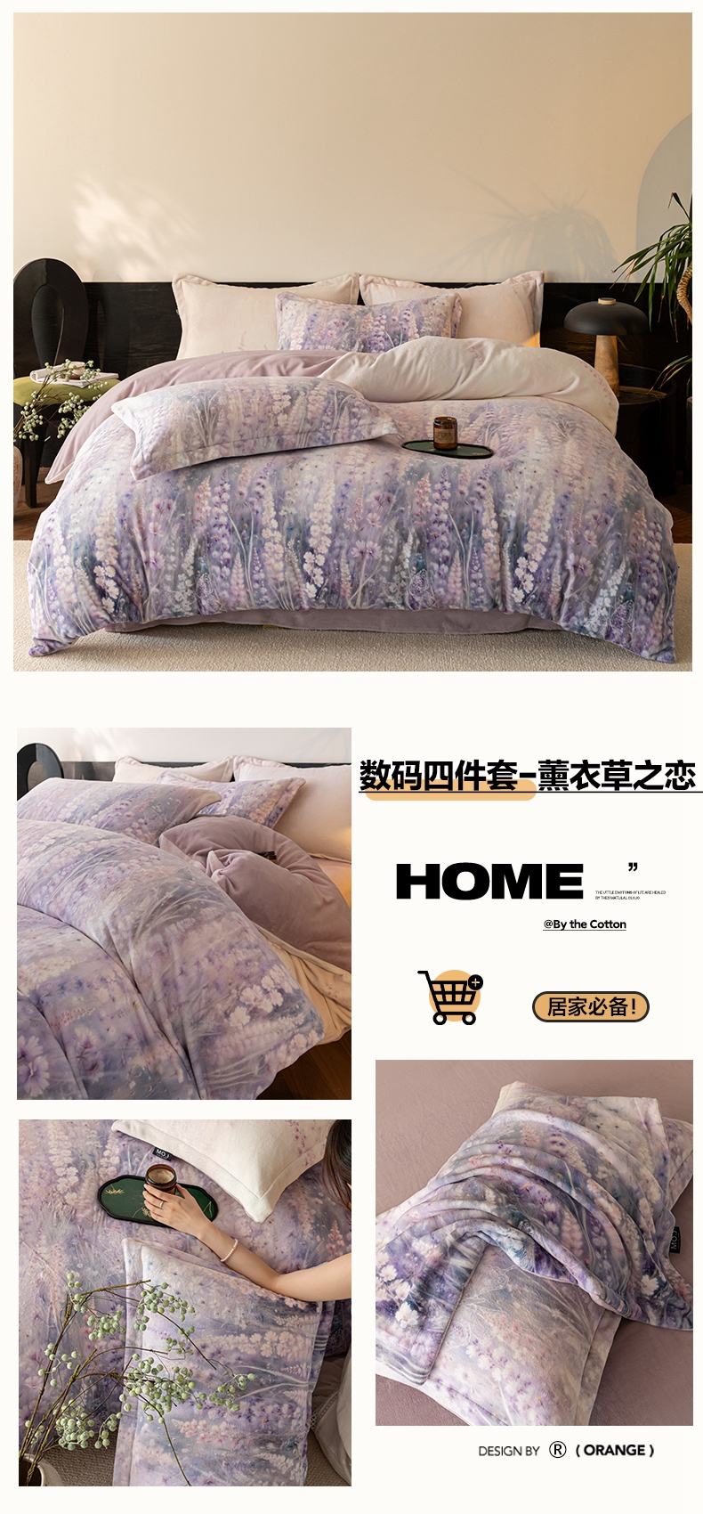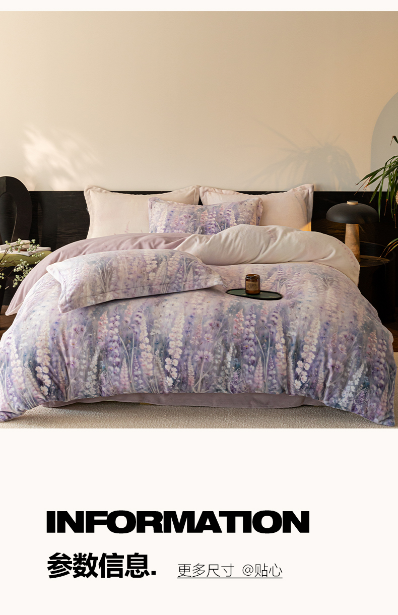 当前位置: 91家纺网 > 商品网购 > 床品套件 > 四件套 > 其它四件套 > 寐绸家纺 2025秋冬新款230g牛奶绒数码印花四件套 数码四件套-薰衣草之恋