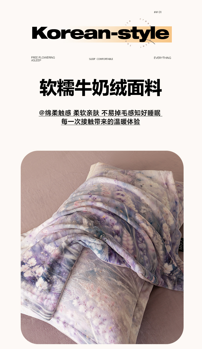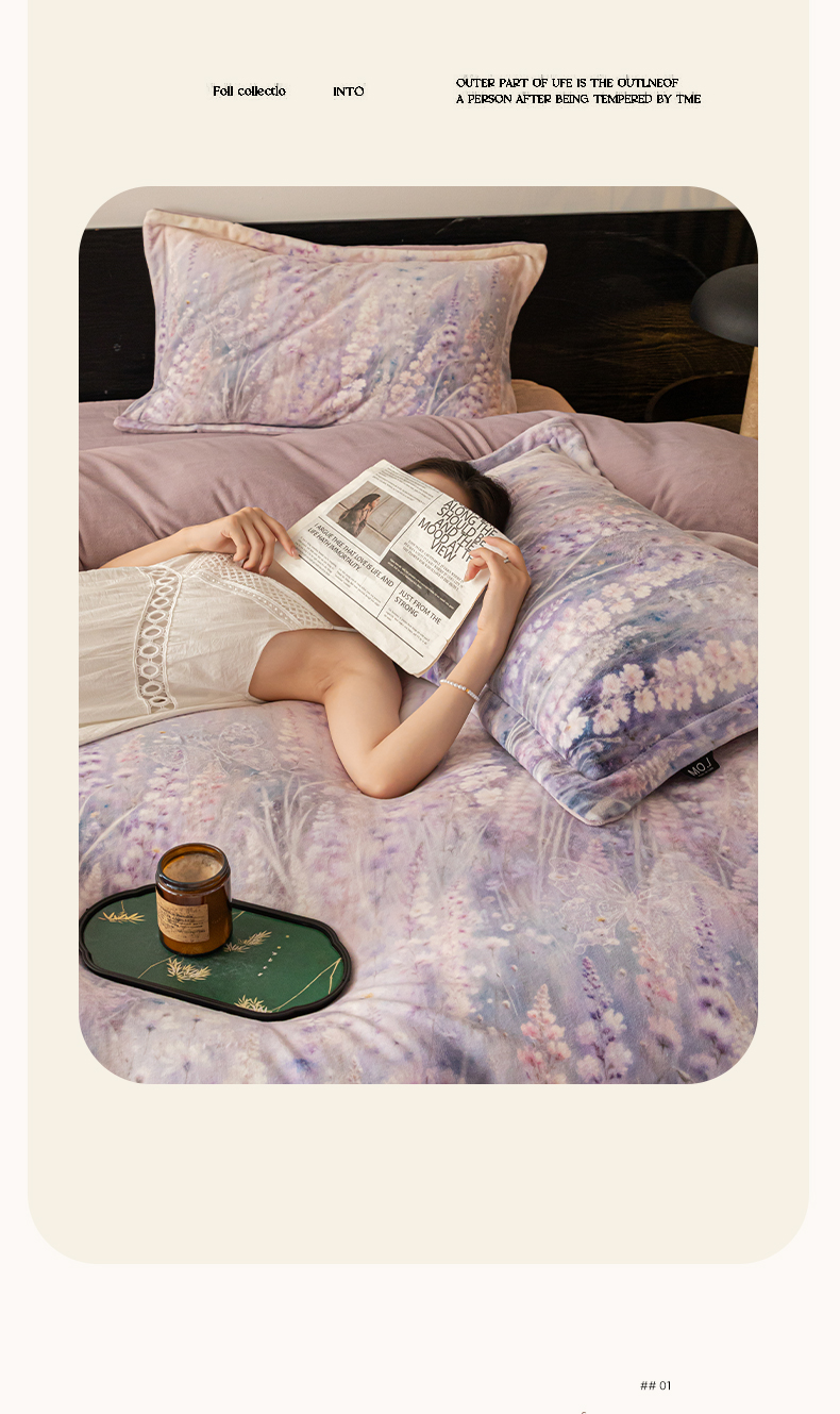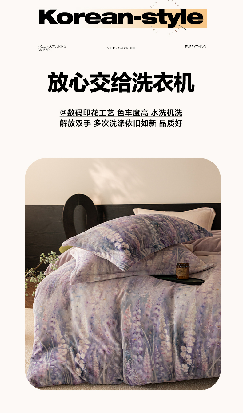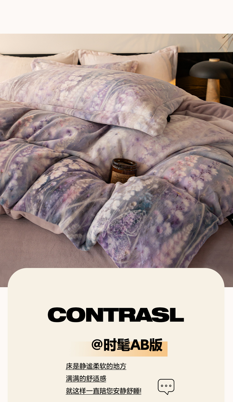 当前位置: 91家纺网 > 商品网购 > 床品套件 > 四件套 > 其它四件套 > 寐绸家纺 2025秋冬新款230g牛奶绒数码印花四件套 数码四件套-薰衣草之恋