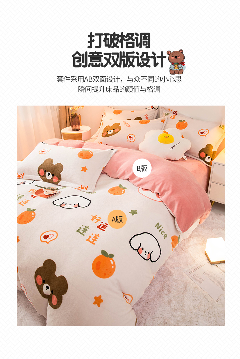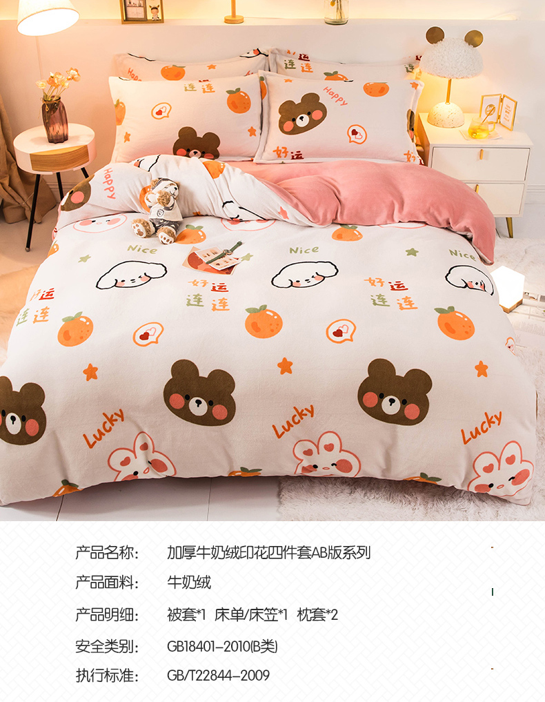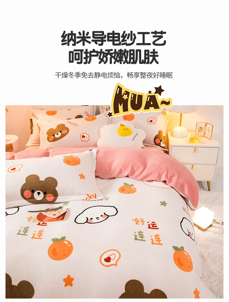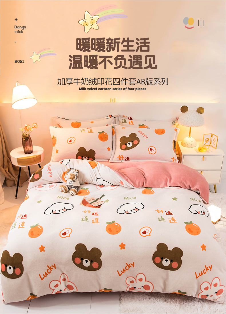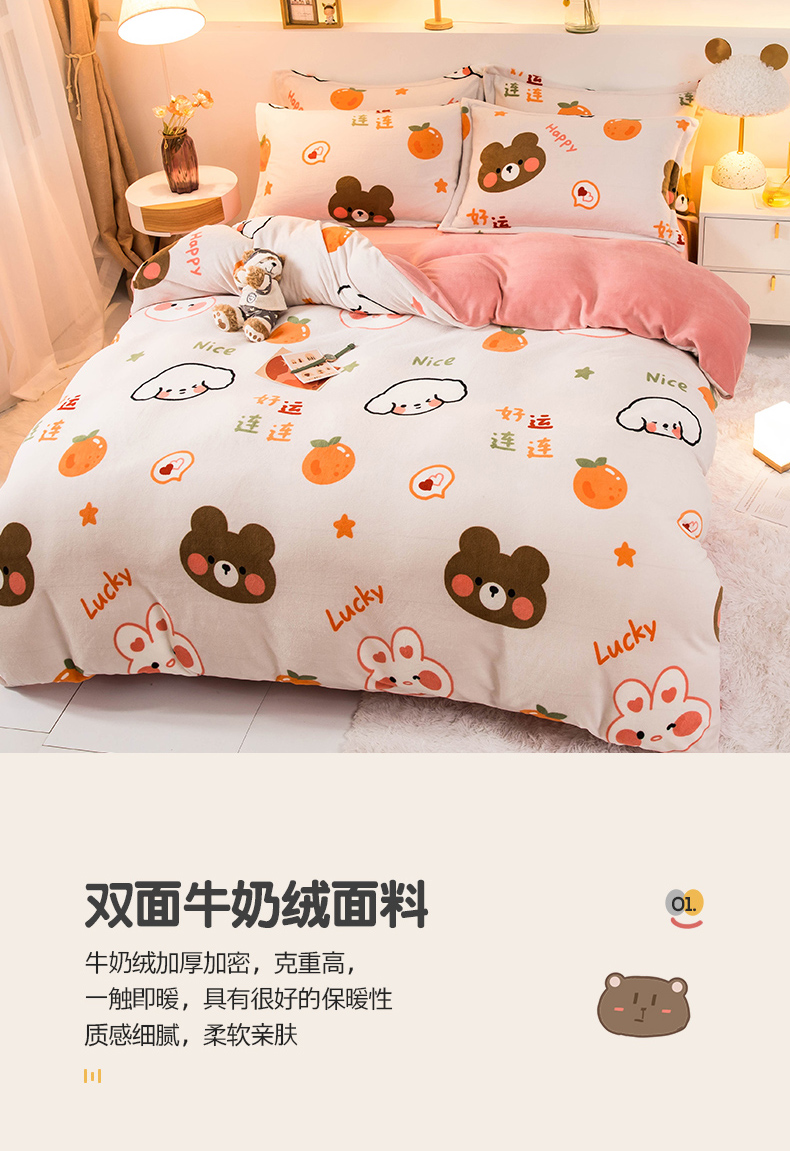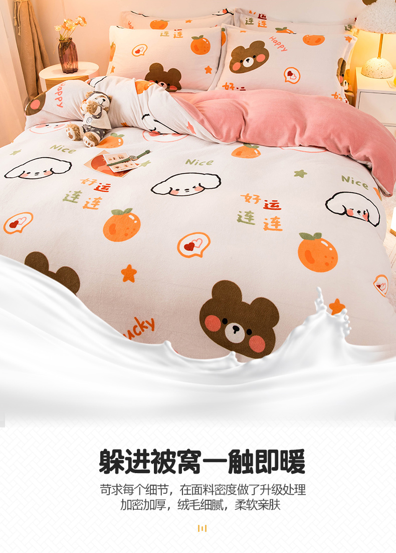 当前位置: 91家纺网 > 商品网购 > 床品套件 > 四件套 > 牛奶绒四件套 > 宅部落 2025新款高克重牛奶绒四件套法莱绒三件套单被套 好运连连