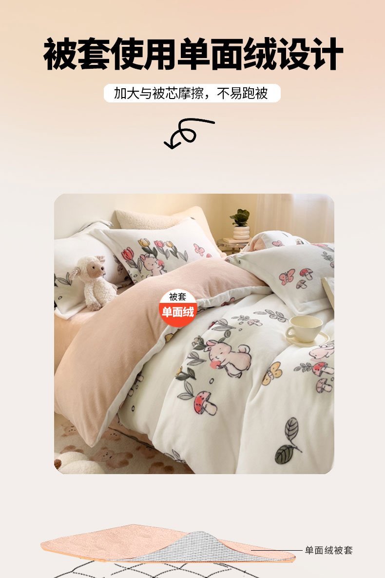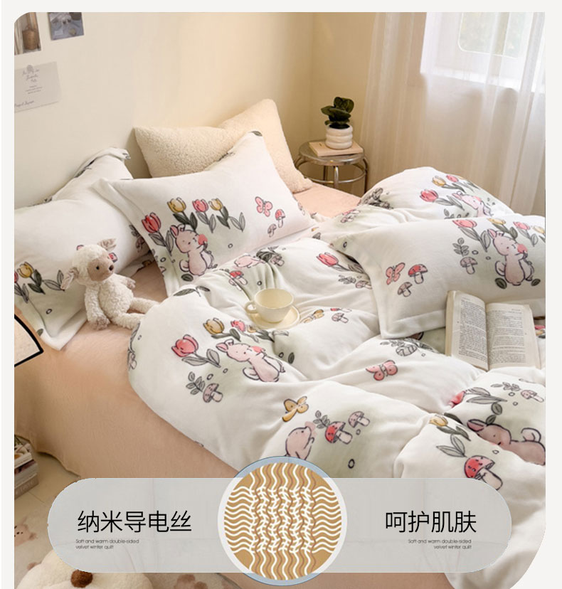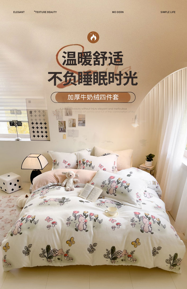 当前位置: 91家纺网 > 商品网购 > 床品套件 > 四件套 > 牛奶绒四件套 > 宅部落 2025新款高克重牛奶绒四件套法莱绒三件套单被套 花丛小兔