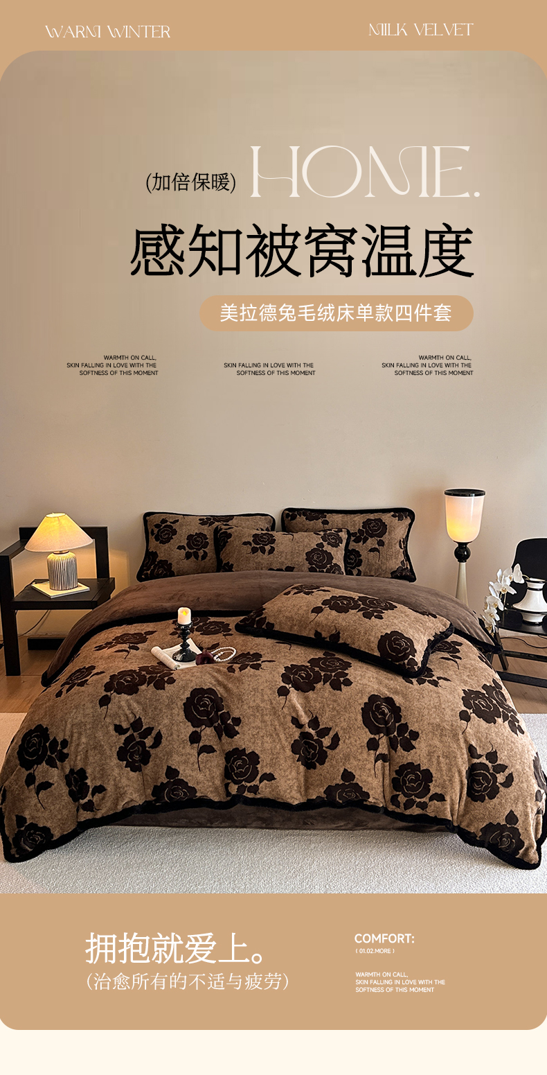 当前位置: 91家纺网 > 商品网购 > 床品套件 > 四件套 > 兔毛绒四件套 > 梵克保罗 2025秋冬新款加厚8斤包边款美拉德仿兔毛皮草牛奶绒四件套 美拉德包边款-爱意玫瑰