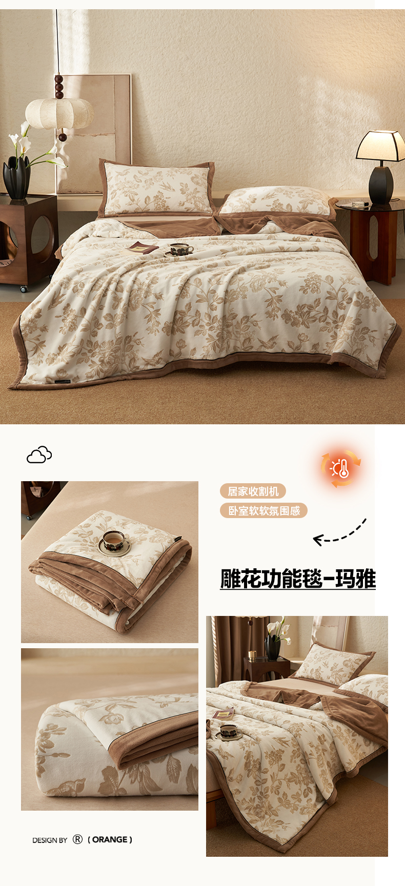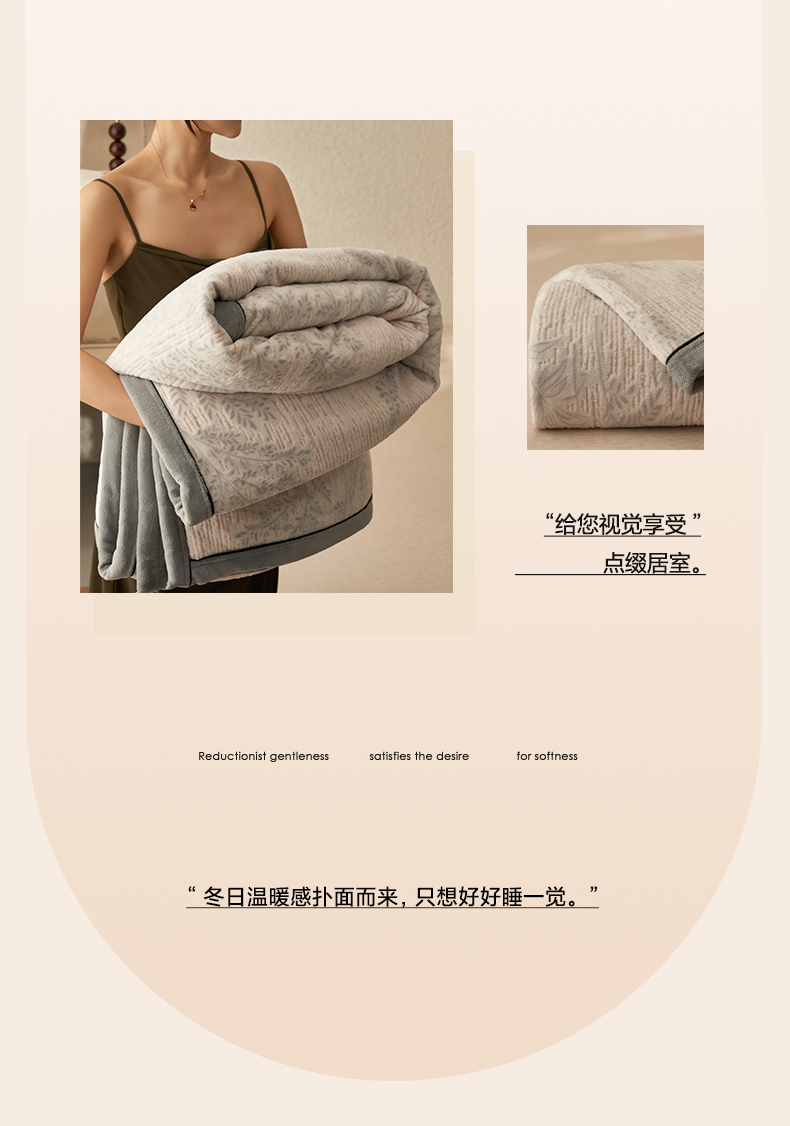 当前位置: 91家纺网 > 商品网购 > 毛毯休闲毯绒毯 > 毛毯 > 寐绸家纺 2025新款230g牛奶绒染色雕花功能毛毯 雕花功能毯-曲线肌理