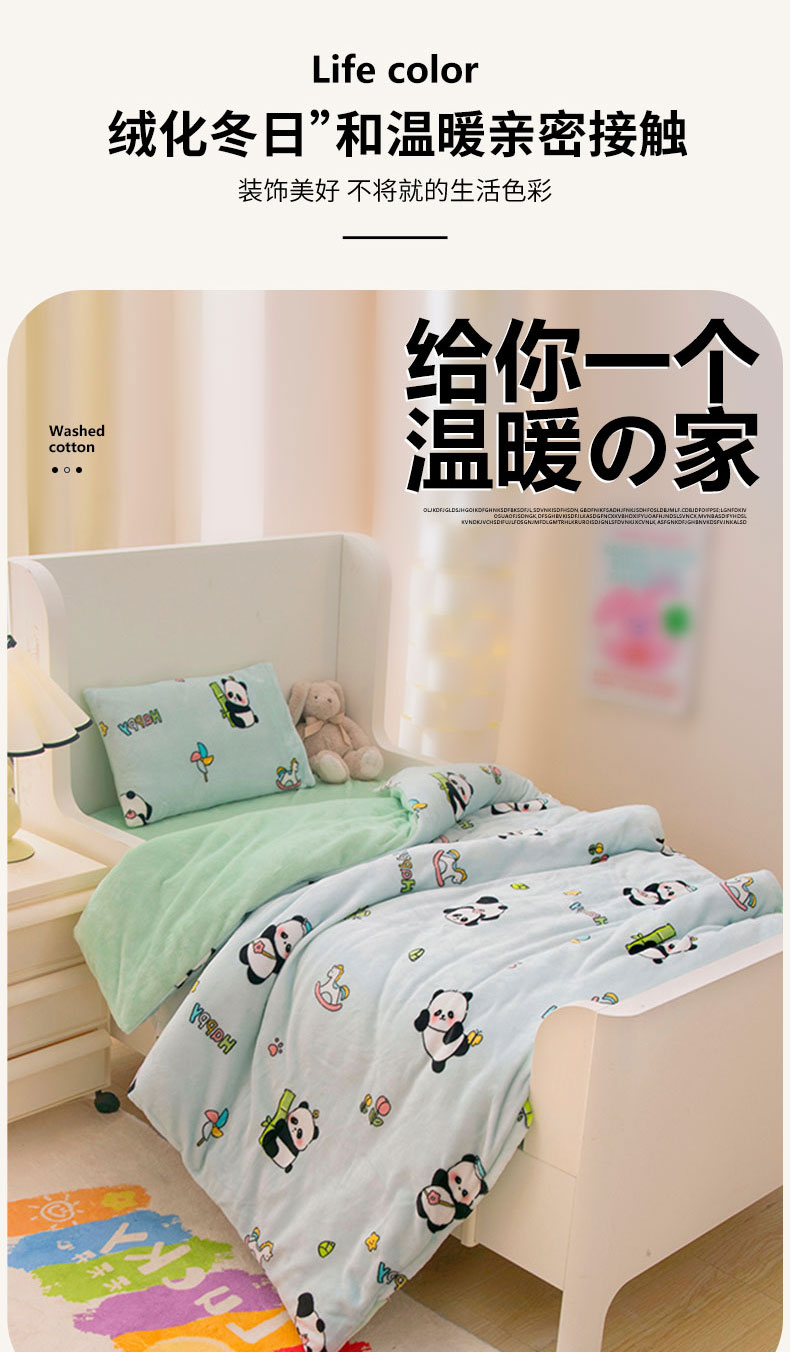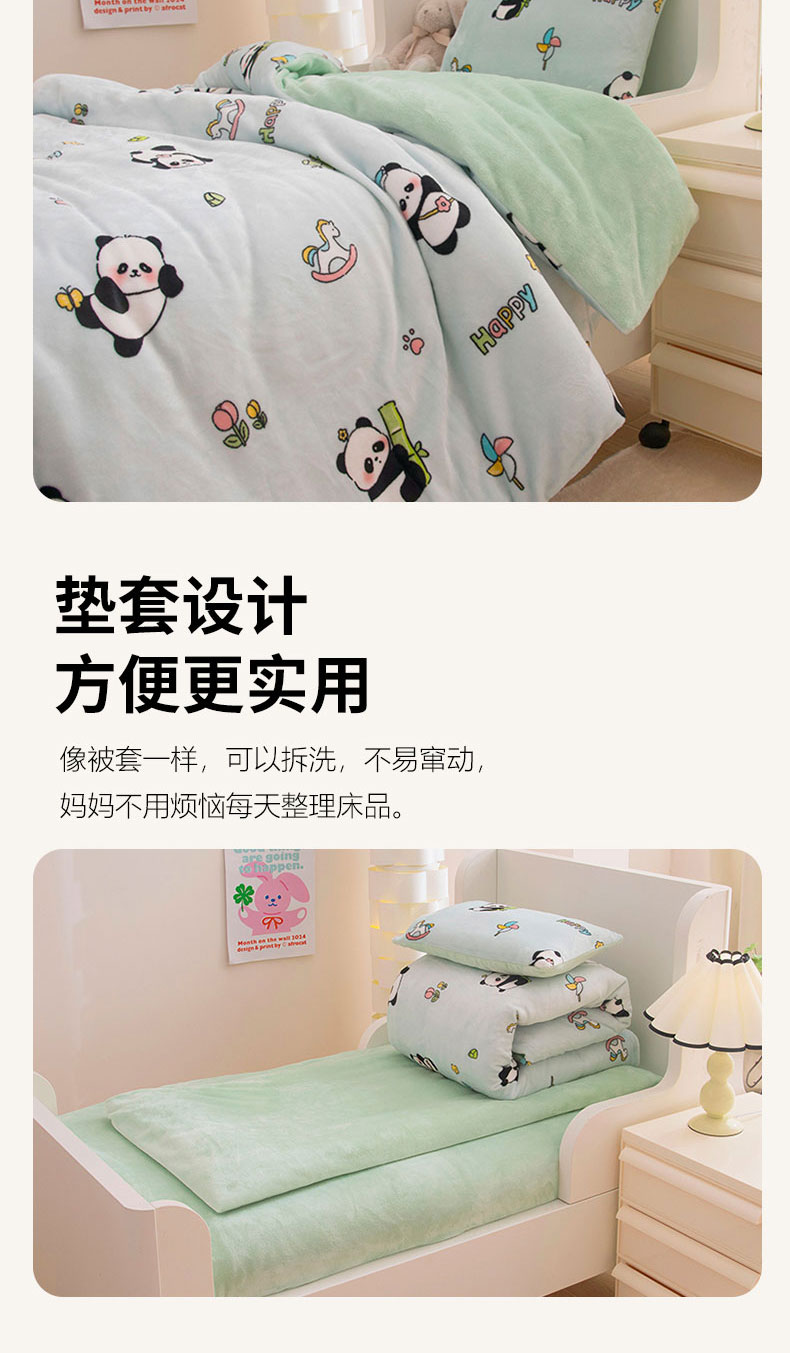 当前位置: 91家纺网 > 商品网购 > 床品套件 > 三件套 > 萌宝家纺 2025新款加厚儿童牛奶绒被套幼儿园保暖三件套 调皮熊猫