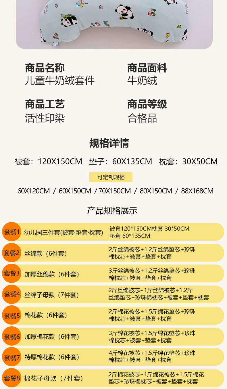 牛奶绒三件套(被套+垫套60x135cm+枕套) | ¥45.00 |