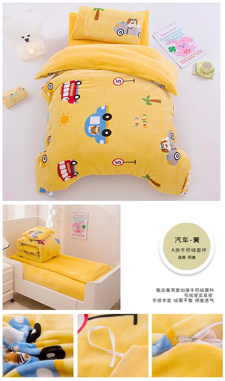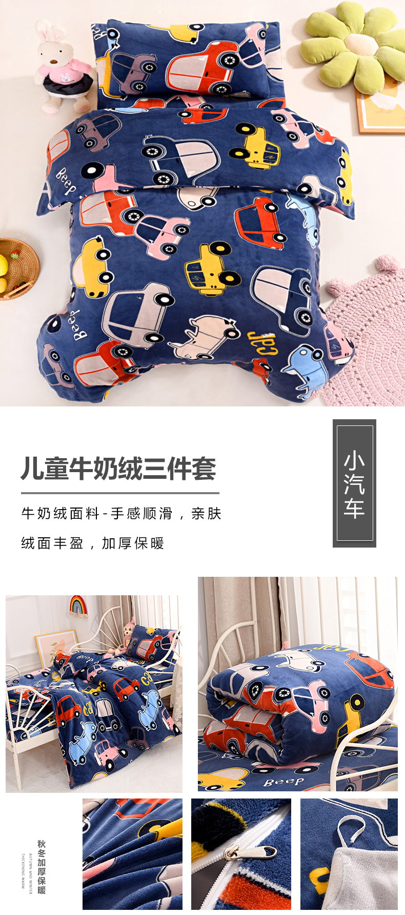 当前位置: 91家纺网 > 商品网购 > 床品套件 > 三件套 > 萌宝家纺 2025新款加厚儿童牛奶绒被套幼儿园保暖三件套 汽车-蓝灰