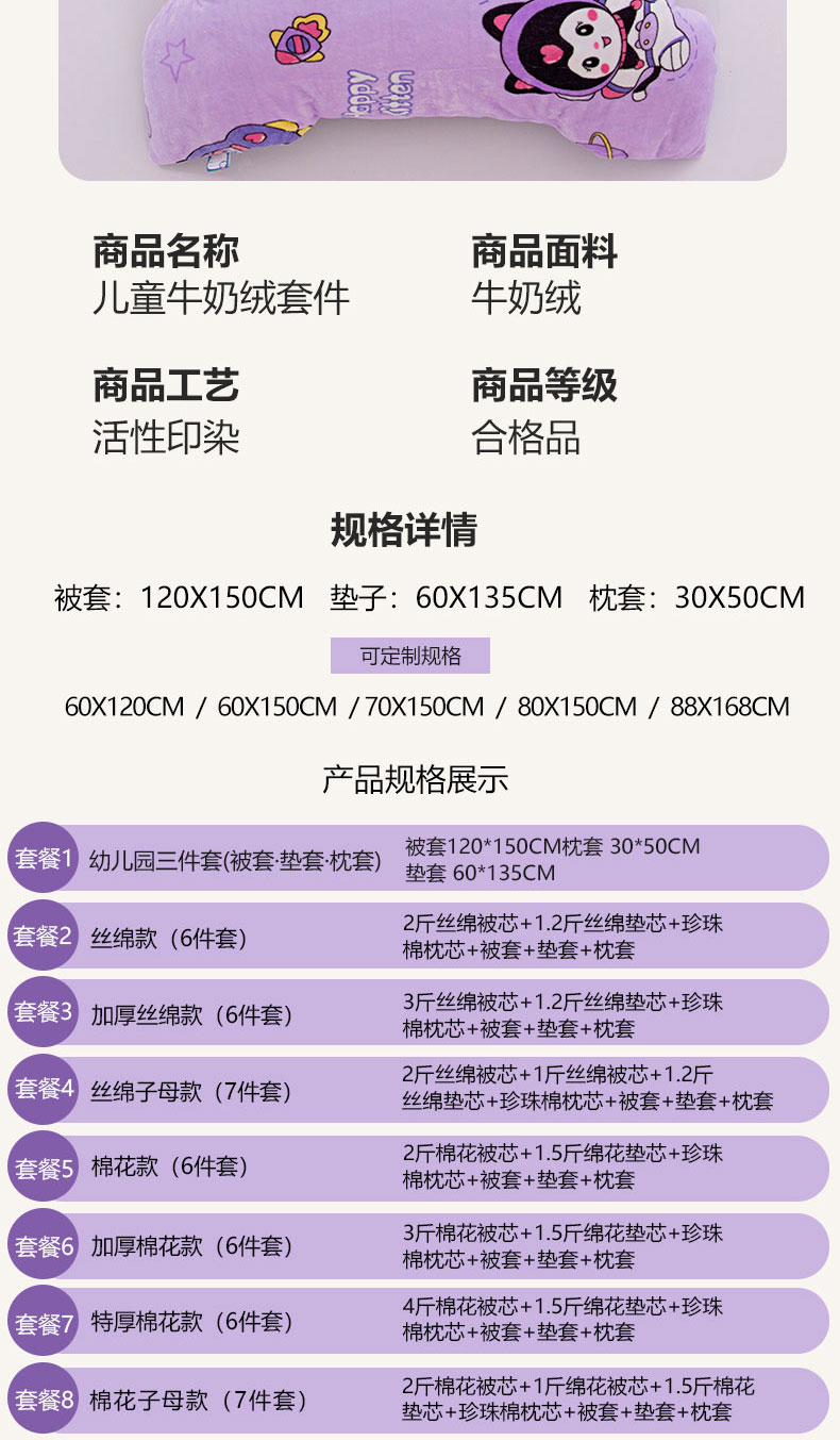 牛奶绒三件套(被套+垫套60x135cm+枕套) | ¥45.00 |