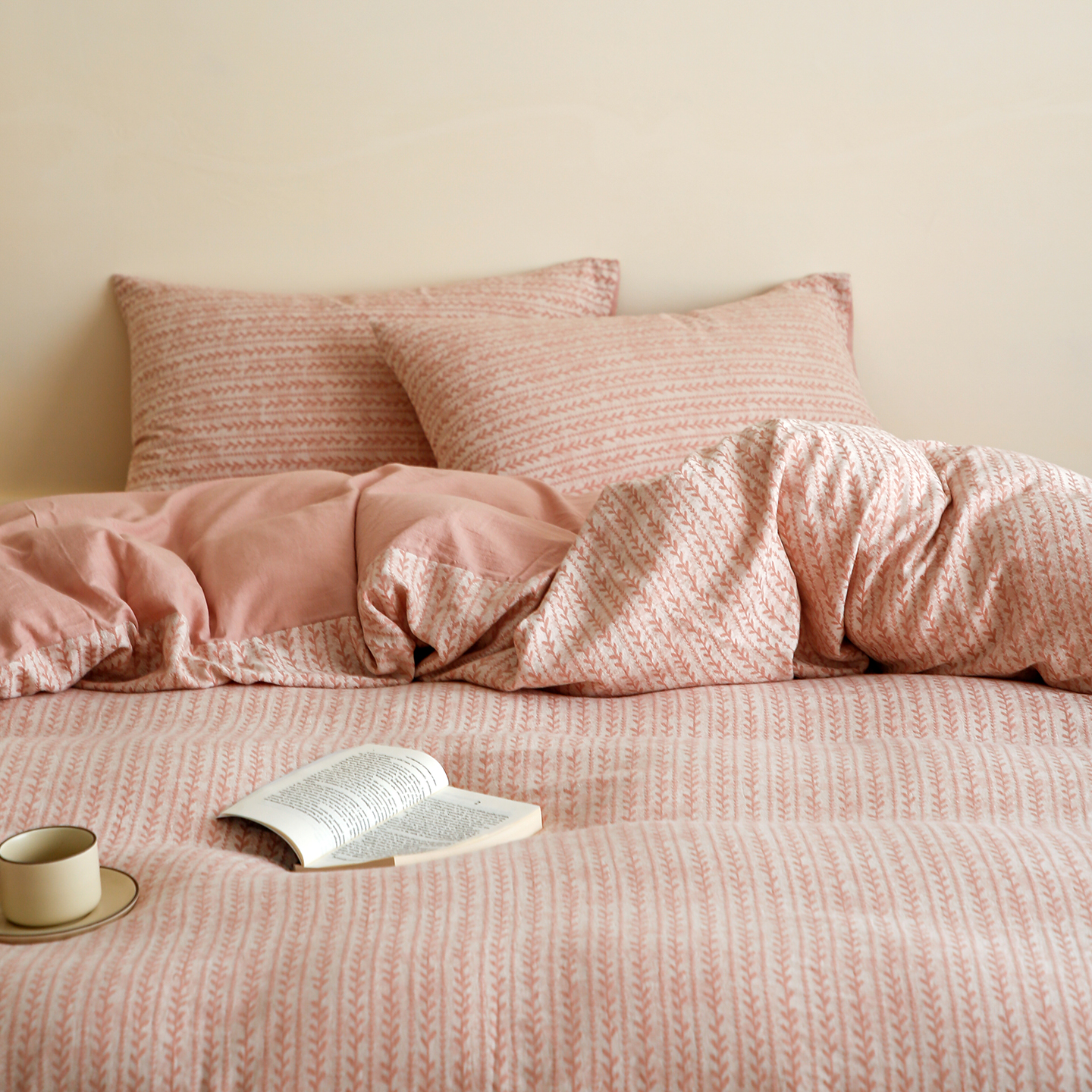 沐白家居 2025新款色织全棉提花四件套 安迪-奶油粉
