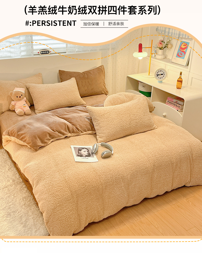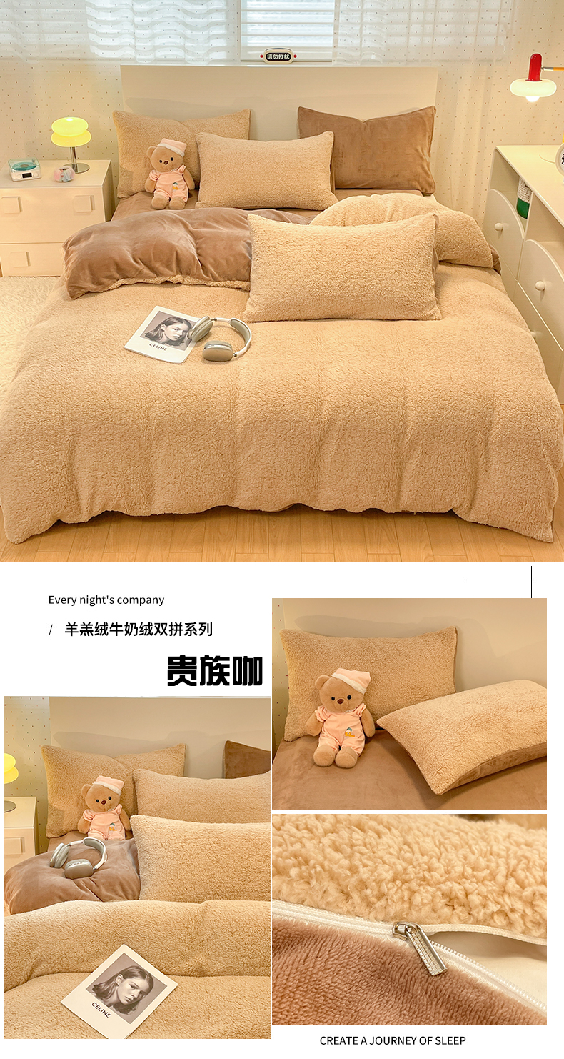 当前位置: 91家纺网 > 商品网购 > 床品套件 > 四件套 > 牛奶绒四件套 > 逸尚阁 2025新款羊羔绒牛奶绒双拼四件套 贵族咖