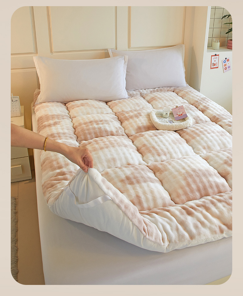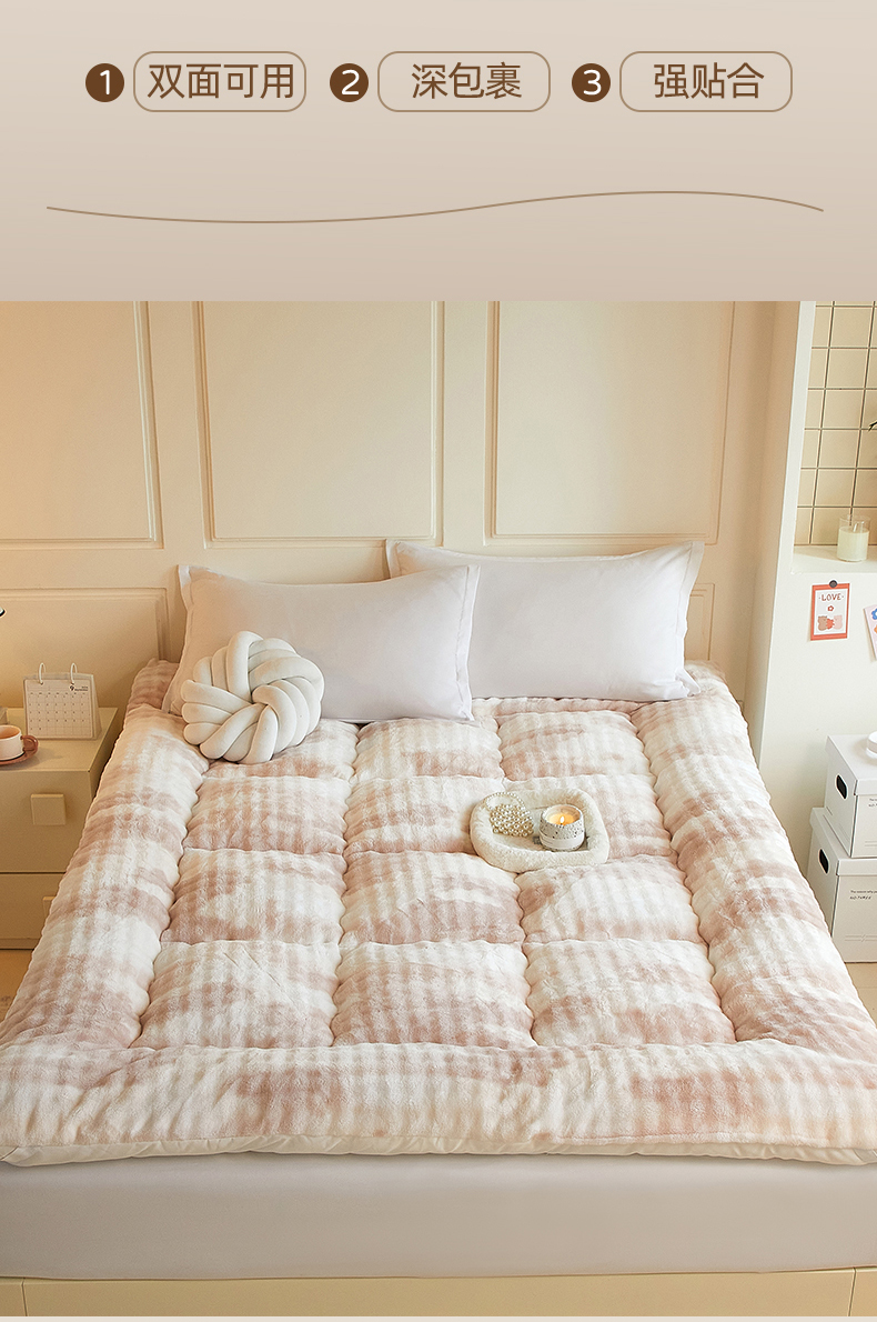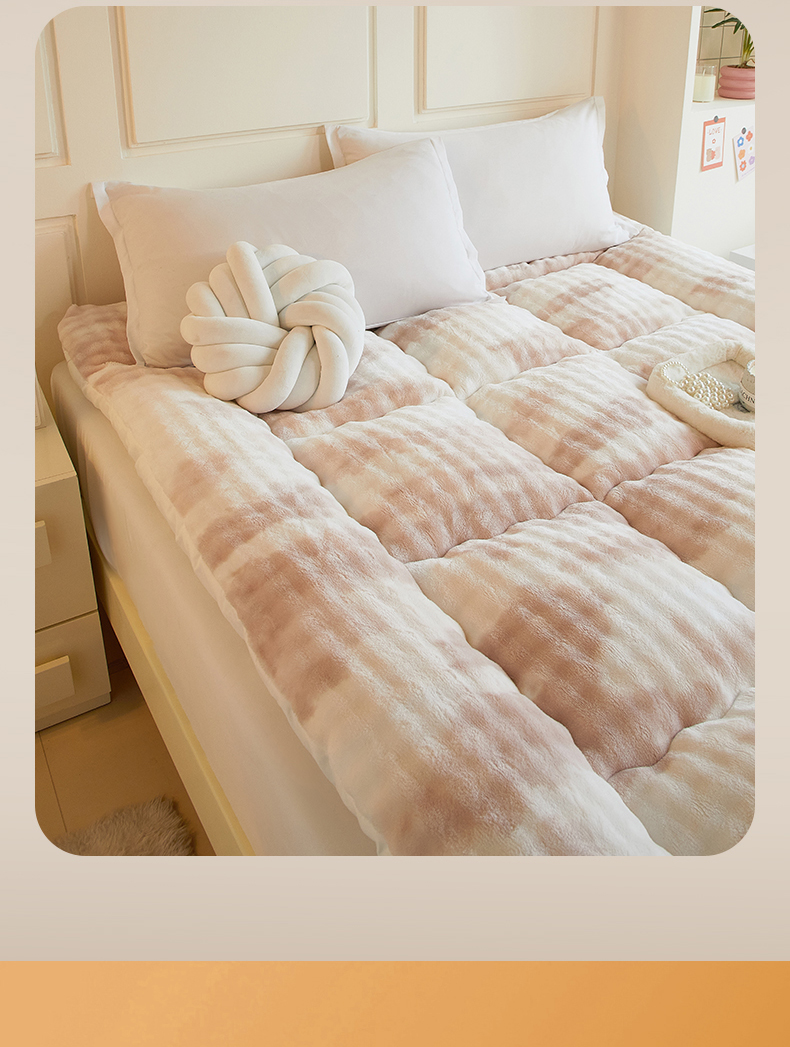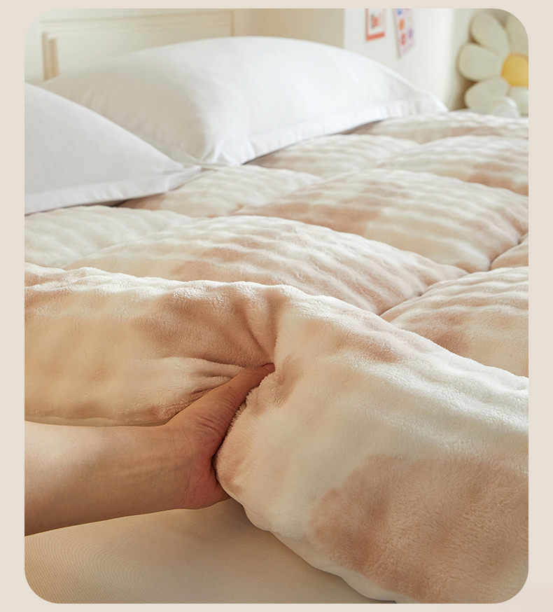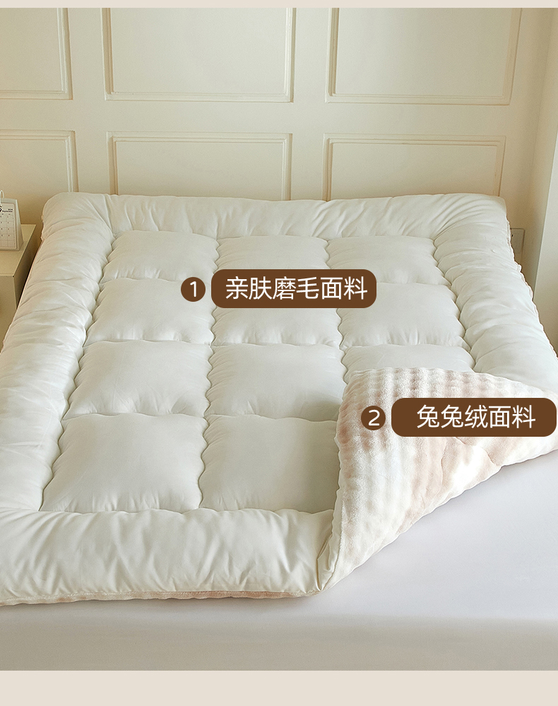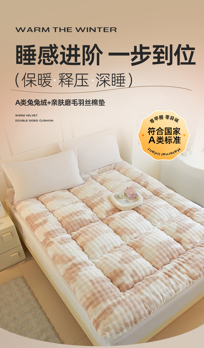 商品名称:柒尚 2025新款A类兔兔绒亲肤磨毛羽丝棉垫 梦幻-奶咖色