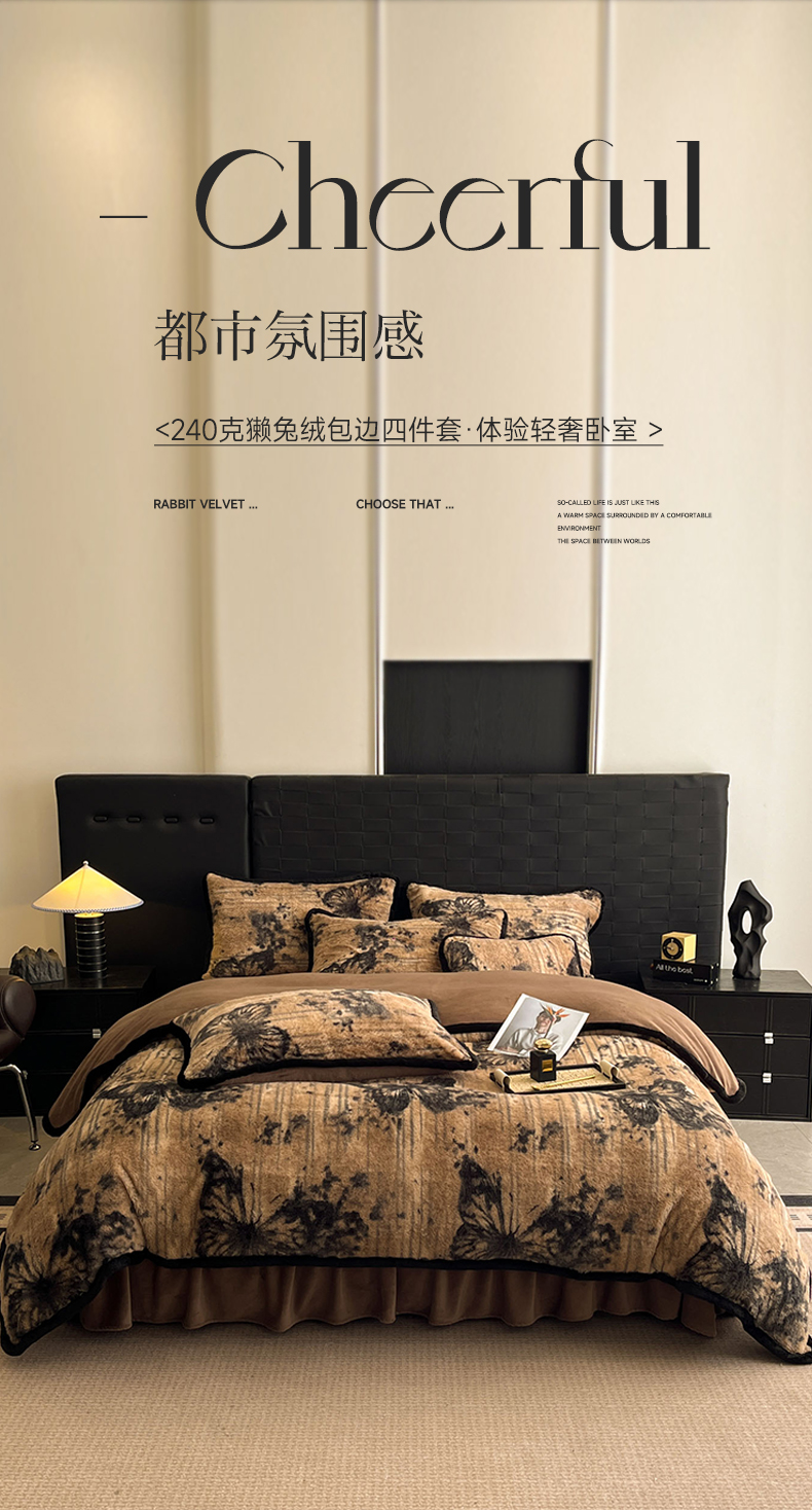 当前位置: 91家纺网 > 商品网购 > 床品套件 > 四件套 > 兔毛绒四件套 > 大元 2025新款亲肤舒适兔绒包边美拉德系兔绒四件套 黑影蝶梦