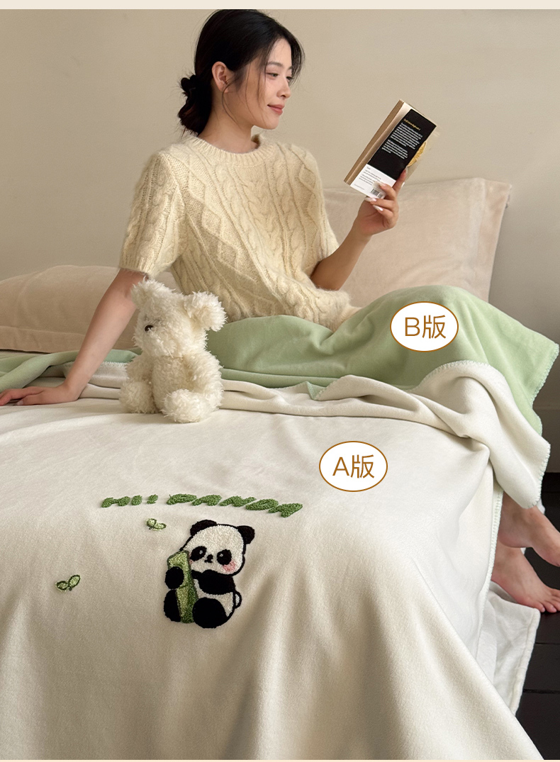 (总)云栖家居 2025新品双层加厚高克重消光沙发毯仿羊绒纯色刺绣盖毛毯毯子
