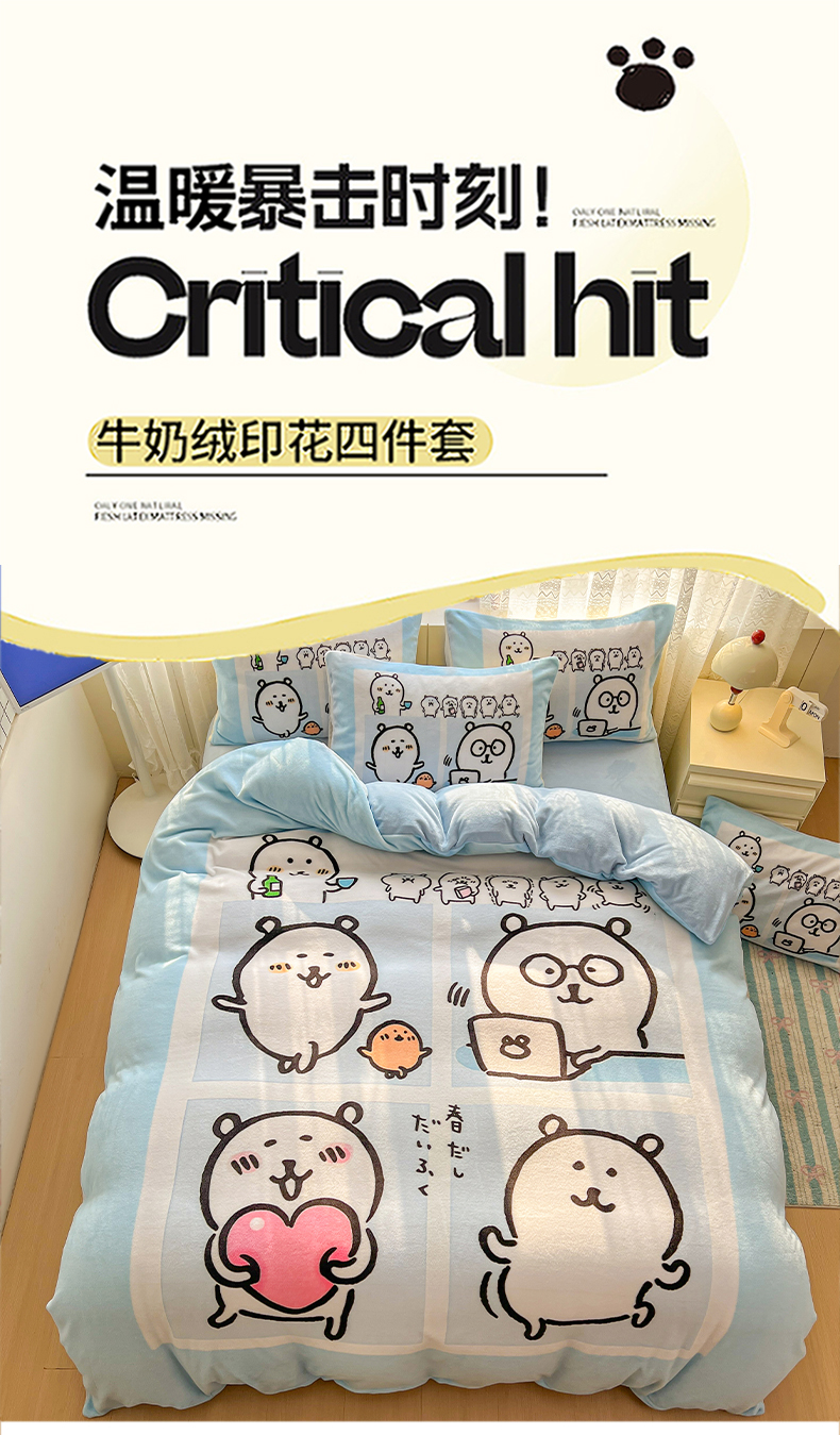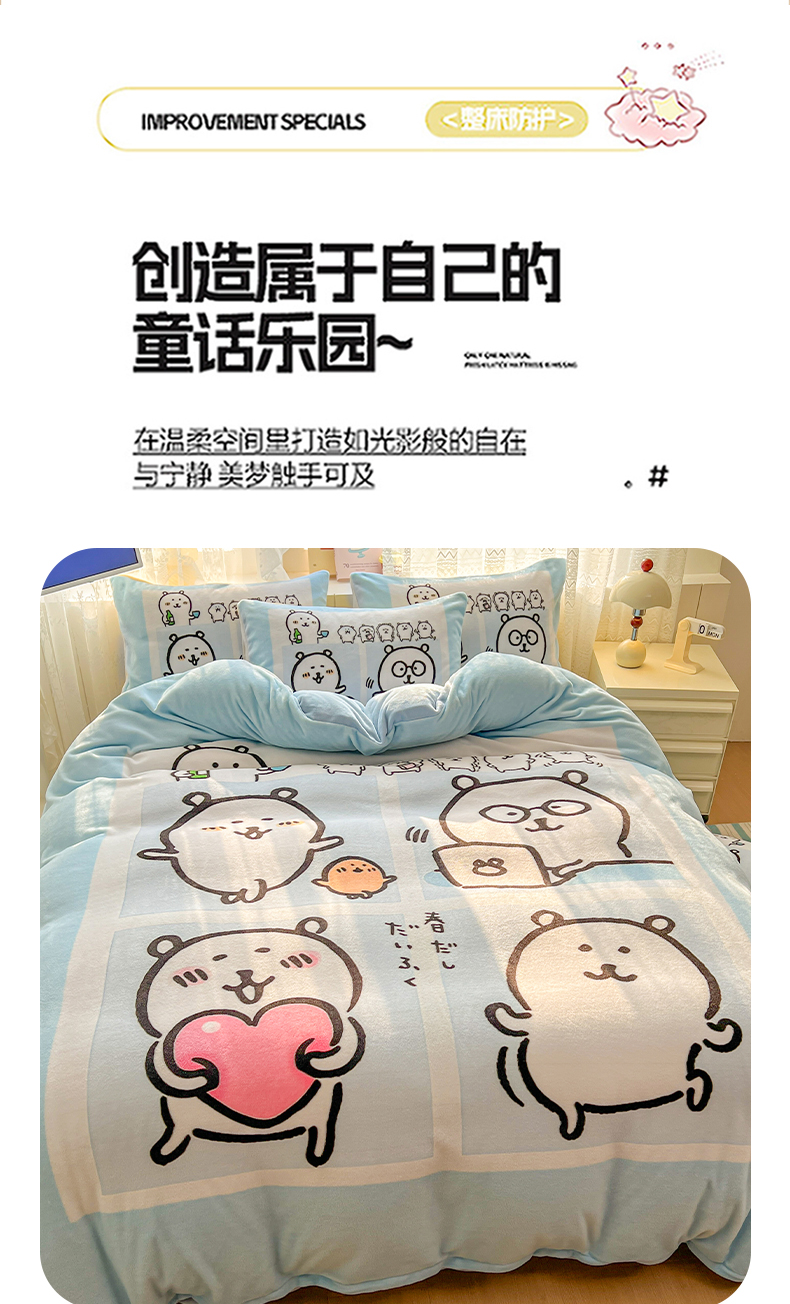 当前位置: 91家纺网 > 商品网购 > 床品套件 > 四件套 > 牛奶绒四件套 > 浩诚 2025新款高克重牛奶绒大版卡通四件套 自嗨熊