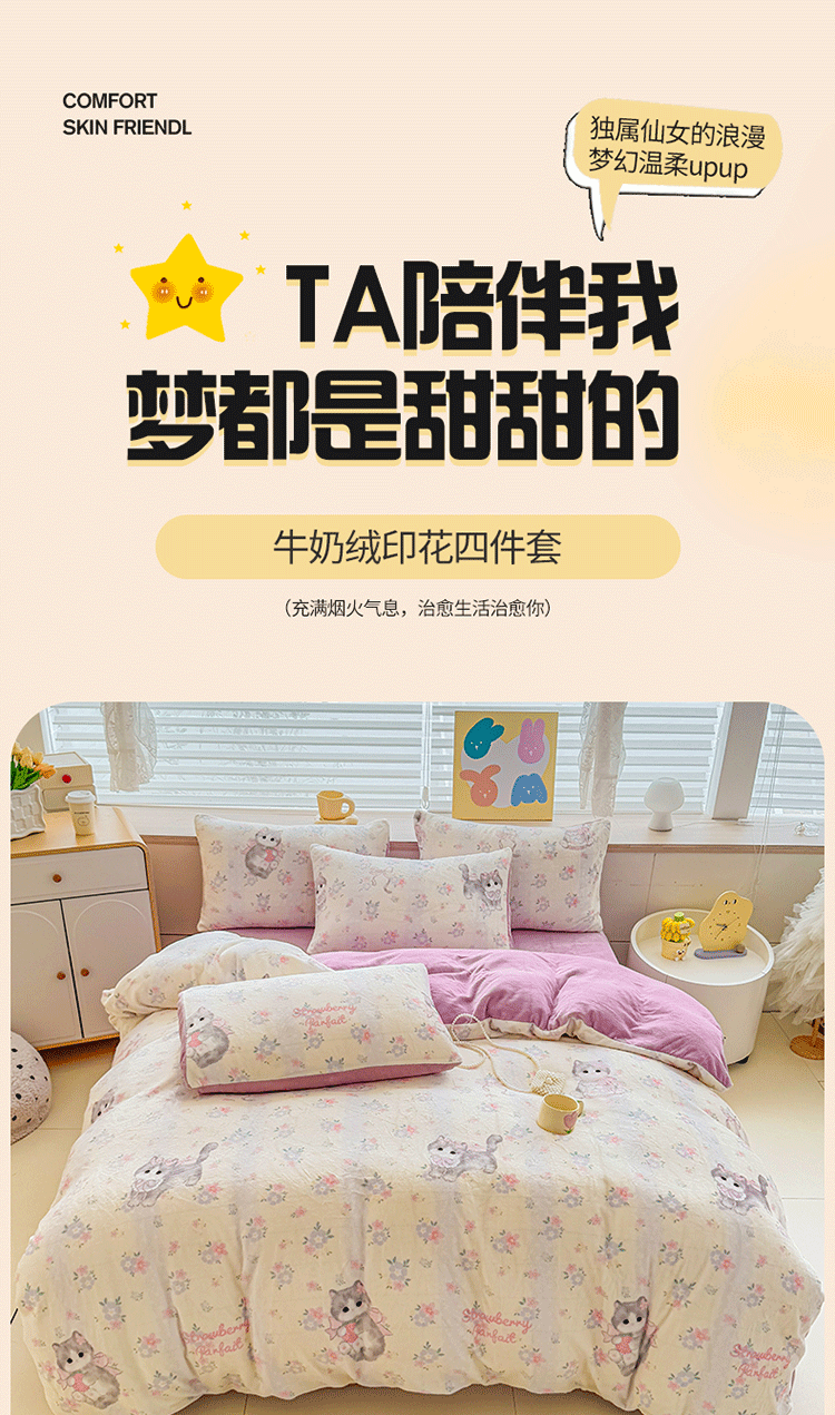 当前位置: 91家纺网 > 商品网购 > 床品套件 > 四件套 > 牛奶绒四件套 > 梦舒阳家纺 2025牛奶绒四件套牛奶绒单被套牛奶绒床笠款四件套小清新可爱套件 炫影蝴蝶