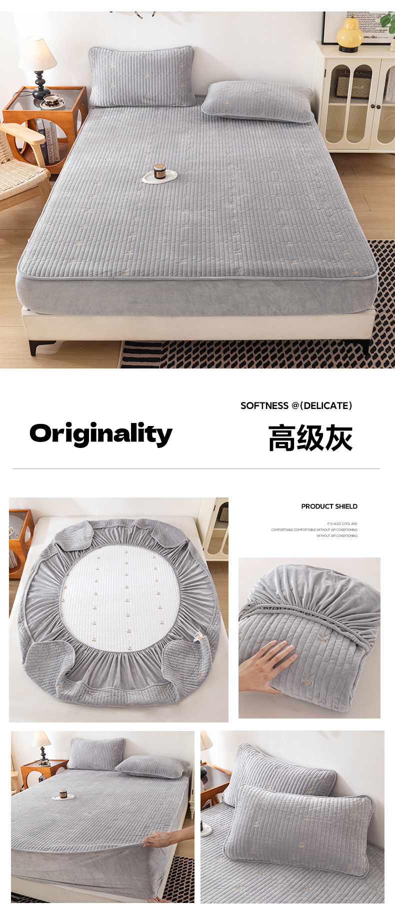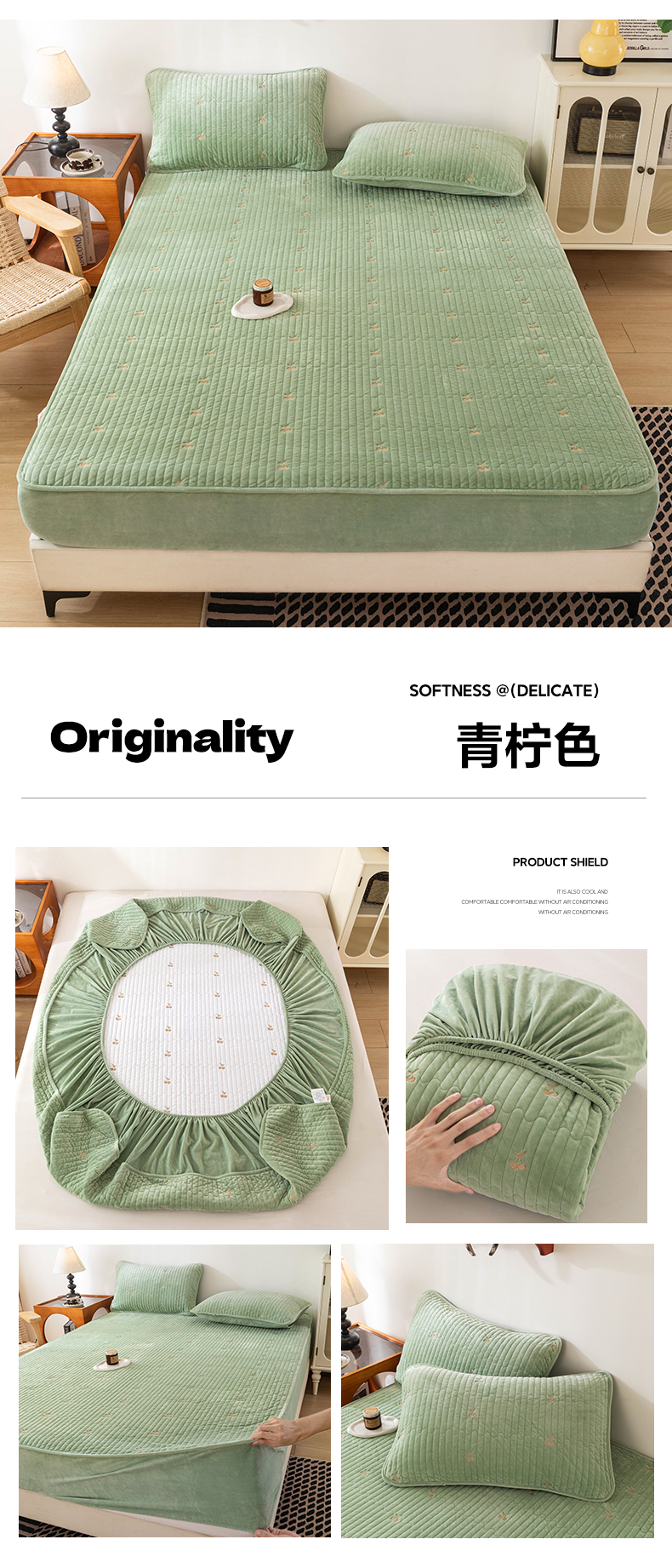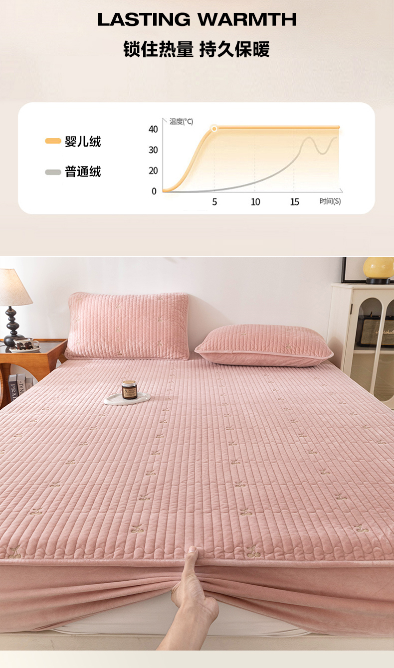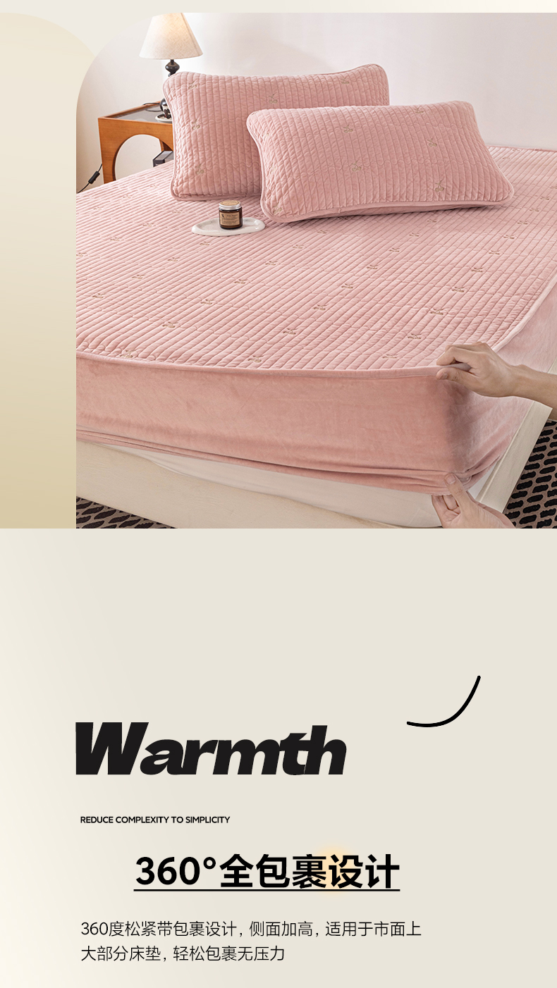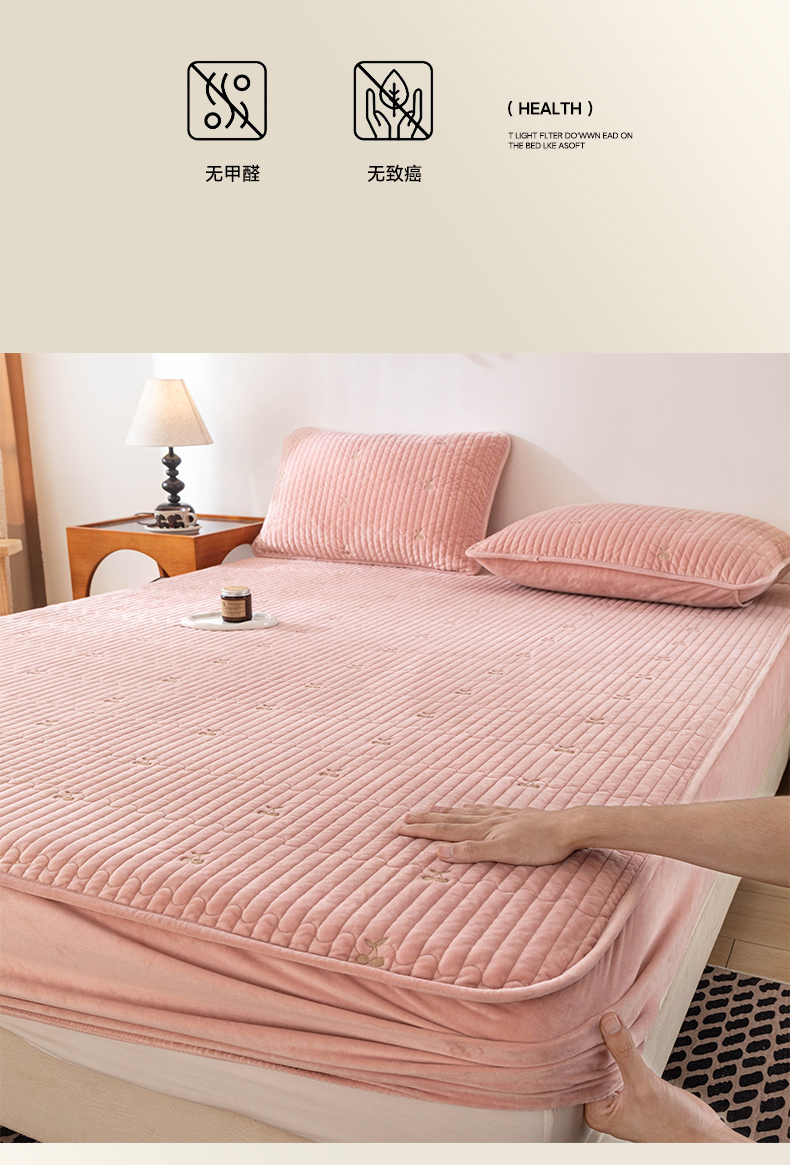 佳笠家居 2025新款婴儿绒宝宝绒樱桃刺绣夹棉床笠 藕粉色