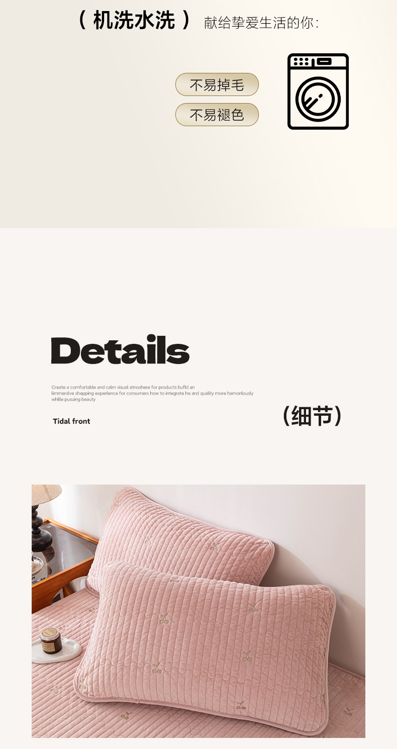 • 91家纺网 家纺一手货源 找家纺 佳笠家居 2025新款婴儿绒宝宝绒樱桃刺绣夹棉床笠 藕粉色