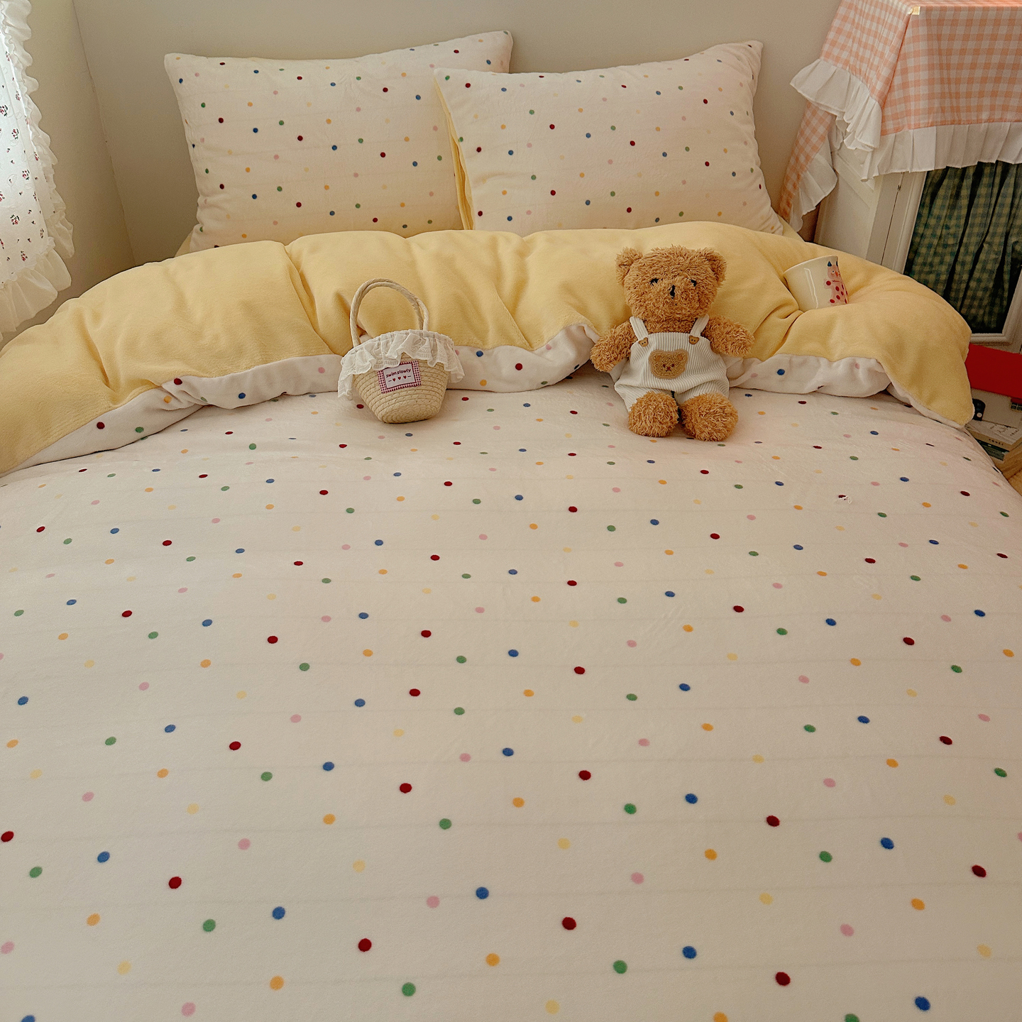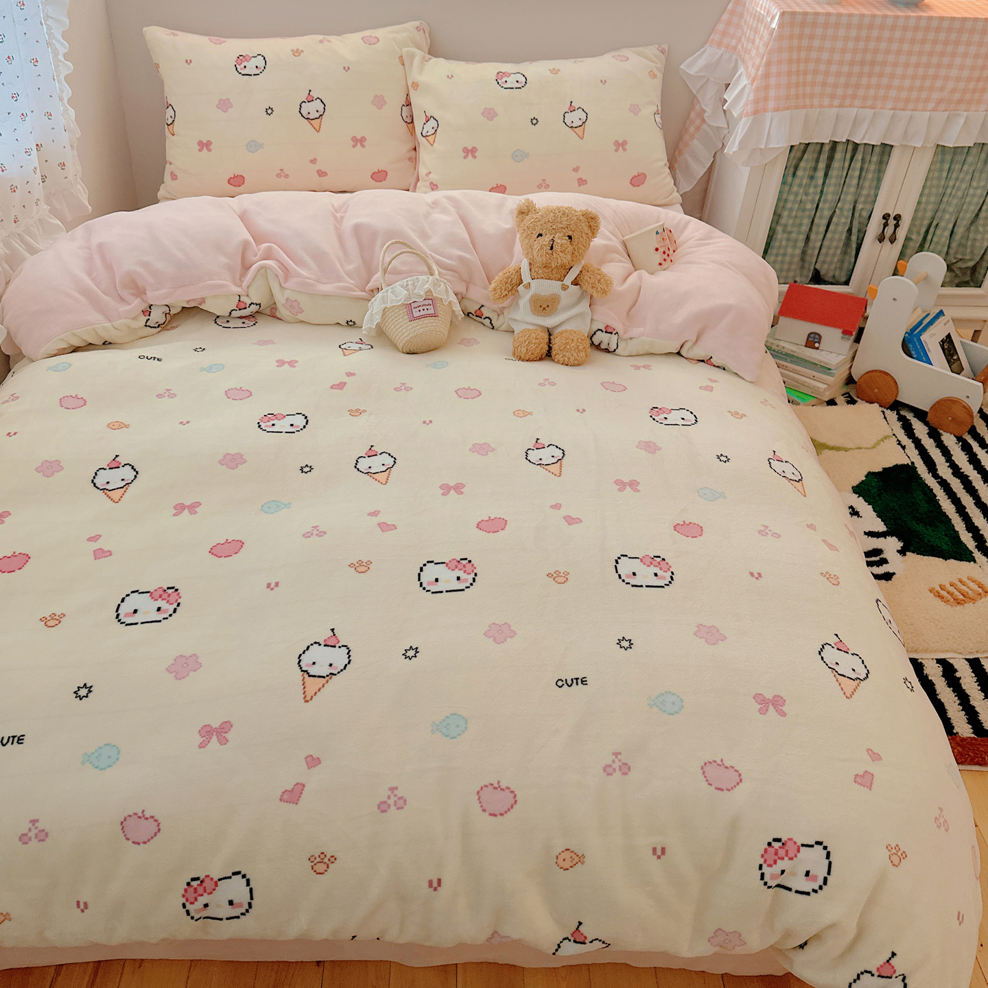 商品名称:桃喜 2025新款牛奶绒印花系列四件套(会员-5) 像素小猫黄