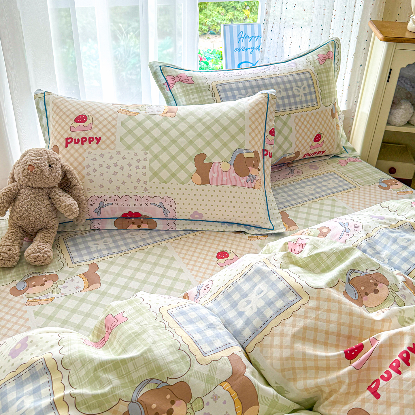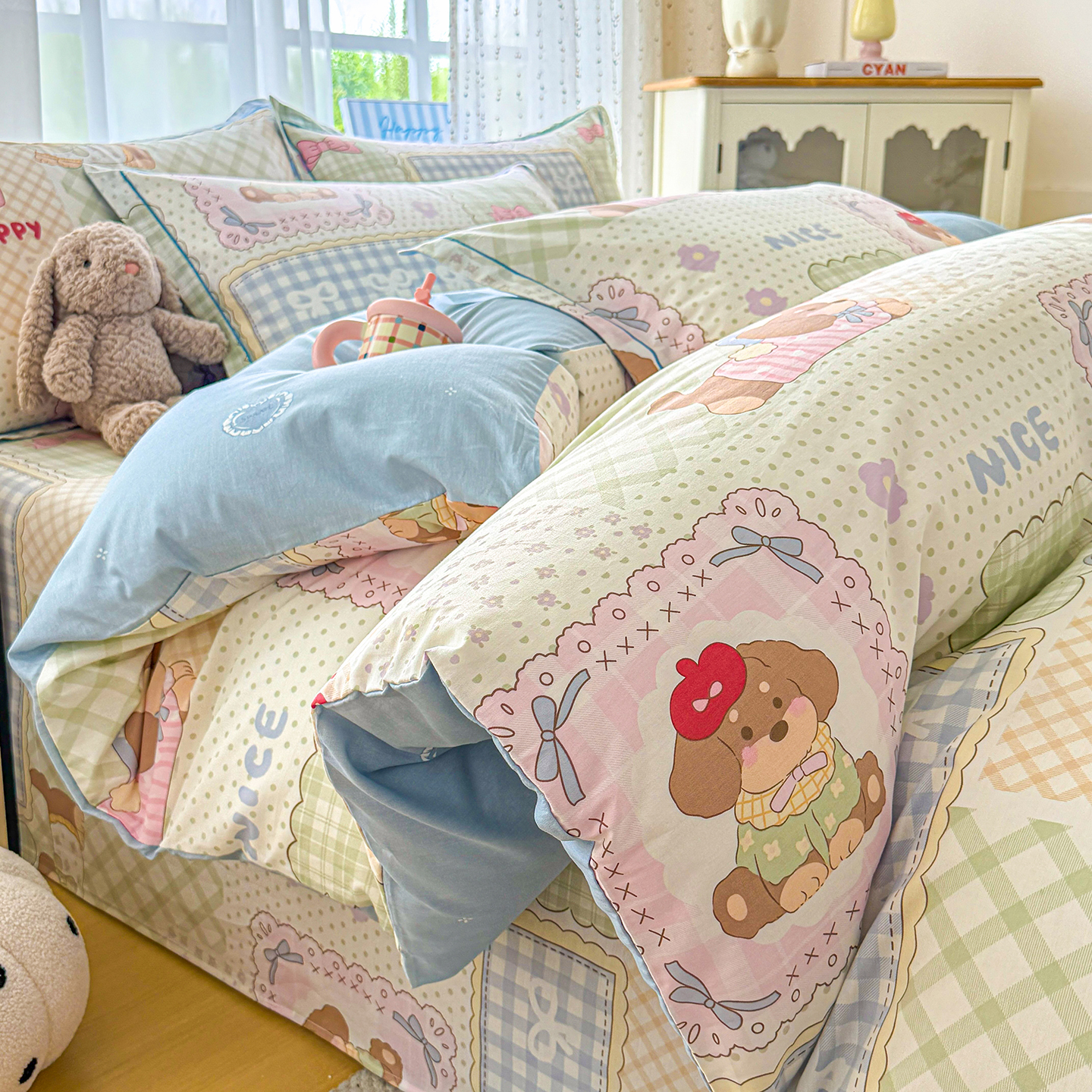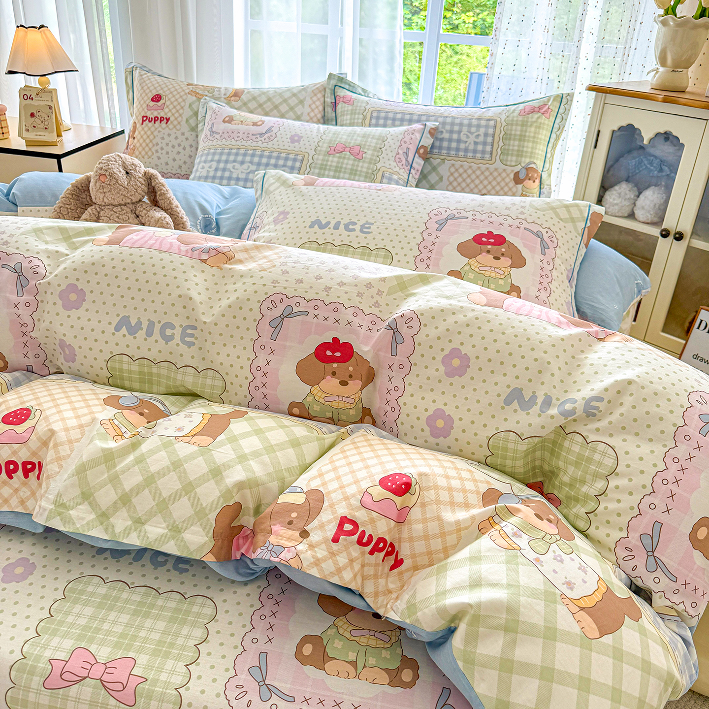 • 91家纺网 家纺一手货源 找家纺 (总)红粉佳人家纺 2025春夏新款12868喷气全棉纯棉印花单被套第二批,爱之艺,布布宝贝,格子猫咪,花花猫咪,花笺拼布,花田小狗,花香,旷野听风,漫步花语,趴趴乐园,心乐园